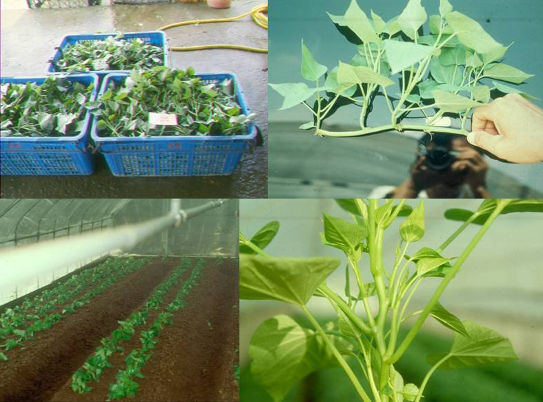 選取植株中間部位20-30公分粗壯之莖段扦插,並剪除部分葉片,減少水分散失,然後將莖段基部5公分斜插入乾淨介質中,並放置陰涼處保持濕度,等待發根即可。種植行株距為20×25 公分為宜。
