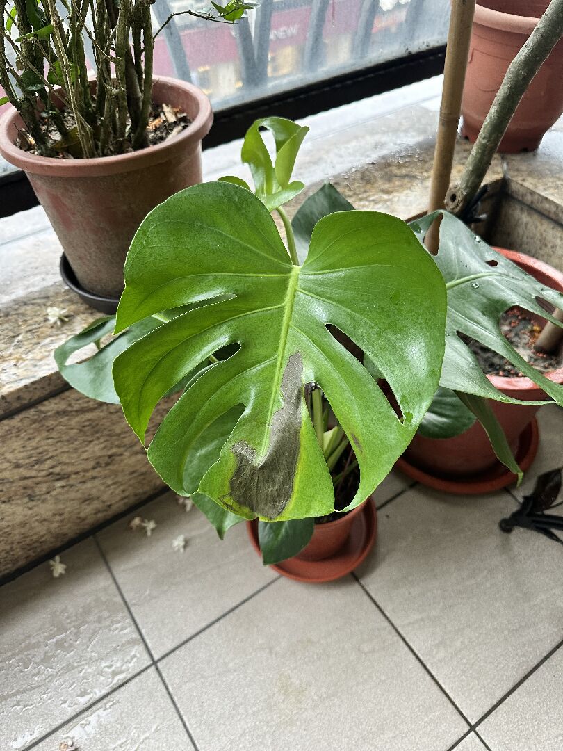 請問龜背芋一般新葉多久會趨於成熟,目前新葉狀況看起來不太好,有什麼需要注意的地方嗎? 另外葉子曬傷的部分有什麼補救的辦法嗎?