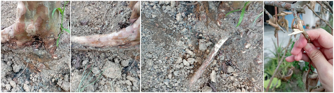 先檢查根部土壤有沒有問題,有無異常爛根、菌絲,有無天牛、白蟻蟲害,也可以看看樹皮是否正常,若根系健康就可以朝其他方向觀察。