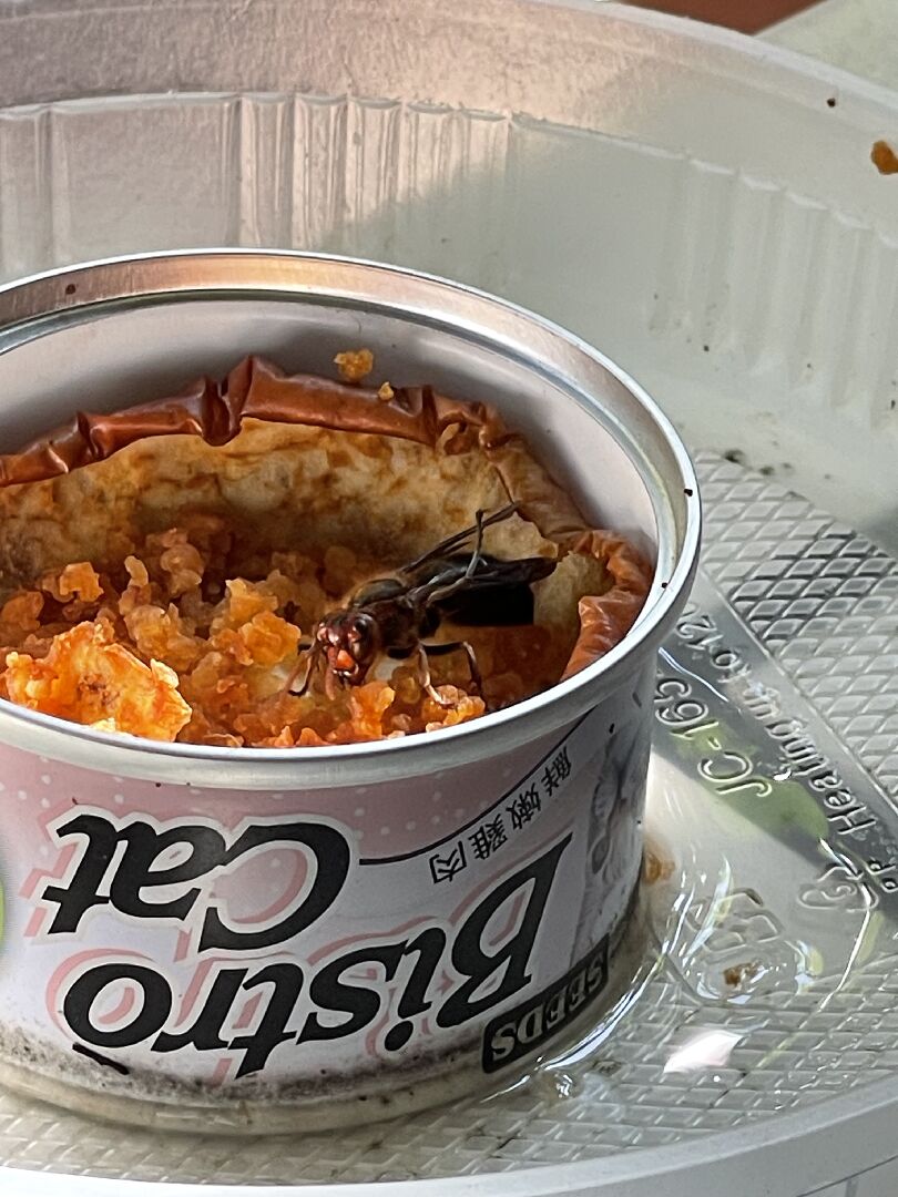 這看起來像是胡蜂的一種。胡蜂通常會被水果的甜味吸引。建議可以將蘋果移到一個不容易讓胡蜂接觸的地方,或使用網罩覆蓋,以避免它們繼續來訪。