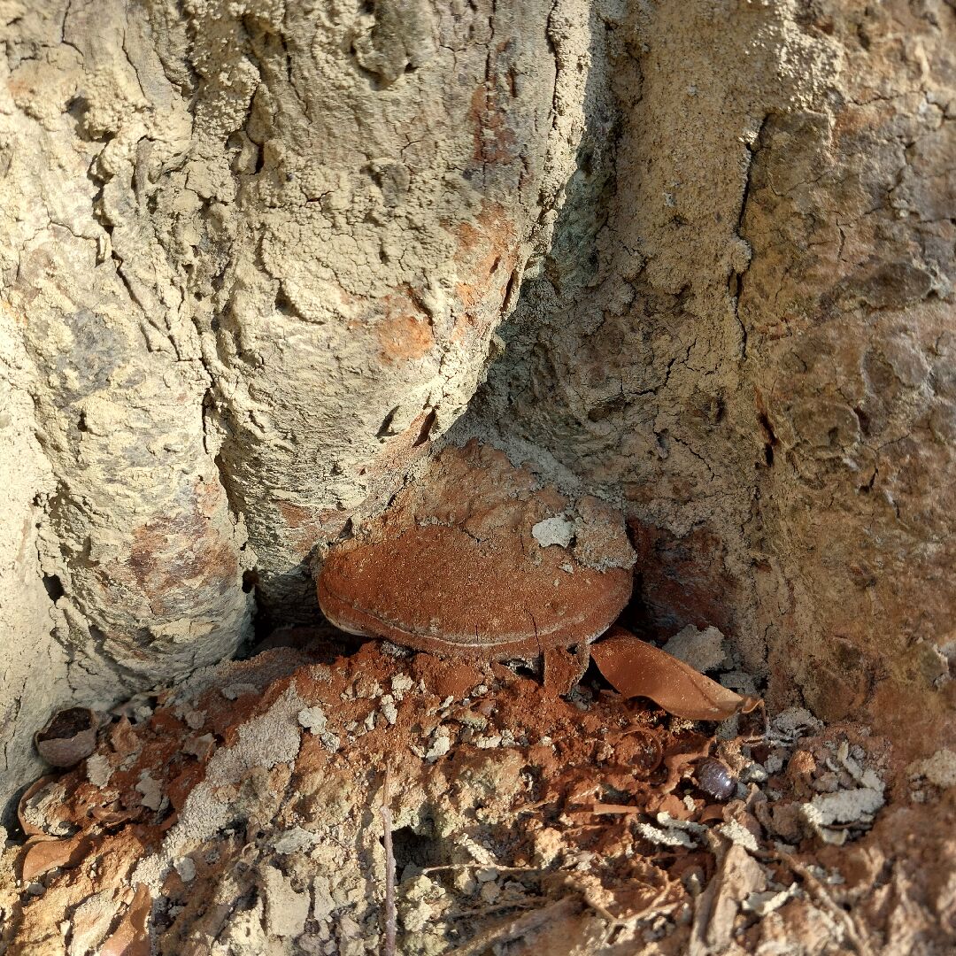 龍眼樹出現這種情況可能是受到根腐病或木材腐朽菌的侵害。這些蕈類通常是木材腐朽的指標,表示樹木內部可能已經受損。