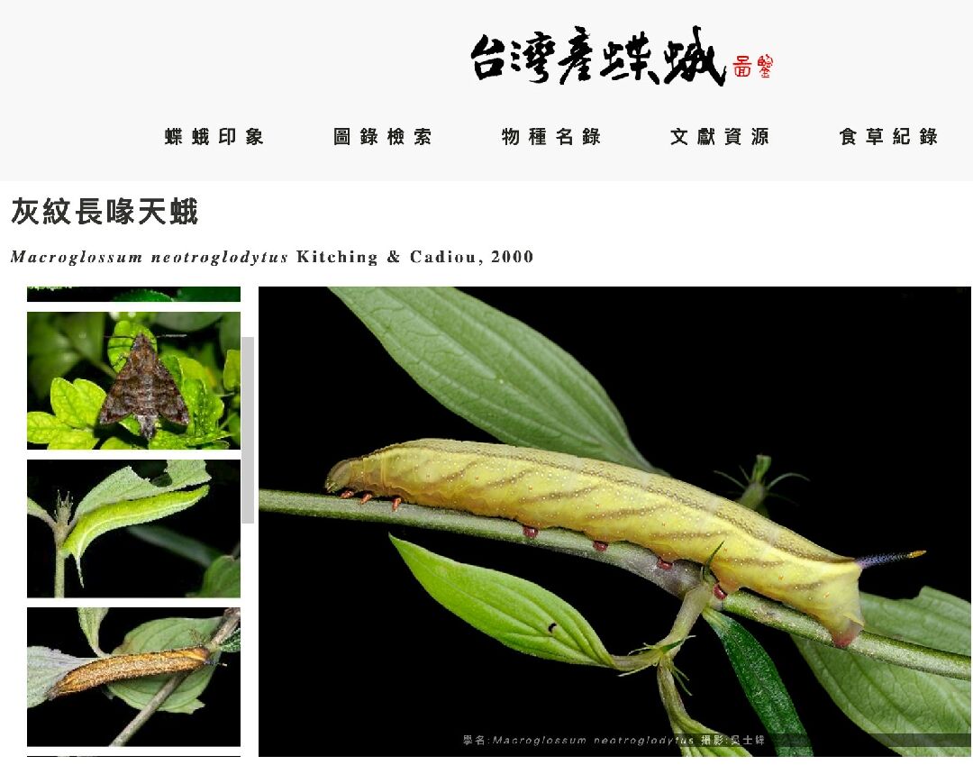 又查了一下,目前覺得最像的應該是「灰紋長喙天蛾」但又不太確定,3/24目前最大的一隻已經3公分左右長