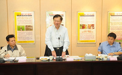 本次會議以聯誼方式進行,首先邀請防檢局就「牛肉吃的安心、食的安全」及「安心吃豬肉、放心吃禽肉」做政策宣導說明,接下來由與會各機關進行單位業務報告。陳主委在會後提出以下建議與作法:在產業研究發展及輔導要能跳脫原來的思考框架;政策的推動雖然各有主政單位,但要達成目標則需要各機關一起努力;水保局農村再生計畫要將產業放進來,建議各改良場加入農村再生團隊一起合作;在提高糧食自給率方面,以毛豆為例,現在外銷產值已高於蘭花,未來可以思考以雜糧替代米飯的可行性;國內產銷問題每年重複發生,應以新的方法解決問題,例如結合雲端技術立即反應產銷資訊,妥善規劃外銷通路,契合特定市場、特定作物、特定時期,非滯銷時才找通路;又如95專案,應該把經費用來鼓勵優質產品,促使往高規格邁進;應用新科技來調整農業生產模式,吸引年輕族群進來。陳主委並表示,所有施政有延續性,不會驟然改變,農業從業人員應有新思維,讓農業呈現新氣象。