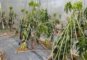 梅雨及颱風帶來連續豪雨,雲嘉南地區木瓜因排水不良及土壤水分過高,容易造成根部缺氧腐爛,放晴後引起植株萎凋等症狀,果實及葉片則因疫病等病菌感染而發生腐爛及落果現象,臺南區農業改良場提醒果農進行清園及病害防治工作,並採取相關復育措施,以降低雨害損失。