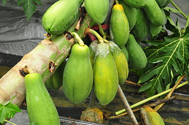 蘇拉颱風帶來強風豪雨,雲嘉南地區網室木瓜因瞬間強風可能破壞網室結構,又排水不良及土壤水分過高,容易造成根部缺氧腐爛,放晴後引起植株萎凋等症狀,果實及葉片則因疫病等病菌感染而發生腐爛及落果現象,臺南區農業改良場提醒果農進行清園及病害防治工作,並採取相關復育措施,以降低雨害損失。