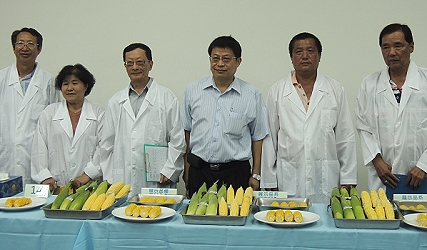 臺南區農業改良場場長王仕賢(中)與甜玉米評審委員 |