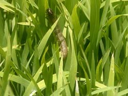 秋行軍蟲(Spodoptera frugiperda)源自於美洲,為2019年新入侵台灣之鱗翅目害蟲。全台統計除了玉米、高粱、小麥、薏苡、小米、百慕達草與狼尾草等禾本科作物外,在薑和花生上亦已發現其蹤跡。今(109)年7月26日農委會花蓮區農業改良場(以下簡稱本場)接獲玉溪地區農會通報,玉里鎮水稻育苗場疑似受秋行軍蟲危害,本場立即會同花蓮縣動植物防疫所與農糧署東區分署現勘並確認為秋行軍蟲,即時通報「秋行軍蟲災害緊急應變小組」後,農委會迅速公告秋行軍蟲新增寄主作物水稻,以及6種緊急防治藥劑,供水稻農友進行施藥防治。
