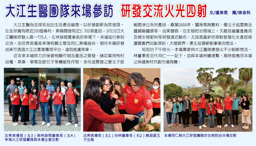 苗栗區農情月刊第257期-大江生醫團隊來場參訪,研發交流火光四射