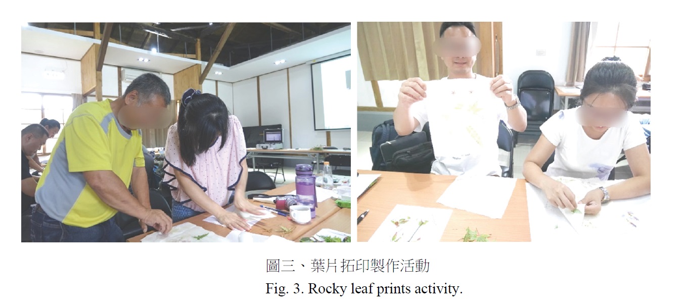 本研究探討休閒農業體驗活動進行前後對人體生心理反應之影響,以休閒農場中常見且操作容易之體驗活動,如葉片拓印等做為施作及評估之體驗活動(圖三),每位受測者會被引導至活動地點,而後帶領受測者進行體驗活動,活動操作期間約為40 min。