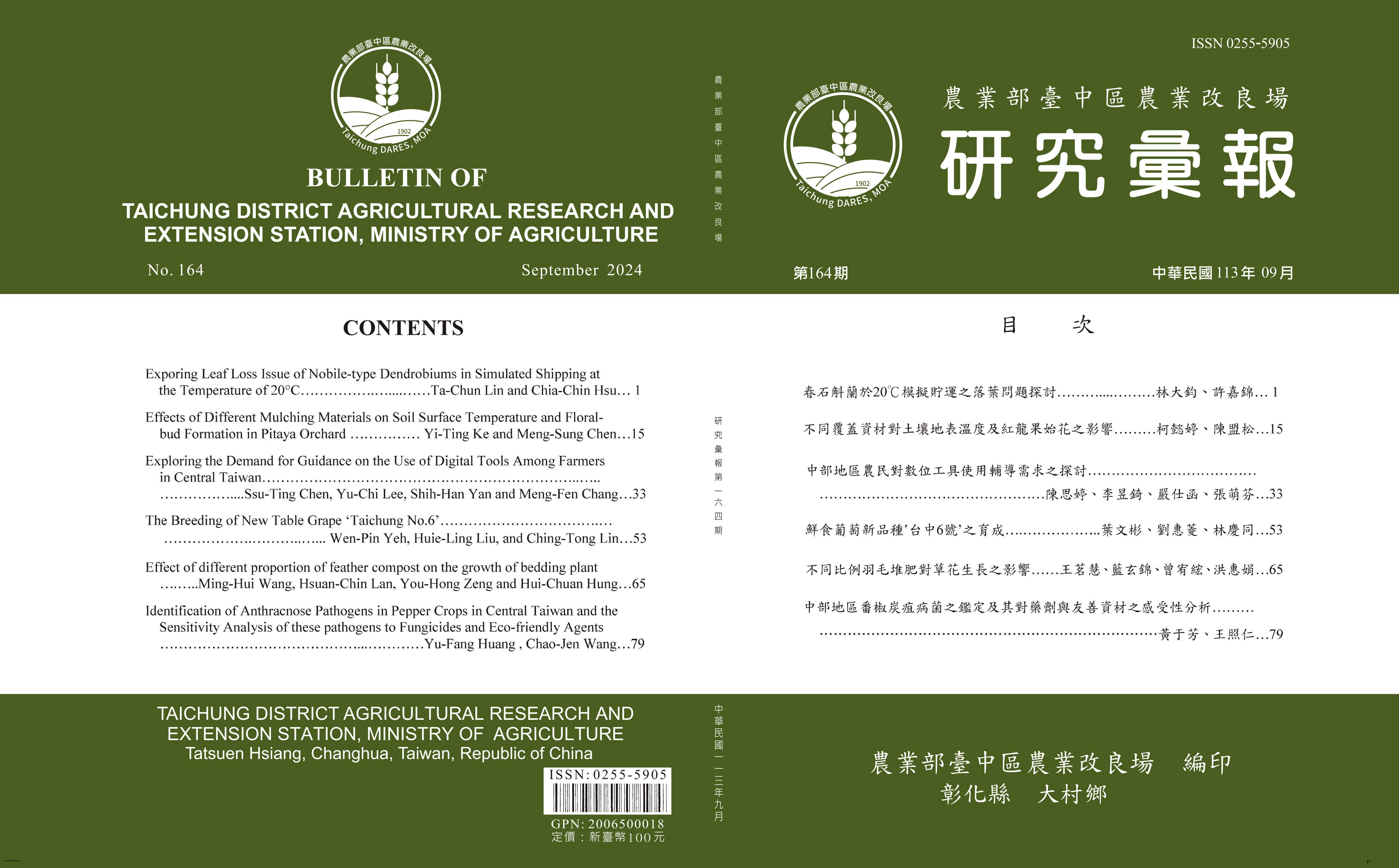 農業部臺中區農業改良場研究彙報(第164期)