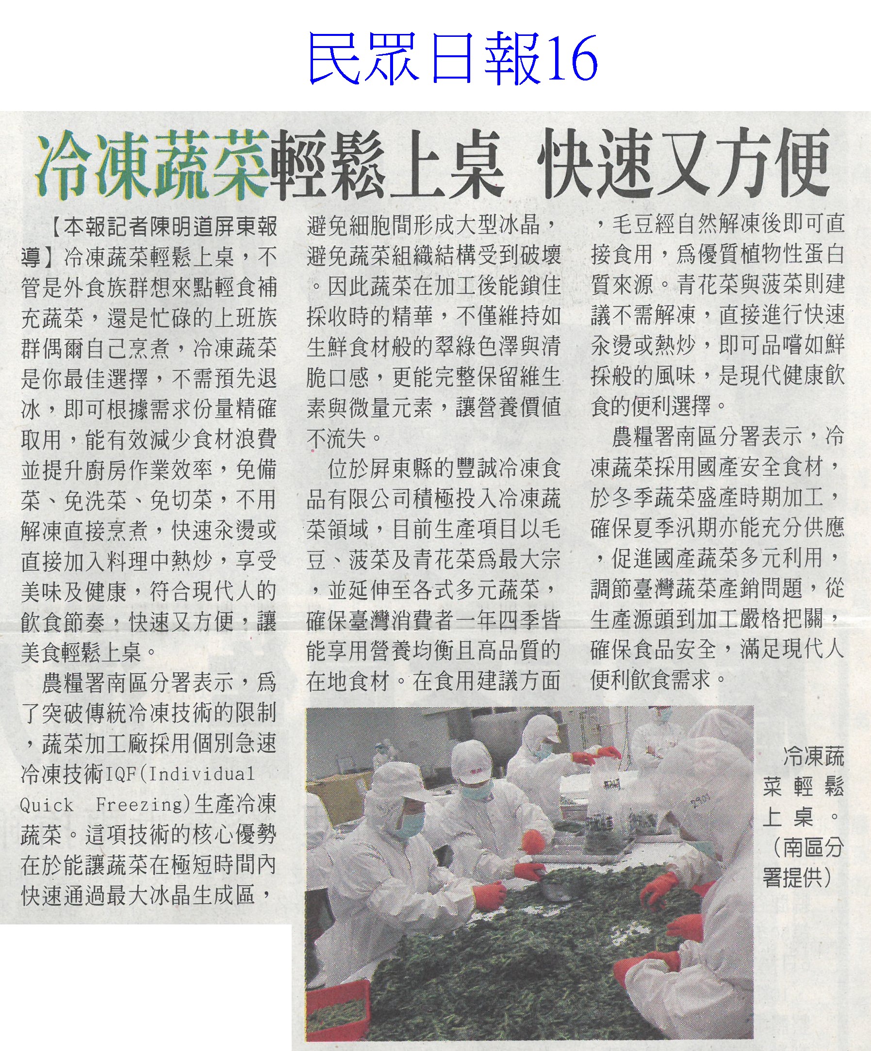 冷凍蔬菜輕鬆上桌 快速又方便(民眾日報16)