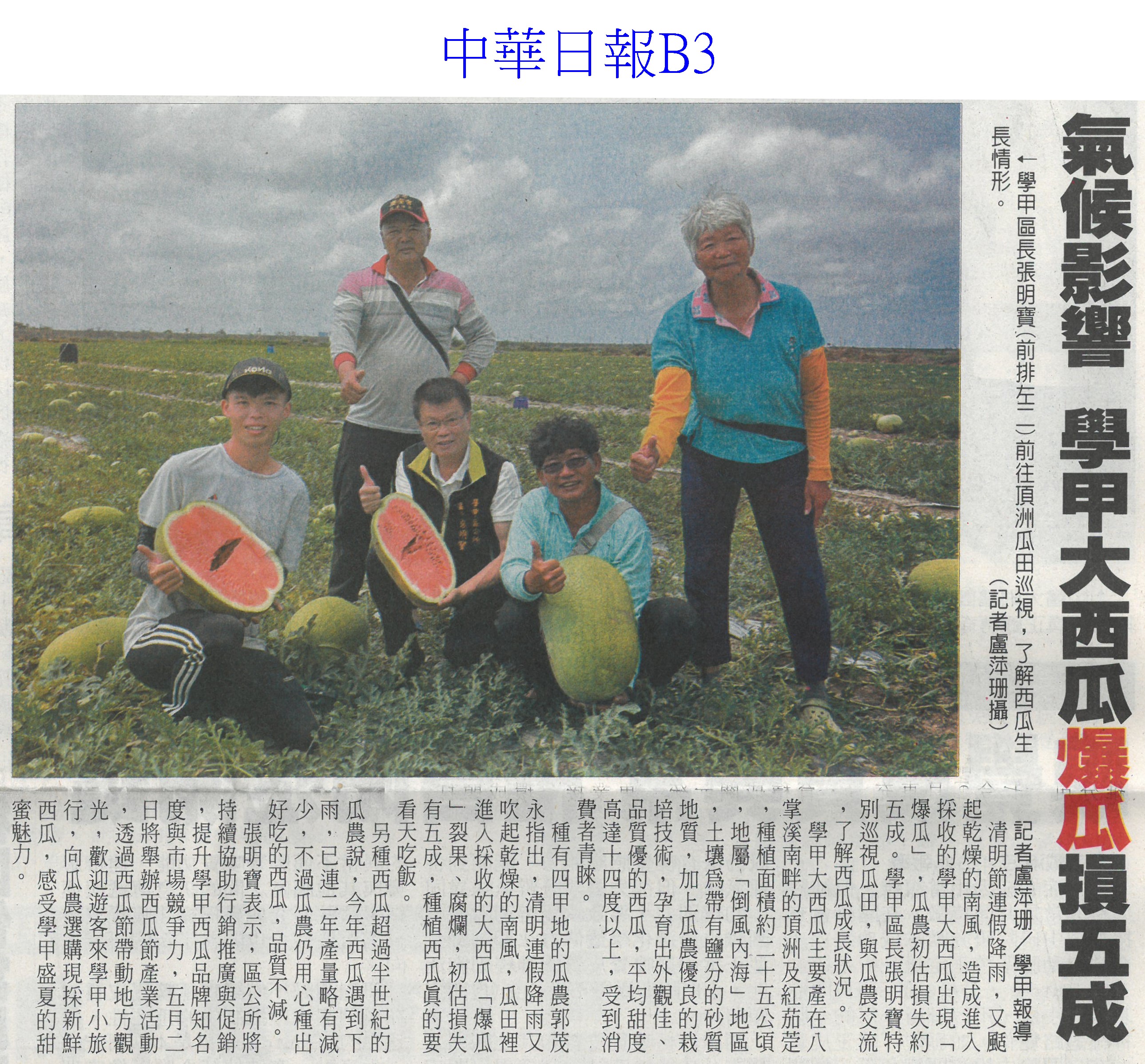 氣候影響 學甲大西瓜爆瓜損五成(中華日報B3)