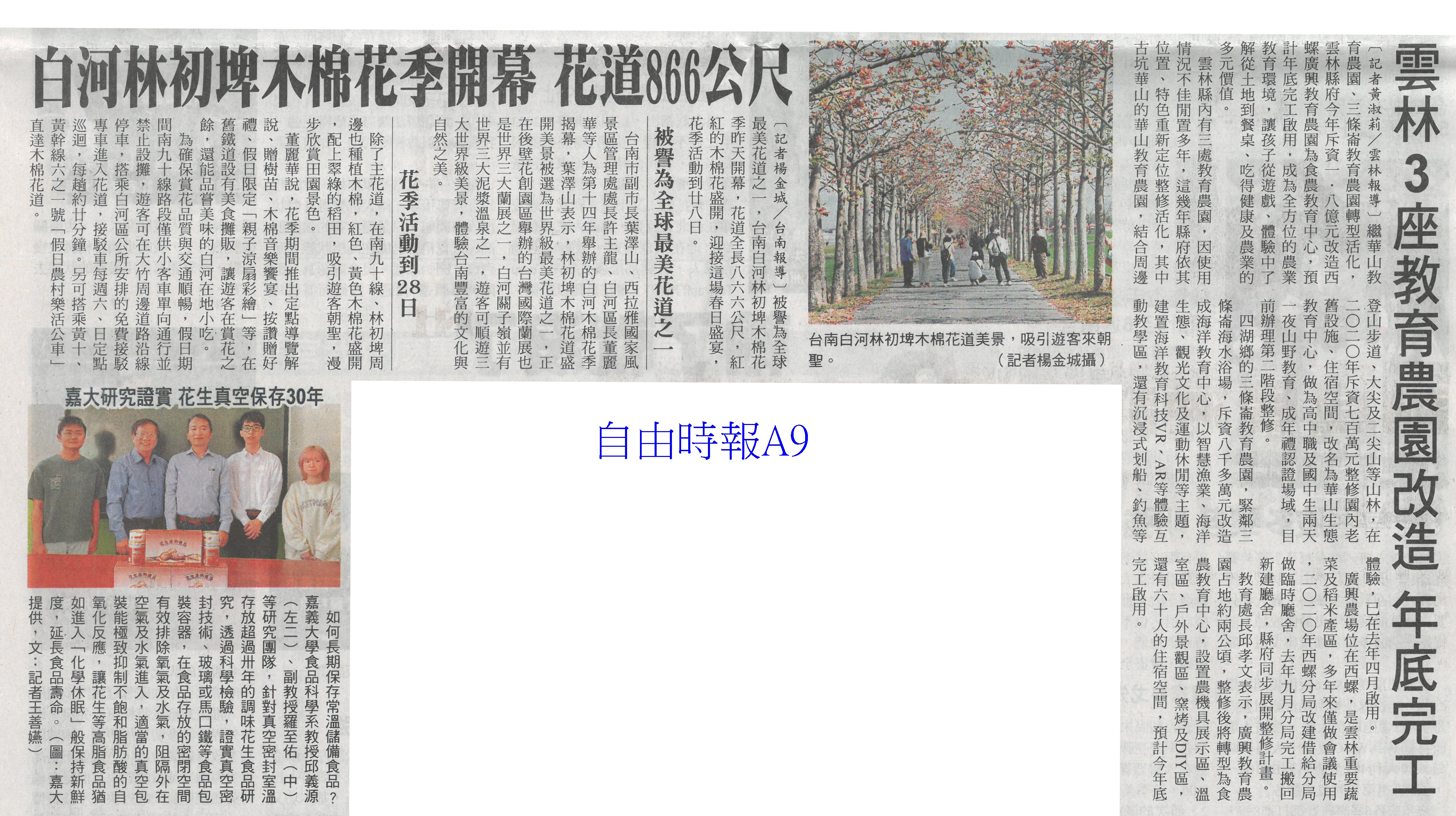 雲林3座教育農園改造 年底完工(自由時報A9)