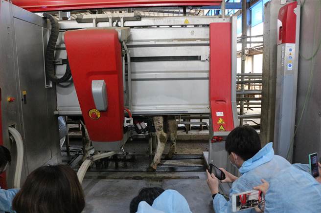 行政院農委會畜產試驗所導入智慧農業4.0生乳產業機器人,8日於苗栗縣西湖乳牛示範智慧型機器人擠乳、餵養、整潔工作,畜產試驗所指出,透過機器人協助,除了可減少飼養人力,也能經由機器人餵料及補充精料,讓擠乳更「牛性化」,比起人工擠奶,每天可增加15%的奶量。