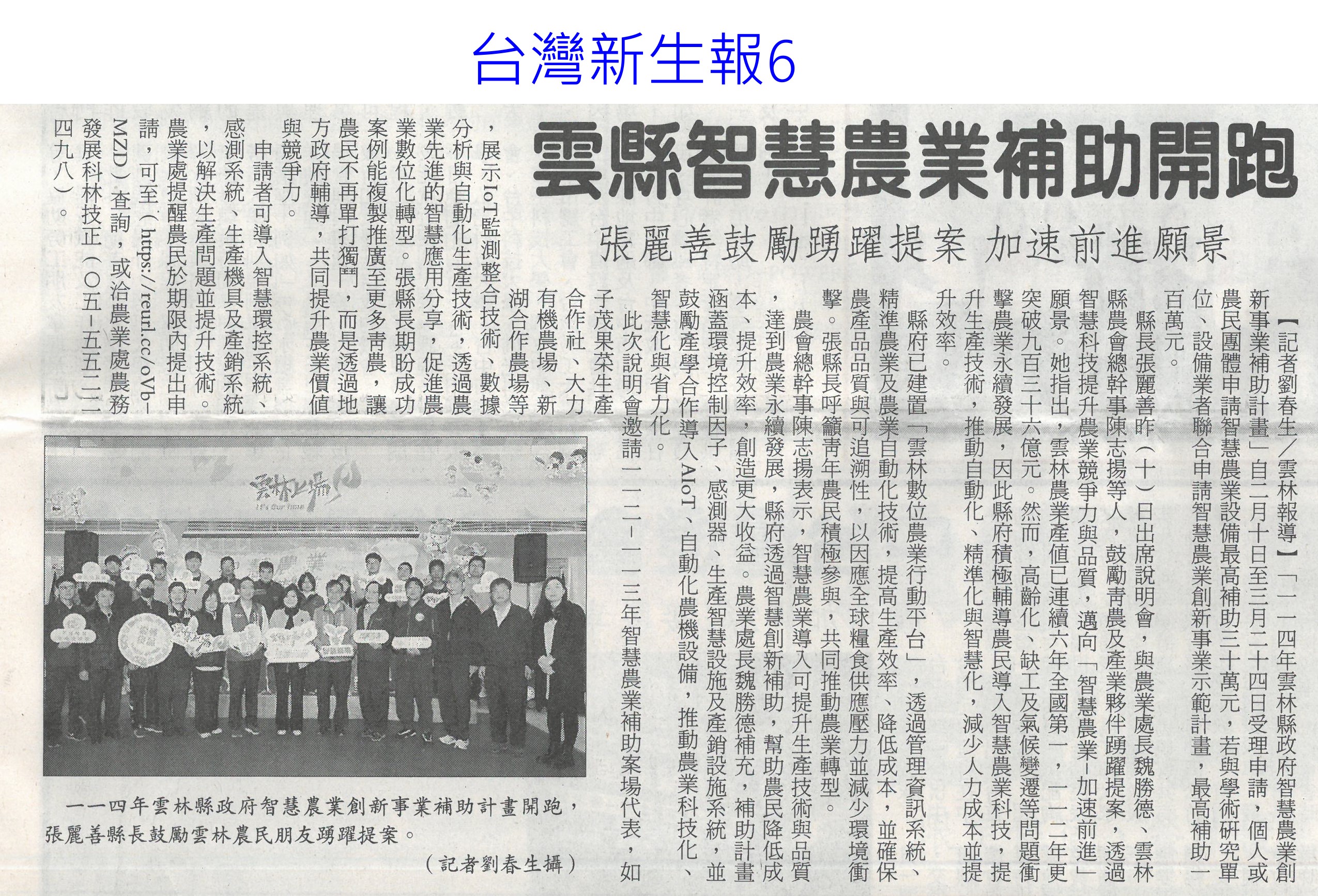 首頁楊眼好新聞 楊眼好新聞 排序 發布日期 更新日期 序號 發布日期 標題 421. 114/02/11 雲縣智慧農業補助開跑(台灣新生報6) 422. 114/02/11 雲林推智慧農業 最高補助百萬(中國時報A9) 423. 114/02/10 智慧農業補助開跑最高50萬(臺灣時報15) 424. 114/02/10 農業部長勘楠西南化災損(中華日報B2) 425. 114/02/10 農友休耕轉作申報 8日截止(中華日報B4) 426. 114/02/10 青農創新 卓蘭智慧溫網啓用(民眾日報4) 427. 114/02/10 對等關稅來勢洶 農部最憂蝴蝶蘭(中國時報A2) 428. 114/02/05 冷氣團來襲 農改場籲農友防寒害(中華日報B8) 429. 114/02/04 結合六感六味 引導食農教育(台灣新生報4) 430. 114/02/04 東京食品展 我參展規模遽減(自由時報A9) 431. 114/01/23 好運農總來 農業易遊網全新改版(民眾日報16) 432. 114/01/23 命脈錢被刪農業部:影響運作(臺灣時報4) 433. 114/01/21 農業部:請國會共同守護臺灣農業(民眾日報2) 434. 114/01/20 春節農產供應充裕 請安心採購(民眾日報4) 435. 114/01/20 雲林良品市集在新北(台灣新生報11) 436. 114/01/15 食農教育貢獻獎得主 卓揆肯定(民眾日報4) 437. 114/01/15 國家食農教育傑出貢獻獎 頒獎(台灣新生報3) 438. 114/01/14 南瀛農特產伴手禮展售 買氣爆棚(中華日報B1) 439. 114/01/14 南瀛農特產伴手禮展售 創百萬業績(自由時報A11) 440. 114/01/14 春節近 應景水果翻倍漲(聯合報B2) 第 22/126 頁,共 2502 筆上一頁到第123456789101112131415161718192021222324252627282930313233343536373839404142434445464748495051525354555657585960616263646566676869707172737475767778798081828384858687888990919293949596979899100101102103104105106107108109110111112113114115116117118119120121122123124125126頁下一頁每頁103070筆資料