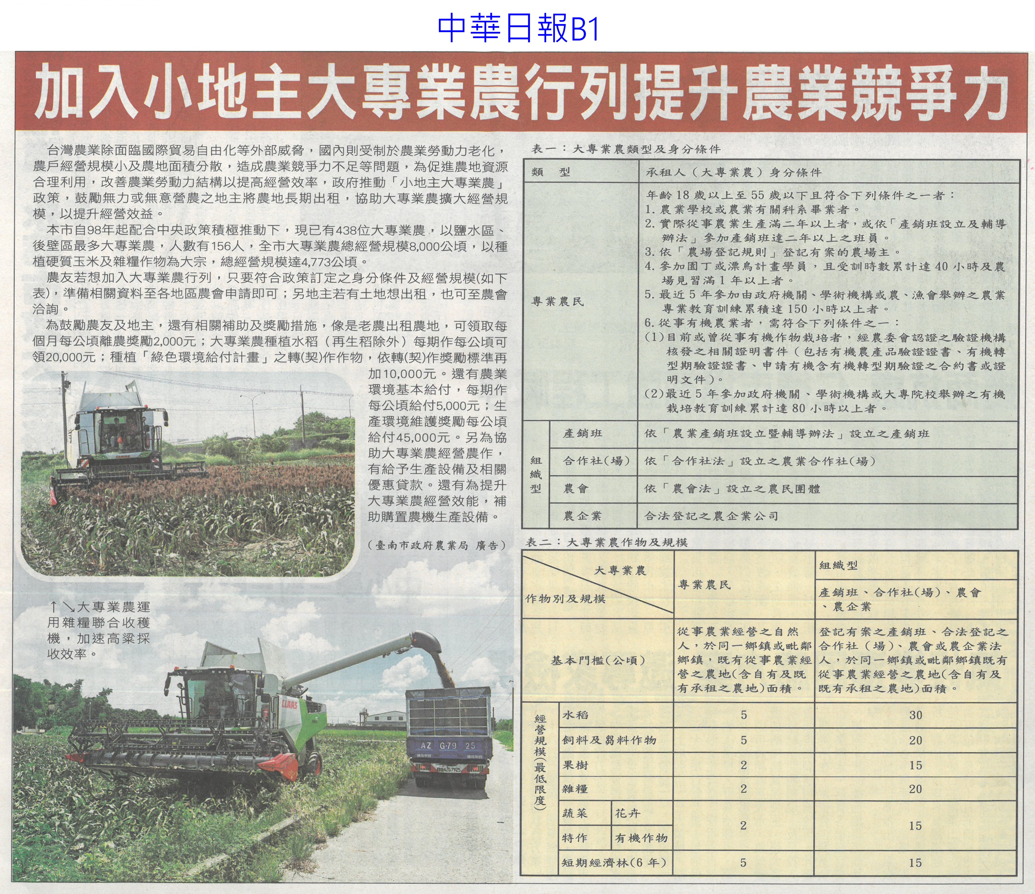 首頁楊眼好新聞 楊眼好新聞 排序 發布日期 更新日期 序號 發布日期 標題 521. 113/10/08 許玉靜領軍 青農團隊合作分享獲亞軍(中華日報B8) 522. 113/10/08 農金獎揭曉 南市7農漁會獲獎(中華日報B1) 523. 113/10/04 蔬果貴爆 農糧署釋出平價高麗菜(中國時報A8) 524. 113/10/04 農業部呼籲農漁民落實防颱應變(台灣新生報2) 525. 113/10/04 山陀兒慢步 農業部準備農損救助(中華日報A4) 526. 113/09/30 最後一塊拼圖 古坑氣象站啟用(中國時報A9) 527. 113/09/30 古坑氣象站啟用 1縣市1站拼圖完成(聯合報B2) 528. 113/09/30 山陀兒颱風已成形 北部防豪雨(自由時報A9) 529. 113/09/26 陸復徵農漁產關稅 台農兩樣情(中國時報AA1) 530. 113/09/26 3青農合作 分享果園智慧管理(中華日報B8) 531. 113/09/26 農糧署攜中華郵政 打造農郵i新鮮市集(民眾日報4) 532. 113/09/26 農業權論壇登場(中國時報A6) 533. 113/09/26 農糧署回收廢棄農膜 清洗循環再利用(自由時報A8) 534. 113/09/25 低碳減排 美國黃豆產業從不懈怠(民眾日報14) 535. 113/09/19 金推獎揭曉 六農會得獎(中華日報B2) 536. 113/09/19 加入小地主大專業農行列 提升農業競爭力(中華日報B1) 537. 113/09/19 陸25日起停止我34項農產免關稅(中華日報A2) 538. 113/09/19 農業部:(國土法)99%農會反對(中國時報A3) 539. 113/09/19 大陸25日起 取消台34項農產免關稅(中國時報A1) 540. 113/09/19 陸取消免稅!釋迦、柚子、白帶魚影響大 農業部長:風險可控 第 27/126 頁,共 2502 筆上一頁到第123456789101112131415161718192021222324252627282930313233343536373839404142434445464748495051525354555657585960616263646566676869707172737475767778798081828384858687888990919293949596979899100101102103104105106107108109110111112113114115116117118119120121122123124125126頁下一頁每頁103070筆資料