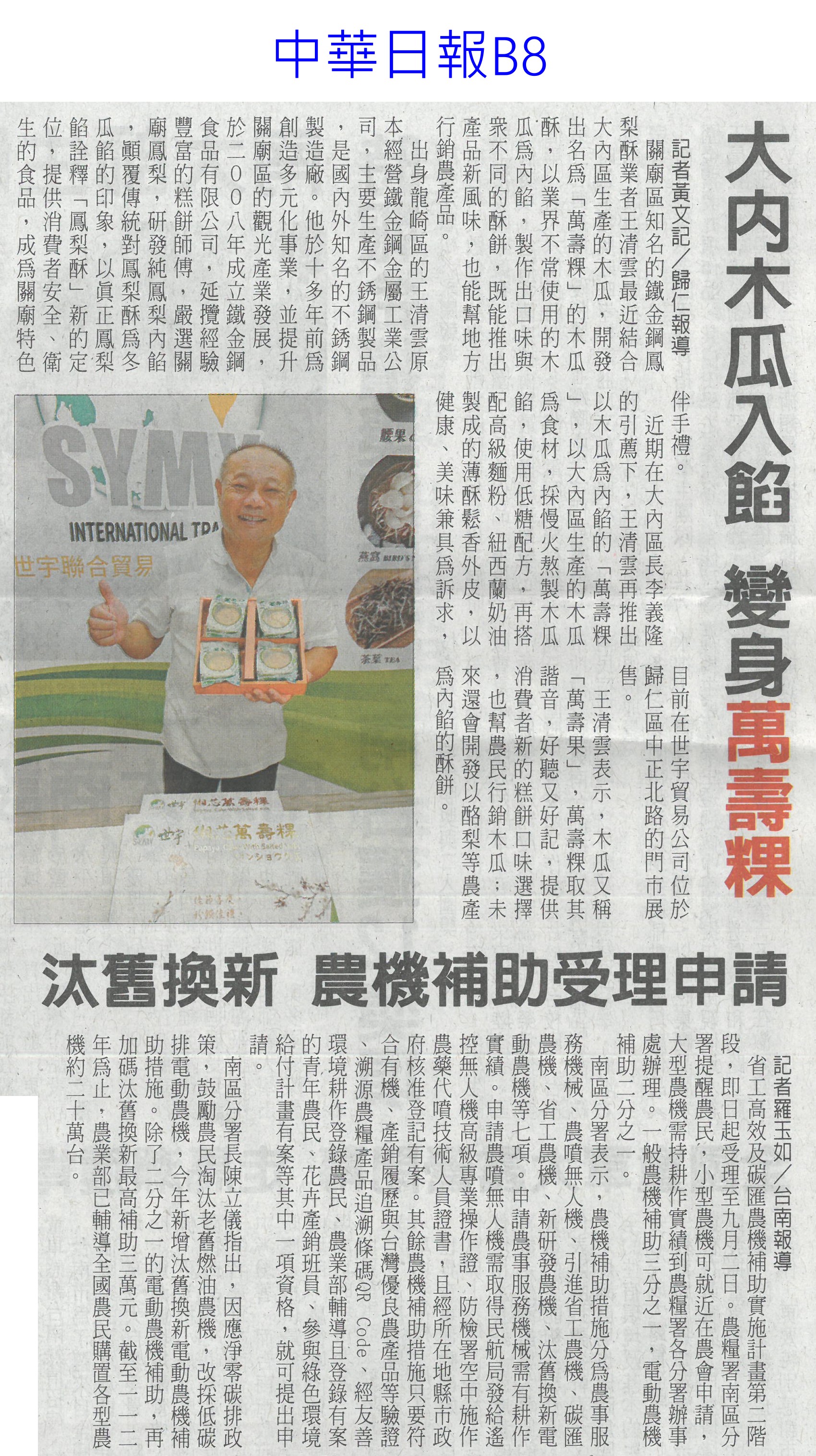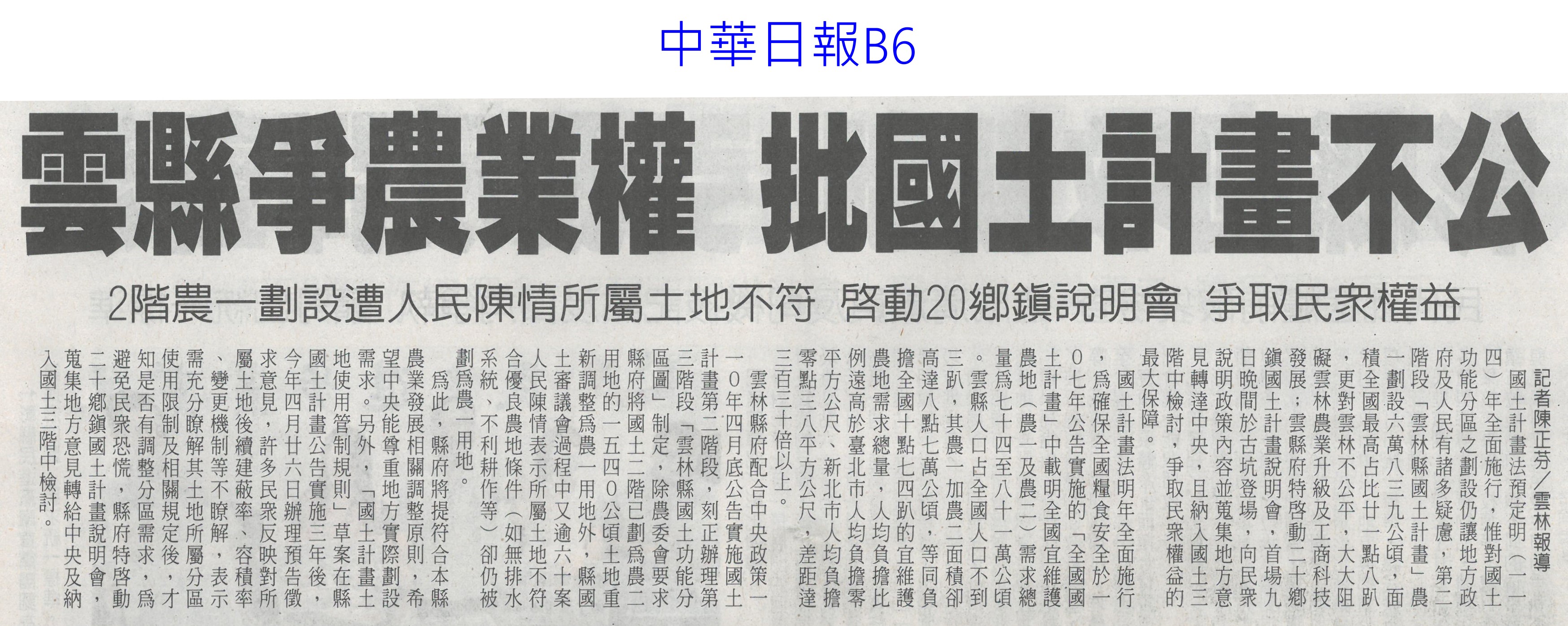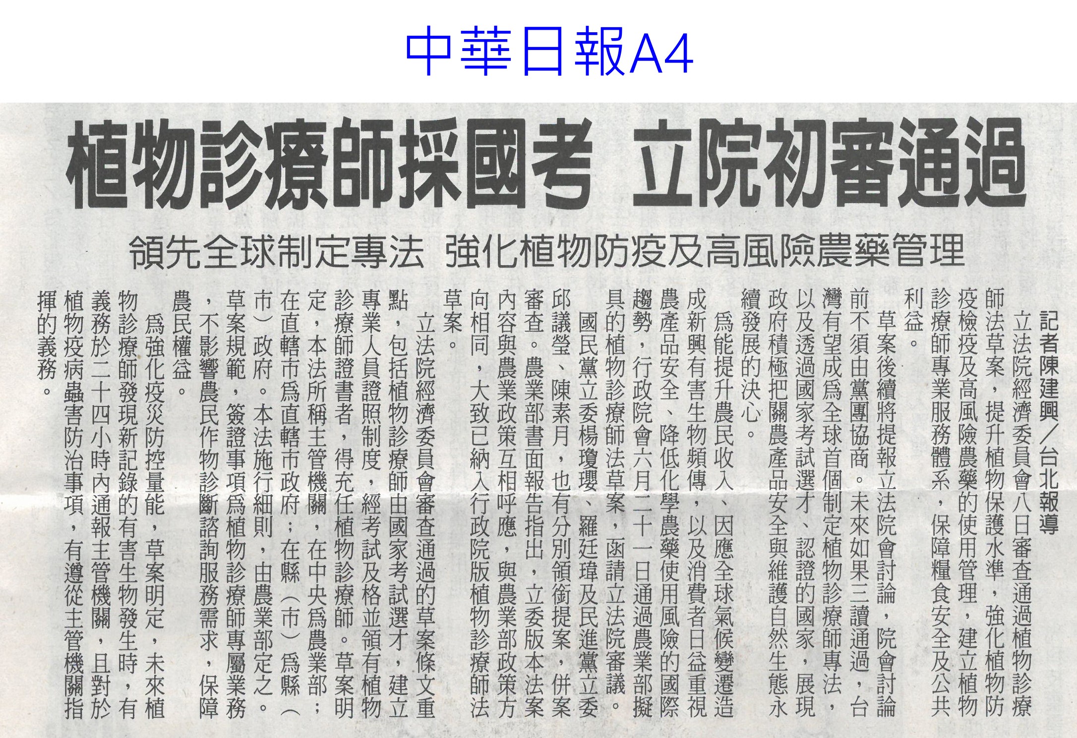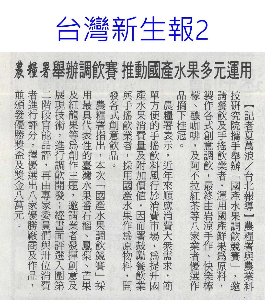 首頁楊眼好新聞 楊眼好新聞 排序 發布日期 更新日期 序號 發布日期 標題 621. 113/07/29 農損逾18億 南臺灣慘兮兮(中華日報A1) 622. 113/07/22 農業展開幕 4D沉浸劇場體驗(自由時報A13) 623. 113/07/22 國土計畫說明會 大埤登場(台灣新生報6) 624. 113/07/22 全球首創農藥質譜快檢車 歐美日想引進(自由時報A10) 625. 113/07/22 農業部攜台北101 從心出花(民眾日報4) 626. 113/07/22 雲林盛夏 彭湃饗宴登場(臺灣時報20) 627. 113/07/22 初級加工制度 助攻通路上架(民眾日報4) 628. 113/07/22 雲林農漁畜饗宴 希望廣場彭湃上菜(民眾日報3) 629. 113/07/17 雲林益生菌友善田 溫室氣體減排顯著(中國時報A9)(連結已失效) 630. 113/07/17 農糧署舉辦調飲賽 推動國產水果多元運用(台灣新生報2) 631. 113/07/17 汰舊換新 農機補助受理申請(中華日報B8) 632. 113/07/15 南市農村青年築夢行動計畫 徵件(台灣新生報6) 633. 113/07/15 卓揆: 農產品是臺灣戰略物資(民眾日報2) 634. 113/07/12 上半年農產外銷97萬噸 產值增4.9%(自由時報A10) 635. 113/07/12 雲縣爭農業權 批國土計畫不公(中華日報B6) 636. 113/07/12 蔬果農藥超標 名店也上榜(中華日報A6) 637. 113/07/12 植物診療師法過初審 最快明年招人(聯合報A8) 638. 113/07/12 植物診療師明年國考 每年招300人(自由時報A8) 639. 113/07/12 雲林良品平安箱 搶攻普渡市場(中華日報B6) 640. 113/07/12 植物診療師採國考 立院初審通過(中華日報A4) 第 32/126 頁,共 2502 筆上一頁到第123456789101112131415161718192021222324252627282930313233343536373839404142434445464748495051525354555657585960616263646566676869707172737475767778798081828384858687888990919293949596979899100101102103104105106107108109110111112113114115116117118119120121122123124125126頁下一頁每頁103070筆資料