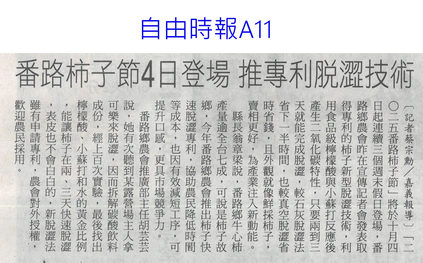 首頁楊眼好新聞 楊眼好新聞 排序 發布日期 更新日期 序號 發布日期 標題 121. 114/10/21 猴大軍釀農損 南市議員建議結紮(中華日報B1) 122. 114/10/21 農郵精選集實體市集及線上登場(台灣新生報8) 123. 114/10/21 山上芭樂節10/24同樂(中華日報B2) 124. 114/10/21 青皮椪柑上架小七 10/27開賣(中華日報B2) 125. 114/10/16 農民職災保險就醫津貼給付水準 提高(民眾日報6) 126. 114/10/07 編6億助農產外銷 上半年反衰退(中國時報A6) 127. 114/10/07 雲林良品伴手禮 跨域合作(台灣新生報7) 128. 114/10/01 農業部:持續支持3章1 Q國產食材(臺灣時報4) 129. 114/10/01 石壁觀光轉型 升格休閒農業區(聯合報B2) 130. 114/10/01 南得極品展售會 送禮兩相宜(中華日報B8) 131. 114/10/01 仁德小農市集 買在地做公益(中華日報B3) 132. 114/10/01 大內九月雪活動浪漫登場(台灣新生報6) 133. 114/10/01 嘉義果乾烏魚子 奪水產精品獎(自由時報A11) 134. 114/10/01 古坑促進區 打造有機示範基地(聯合報B2) 135. 114/10/01 風災後剩4成 嘉縣柿子節周六開跑(聯合報B2) 136. 114/10/01 美農業部次長訪台 宣布開放鳳梨輸美(聯合報A2) 137. 114/10/01 番路柿子節4日登場 推專利脫澀技術(自由時報A11) 138. 114/10/01 番路柿子專利技術與新品上市(台灣新生報6) 139. 114/10/01 番路柿子節將登場 秀脫澀新法(中國時報A9) 140. 114/10/01 中秋選好禮 嘉義優鮮聯名故宮(中國時報A7) 第 7/121 頁,共 2411 筆上一頁到第123456789101112131415161718192021222324252627282930313233343536373839404142434445464748495051525354555657585960616263646566676869707172737475767778798081828384858687888990919293949596979899100101102103104105106107108109110111112113114115116117118119120121頁下一頁每頁103070筆資料