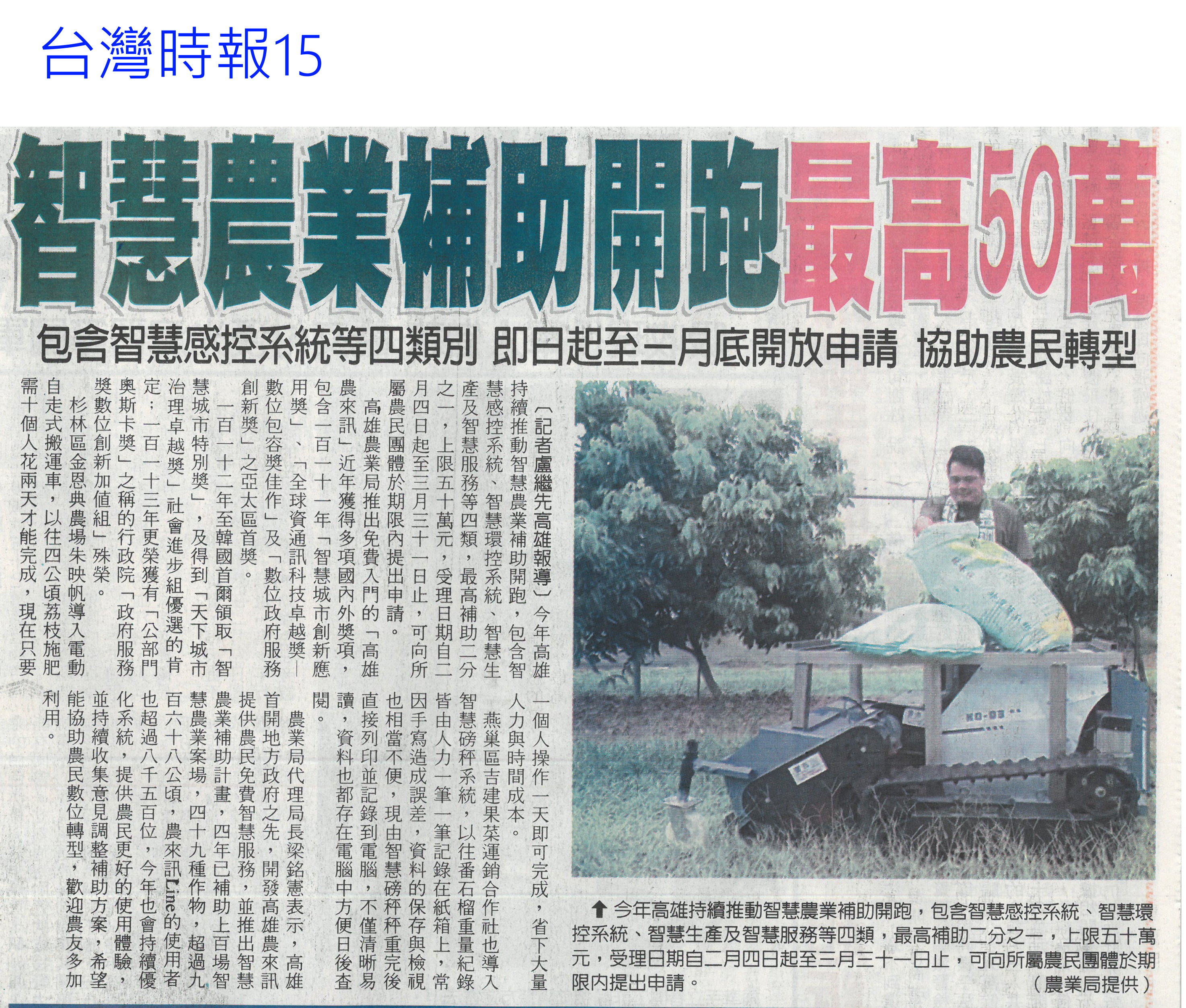 首頁甘藍新鮮聞 甘藍新鮮聞 排序 發布日期 更新日期 序號 發布日期 標題 561. 114/02/10 智慧農業補助開跑最高50萬(臺灣時報15) 562. 114/02/10 農業部長勘楠西南化災損(中華日報B2) 563. 114/02/10 蔬菜大宗高麗菜交易量減 整體蔬菜批發價回升(中華日報A4) 564. 114/02/10 農友休耕轉作申報 8日截止(中華日報B4) 565. 114/02/10 青農創新 卓蘭智慧溫網啓用(民眾日報4) 566. 114/02/10 對等關稅來勢洶 農部最憂蝴蝶蘭(中國時報A2) 567. 114/02/10 高麗菜1箱20公斤150元(自由時報A1) 568. 114/02/09 2個月前1顆300!高麗菜今崩跌「3顆50元」 農民心淌血 569. 114/02/08 年前搶收供過於求! 高麗菜價格暴跌 菜農煩惱 570. 114/02/08 纖維比蘋果高4倍 「台灣特產水果」抵1盤高麗菜:籽也要吃 571. 114/02/08 比奇異果強!「1水果」不只護腸道 還能穩定血糖 572. 114/02/05 冷氣團來襲 農改場籲農友防寒害(中華日報B8) 573. 114/02/04 結合六感六味 引導食農教育(台灣新生報4) 574. 114/02/04 開市首日 超市高麗菜每顆60元(臺灣時報10) 575. 114/02/04 東京食品展 我參展規模遽減(自由時報A9) 576. 114/01/29 春天吃5蔬菜 幫健康打底 577. 114/01/29 燙青菜營養流失少?蒸青菜才對 578. 114/01/23 好運農總來 農業易遊網全新改版(民眾日報16) 579. 114/01/23 命脈錢被刪農業部:影響運作(臺灣時報4) 580. 114/01/23 高麗菜大落價 每斤18元創入冬新低(臺灣時報15) 第 29/194 頁,共 3878 筆上一頁到第123456789101112131415161718192021222324252627282930313233343536373839404142434445464748495051525354555657585960616263646566676869707172737475767778798081828384858687888990919293949596979899100101102103104105106107108109110111112113114115116117118119120121122123124125126127128129130131132133134135136137138139140141142143144145146147148149150151152153154155156157158159160161162163164165166167168169170171172173174175176177178179180181182183184185186187188189190191192193194頁下一頁每頁103070筆資料