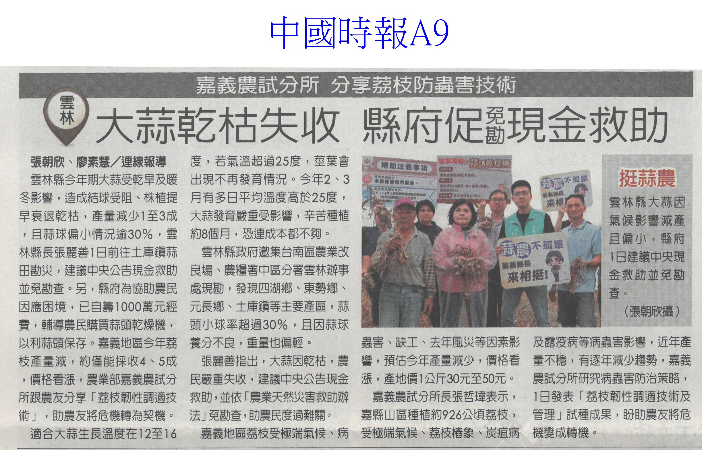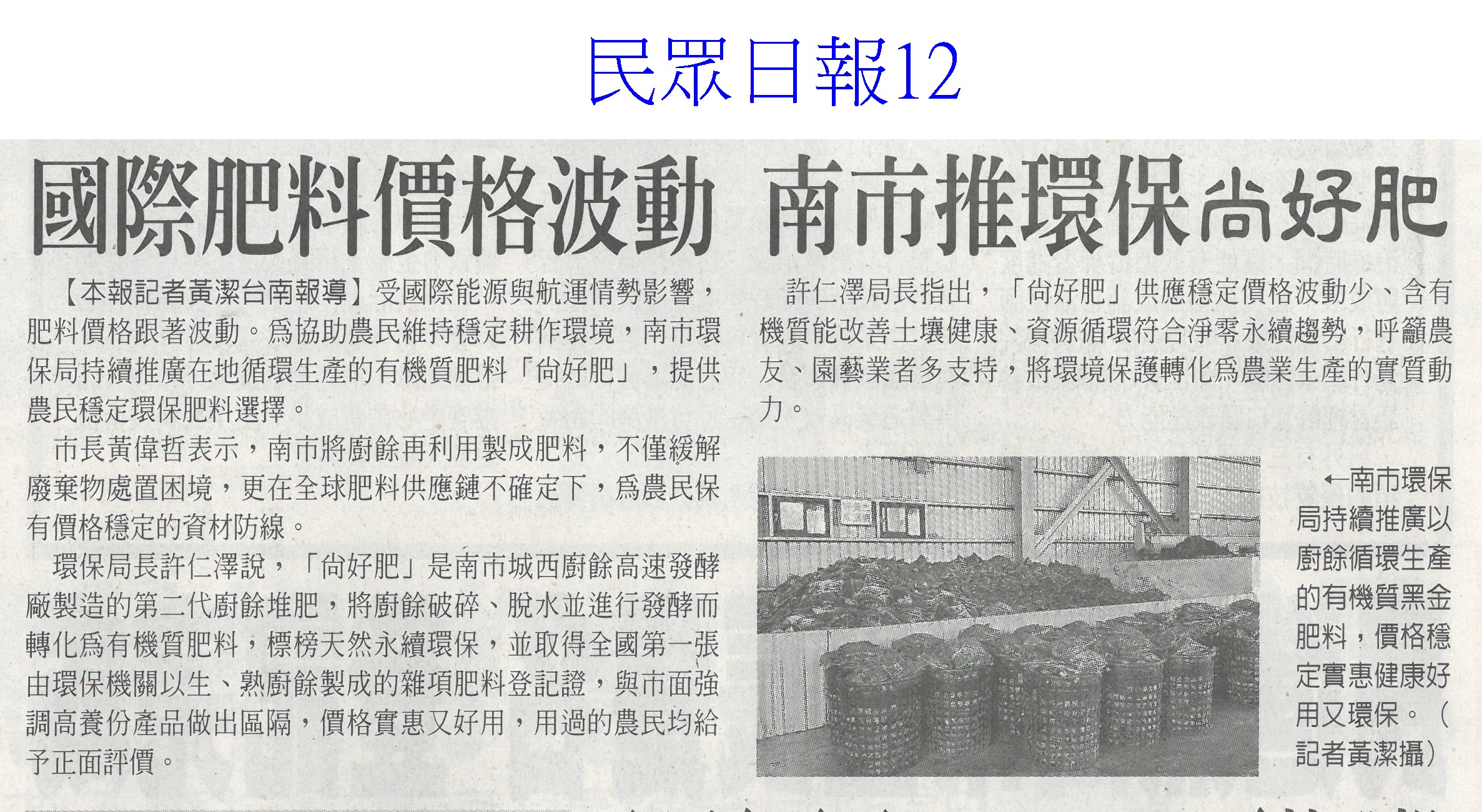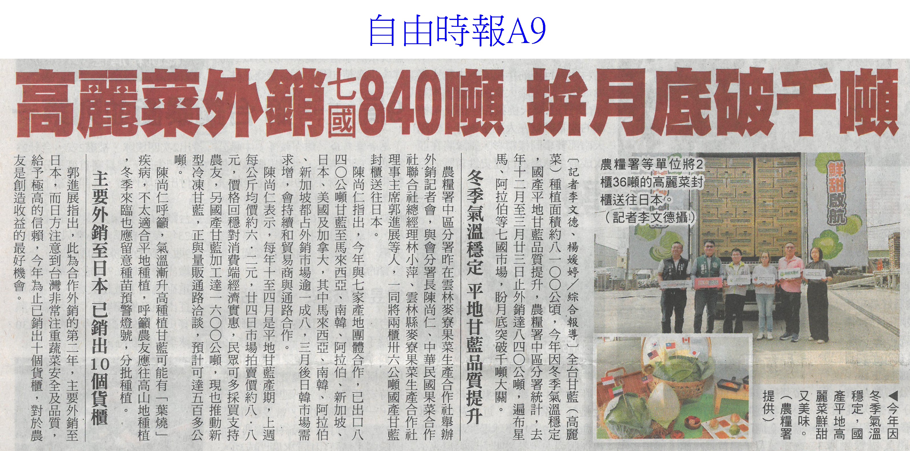 首頁甘藍新鮮聞 甘藍新鮮聞 排序 發布日期 更新日期 序號 發布日期 標題 41. 115/04/04 小番茄一盒10元!全聯限時下殺「結帳再折價」 婆媽驚喜:皮薄又甜 42. 115/04/02 政府補助及部分台肥吸收 肥料凍漲(臺灣時報4) 43. 115/04/02 高溫蒜球小 雲林蒜農爭取天災救助(自由時報A9) 44. 115/04/02 蒜球偏小產銳減 張麗善籲中央補助(台灣新生報6) 45. 115/04/02 雲林大蒜乾枯失收 縣府促免勘現金救助(中國時報A9) 46. 115/04/02 一把青蔥的賭局「以冬養工、以夏搏命」,顏值競爭、人工依賴,青蔥產業脆弱結構 47. 115/04/01 上半年農業民生工業用水無虞(中華日報B1) 48. 115/04/01 當季尚青!台南高麗菜進校園 學童午餐每週都吃得到 49. 115/03/31 嘉義水情告急 跨區調度支援(聯合報A6) 50. 115/03/31 農糧署導入GIS 農藥殘留採樣無死角(民眾日報16) 51. 115/03/30 國際肥料價格波動 南市推環保尚好肥(民眾日報12) 52. 115/03/30 後壁八掌溪農田休耕 農糧署允協助(聯合報A13) 53. 115/03/30 穩定蒜價 農糧署收購每斤28元以上(自由時報A8) 54. 115/03/30 雲林大蒜減產價跌 農糧署重啟收購(中國時報A9) 55. 115/03/30 酒米新品種南藏 發表暨技轉簽約(民眾日報3) 56. 115/03/30 曾文水庫喊渴 蓄水率跌破27%(中國時報A9) 57. 115/03/30 聖嬰年水情告急 先抗旱後防汛(中國時報A4) 58. 115/03/26 農用塑膠盒暴漲 一天一個價(中國時報A3) 59. 115/03/26 台南21號南藏釀造清酒簽約量產(自由時報A7) 60. 115/03/26 高麗菜外銷7國840噸 拚月底破千噸(自由時報A9) 第 3/194 頁,共 3872 筆上一頁到第123456789101112131415161718192021222324252627282930313233343536373839404142434445464748495051525354555657585960616263646566676869707172737475767778798081828384858687888990919293949596979899100101102103104105106107108109110111112113114115116117118119120121122123124125126127128129130131132133134135136137138139140141142143144145146147148149150151152153154155156157158159160161162163164165166167168169170171172173174175176177178179180181182183184185186187188189190191192193194頁下一頁每頁103070筆資料