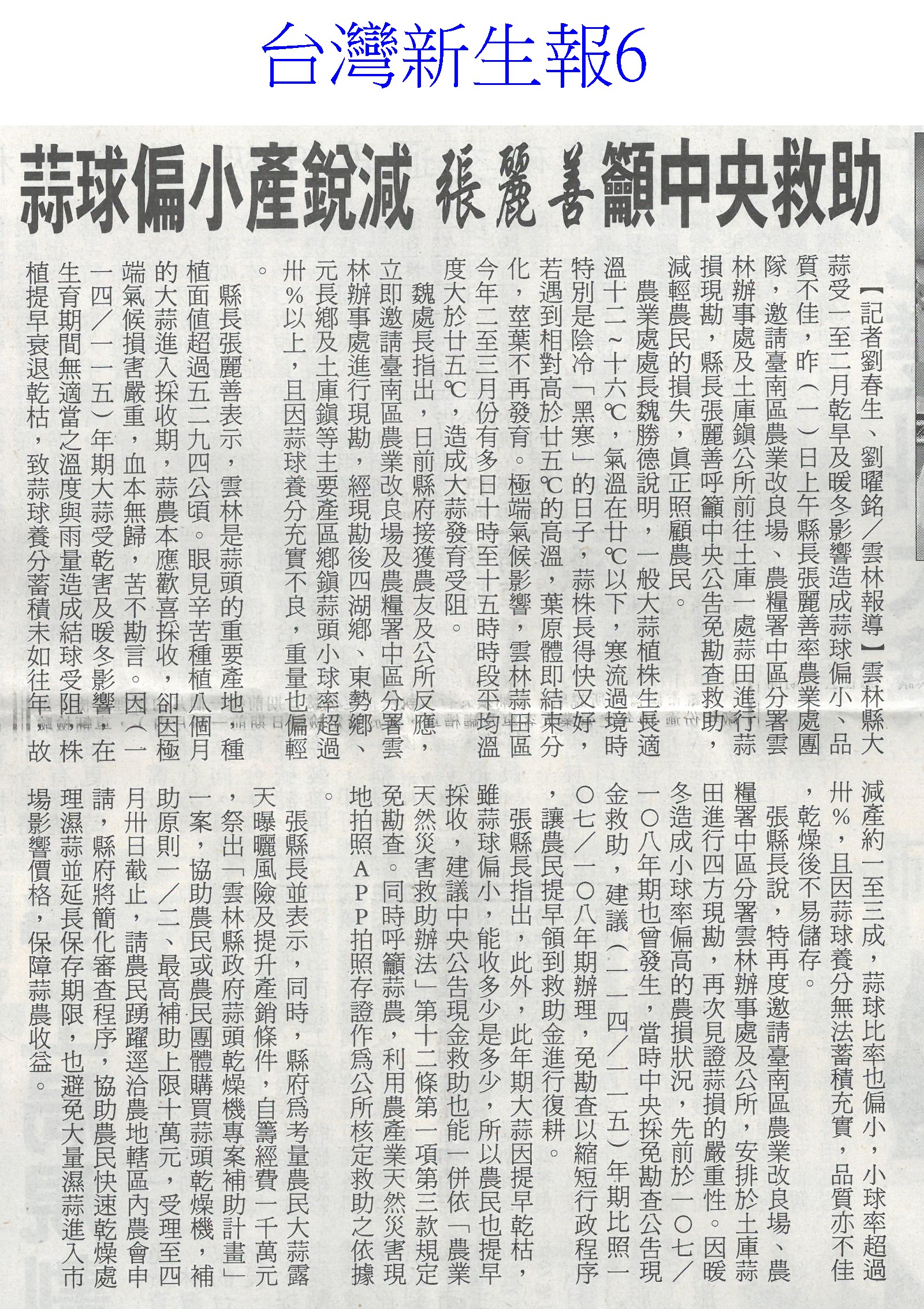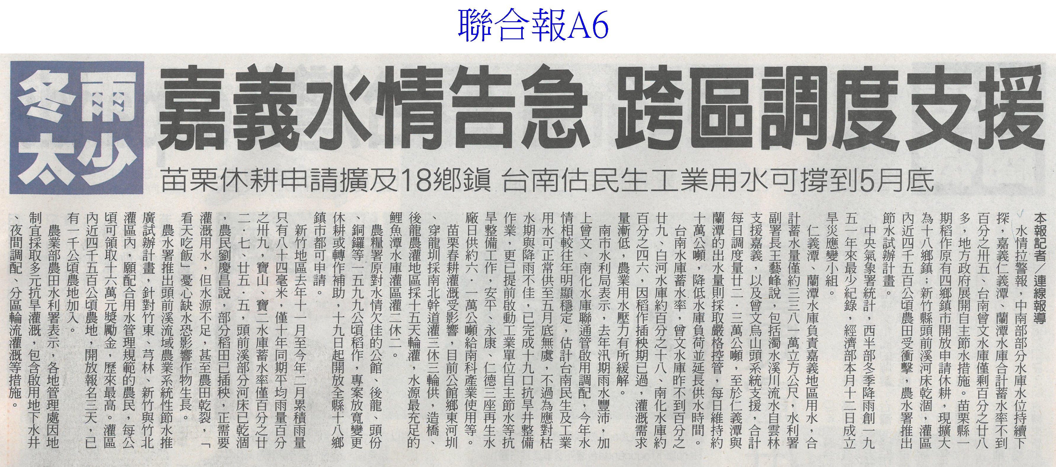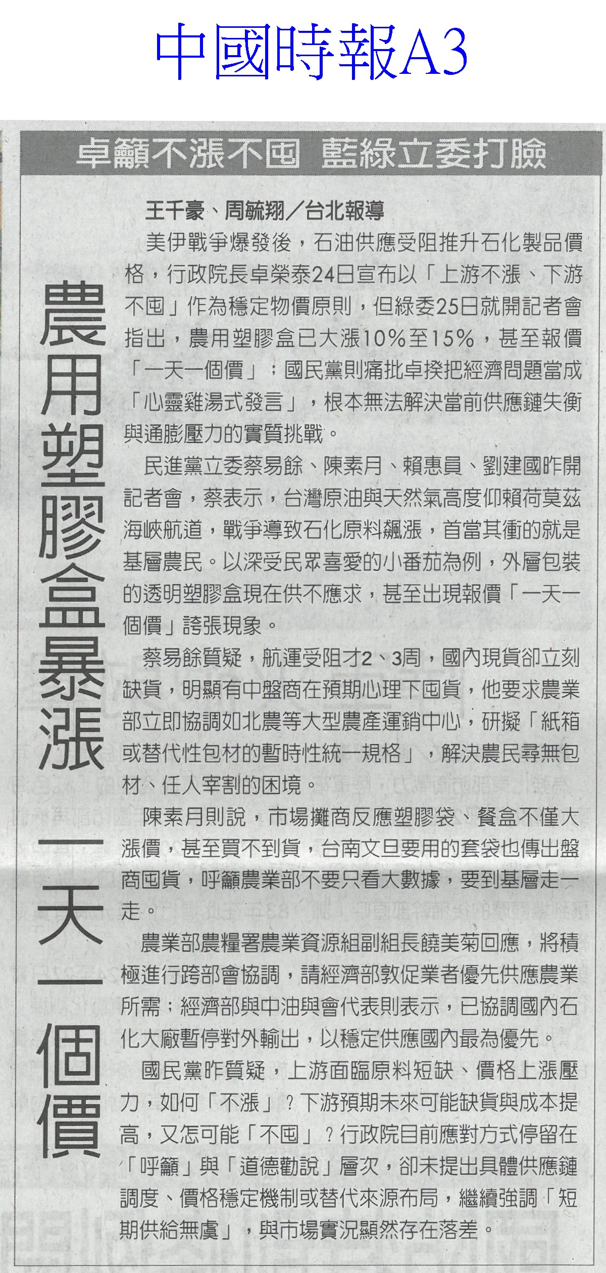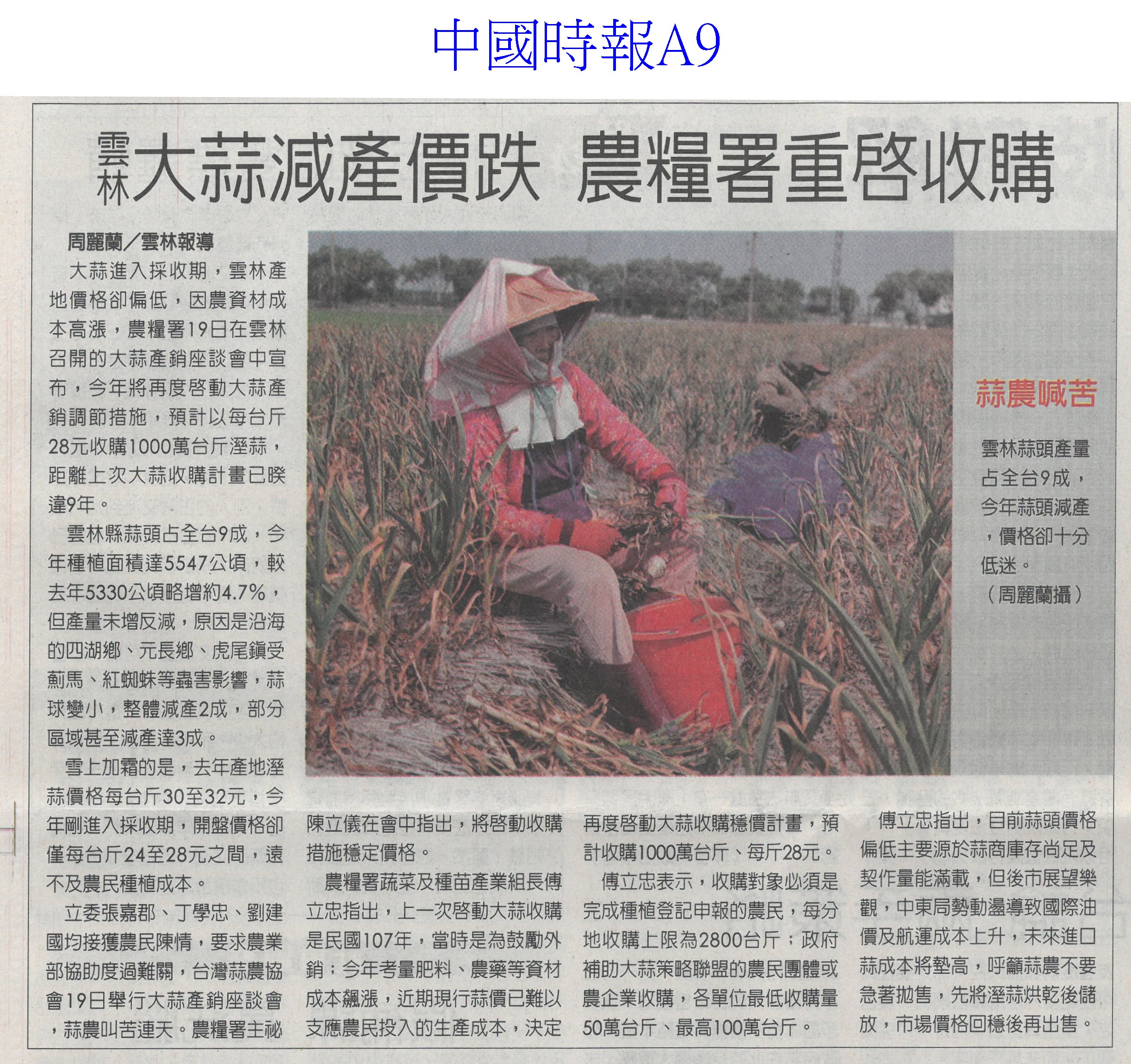 首頁甘藍新鮮聞 甘藍新鮮聞 排序 發布日期 更新日期 序號 發布日期 標題 41. 115/04/04 小番茄一盒10元!全聯限時下殺「結帳再折價」 婆媽驚喜:皮薄又甜 42. 115/04/02 政府補助及部分台肥吸收 肥料凍漲(臺灣時報4) 43. 115/04/02 高溫蒜球小 雲林蒜農爭取天災救助(自由時報A9) 44. 115/04/02 蒜球偏小產銳減 張麗善籲中央補助(台灣新生報6) 45. 115/04/02 雲林大蒜乾枯失收 縣府促免勘現金救助(中國時報A9) 46. 115/04/02 一把青蔥的賭局「以冬養工、以夏搏命」,顏值競爭、人工依賴,青蔥產業脆弱結構 47. 115/04/01 上半年農業民生工業用水無虞(中華日報B1) 48. 115/04/01 當季尚青!台南高麗菜進校園 學童午餐每週都吃得到 49. 115/03/31 嘉義水情告急 跨區調度支援(聯合報A6) 50. 115/03/31 農糧署導入GIS 農藥殘留採樣無死角(民眾日報16) 51. 115/03/30 國際肥料價格波動 南市推環保尚好肥(民眾日報12) 52. 115/03/30 後壁八掌溪農田休耕 農糧署允協助(聯合報A13) 53. 115/03/30 穩定蒜價 農糧署收購每斤28元以上(自由時報A8) 54. 115/03/30 雲林大蒜減產價跌 農糧署重啟收購(中國時報A9) 55. 115/03/30 酒米新品種南藏 發表暨技轉簽約(民眾日報3) 56. 115/03/30 曾文水庫喊渴 蓄水率跌破27%(中國時報A9) 57. 115/03/30 聖嬰年水情告急 先抗旱後防汛(中國時報A4) 58. 115/03/26 農用塑膠盒暴漲 一天一個價(中國時報A3) 59. 115/03/26 台南21號南藏釀造清酒簽約量產(自由時報A7) 60. 115/03/26 高麗菜外銷7國840噸 拚月底破千噸(自由時報A9) 第 3/194 頁,共 3872 筆上一頁到第123456789101112131415161718192021222324252627282930313233343536373839404142434445464748495051525354555657585960616263646566676869707172737475767778798081828384858687888990919293949596979899100101102103104105106107108109110111112113114115116117118119120121122123124125126127128129130131132133134135136137138139140141142143144145146147148149150151152153154155156157158159160161162163164165166167168169170171172173174175176177178179180181182183184185186187188189190191192193194頁下一頁每頁103070筆資料