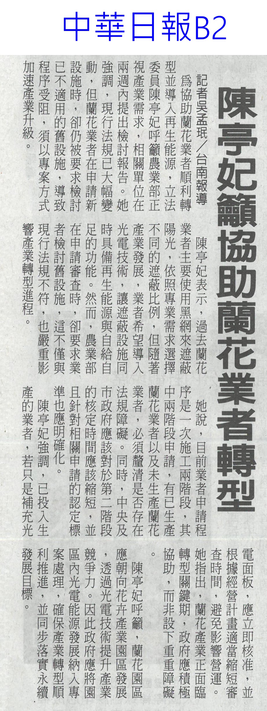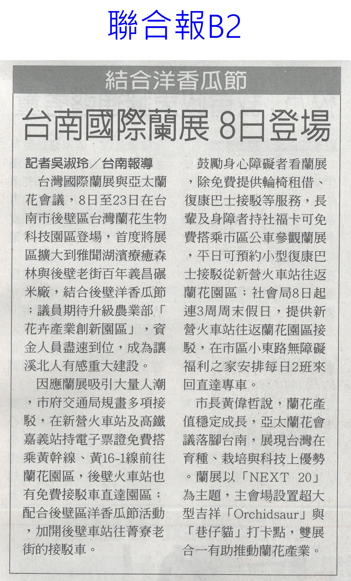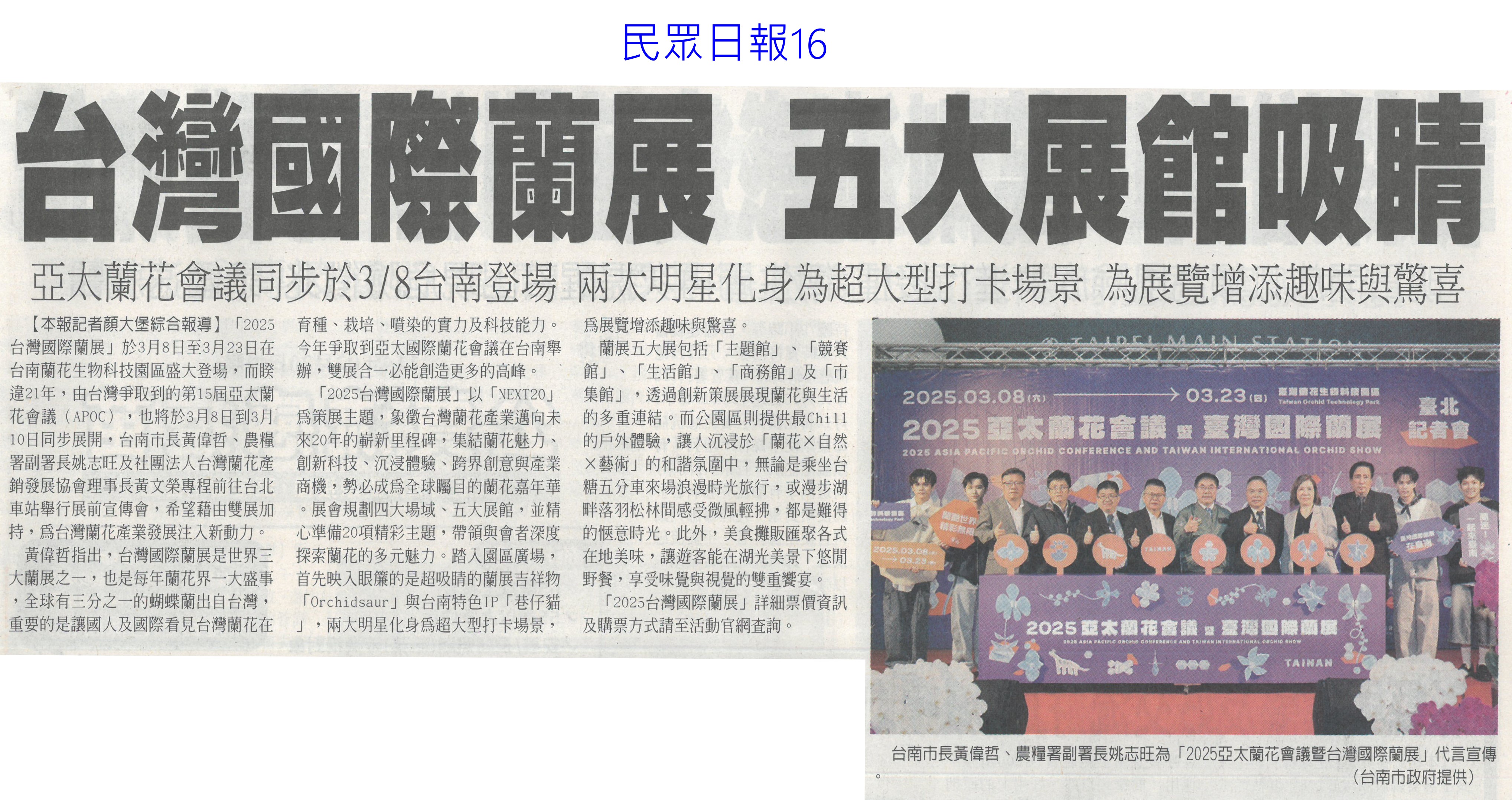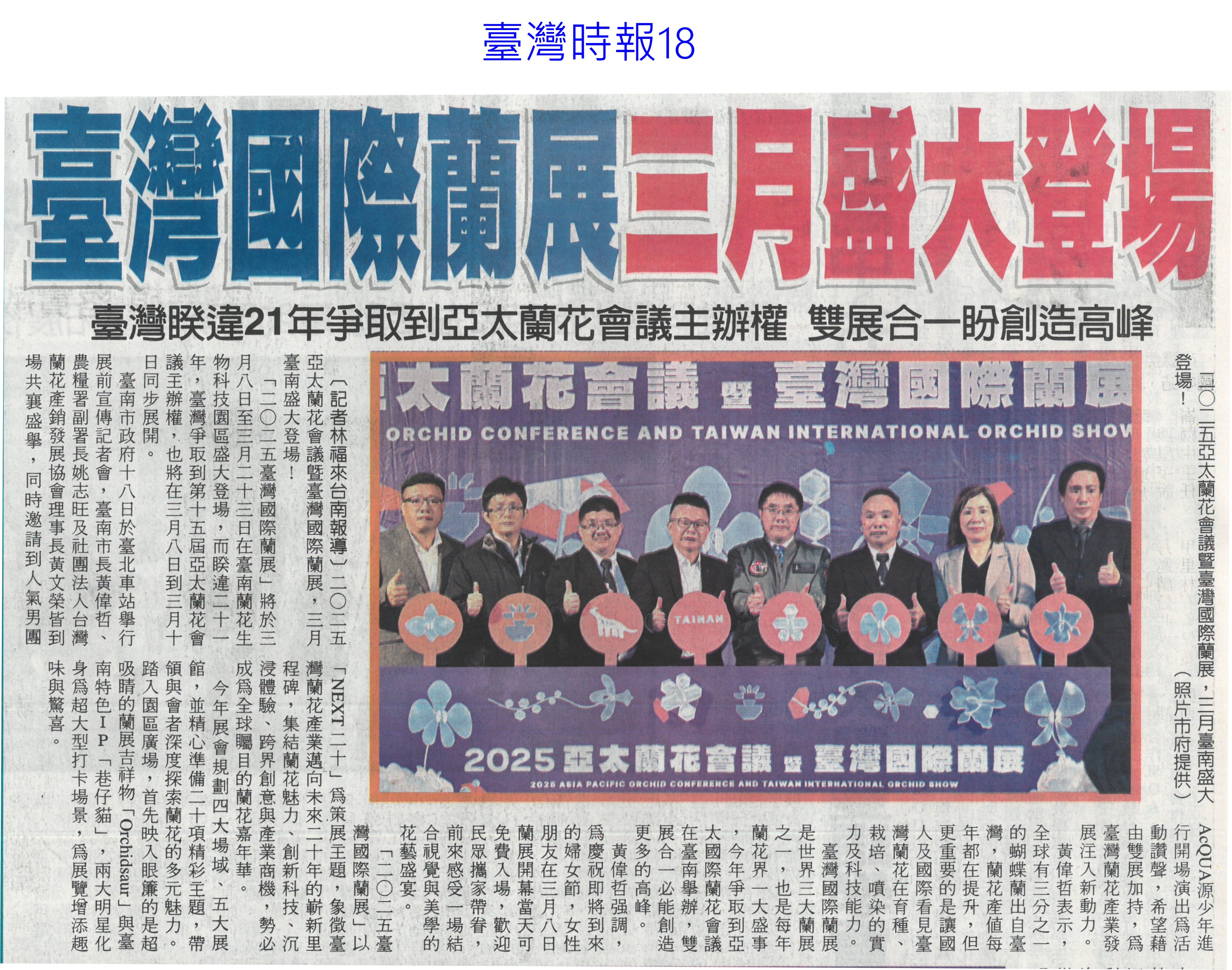 首頁花現新聞 花現新聞 排序 發布日期 更新日期 序號 發布日期 標題 301. 114/03/03 台南國際蘭展 8日登場(聯合報B2) 302. 114/03/03 雲林農村再生 中央今年再補助逾1.2億(自由時報A10) 303. 114/03/03 智慧科技助陣 桃雲嘉農業升級(中國時報A8) 304. 114/02/25 韓商團考察 黃偉哲推銷農產(中華日報B8) 305. 114/02/20 農會改選注新血 多名青農上榜(中華日報B8) 306. 114/02/20 臺灣國際蘭展三月盛大登場(臺灣時報18) 307. 114/02/20 臺灣國際蘭展 五大展館吸睛(民眾日報16) 308. 114/02/20 亞太蘭花會國際蘭展爭輝(中華日報B1) 309. 114/02/18 氣候影響生長 蜀葵花節延期(中華日報B1) 310. 114/02/18 天冷減產 玫瑰價揚2成多(臺灣時報10) 311. 114/02/18 農產品檢測中心動土 強化品質安全(民眾日報14) 312. 114/02/18 降低稻作面積 農糧署輔導轉作雜糧(中華日報B8) 313. 114/02/18 台南後壁農地清淤 中央補助一億(中國時報A9) 314. 114/02/18 青農經營準備金 今開放申請(臺灣時報10) 315. 114/02/18 新進青農經營準備金 即日起至3月7日開放申請(自由時報A8) 316. 114/02/18 植物品種權 去年申請200件(自由時報A8) 317. 114/02/18 尊重植物品種權 農業創新無限可能(民眾日報16) 318. 114/02/18 農業經營準備金 今起開放申請(民眾日報14) 319. 114/02/11 雲縣智慧農業補助開跑(台灣新生報6) 320. 114/02/11 陳亭妃籲協助蘭花業者轉型(中華日報B2) 第 16/125 頁,共 2496 筆上一頁到第123456789101112131415161718192021222324252627282930313233343536373839404142434445464748495051525354555657585960616263646566676869707172737475767778798081828384858687888990919293949596979899100101102103104105106107108109110111112113114115116117118119120121122123124125頁下一頁每頁103070筆資料
