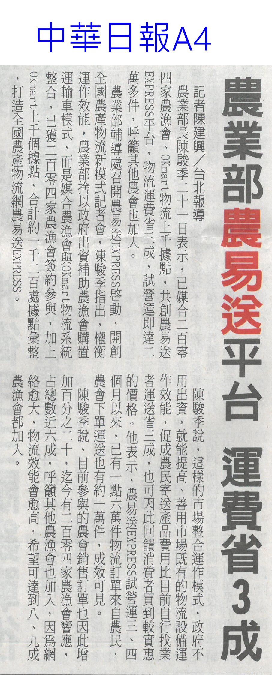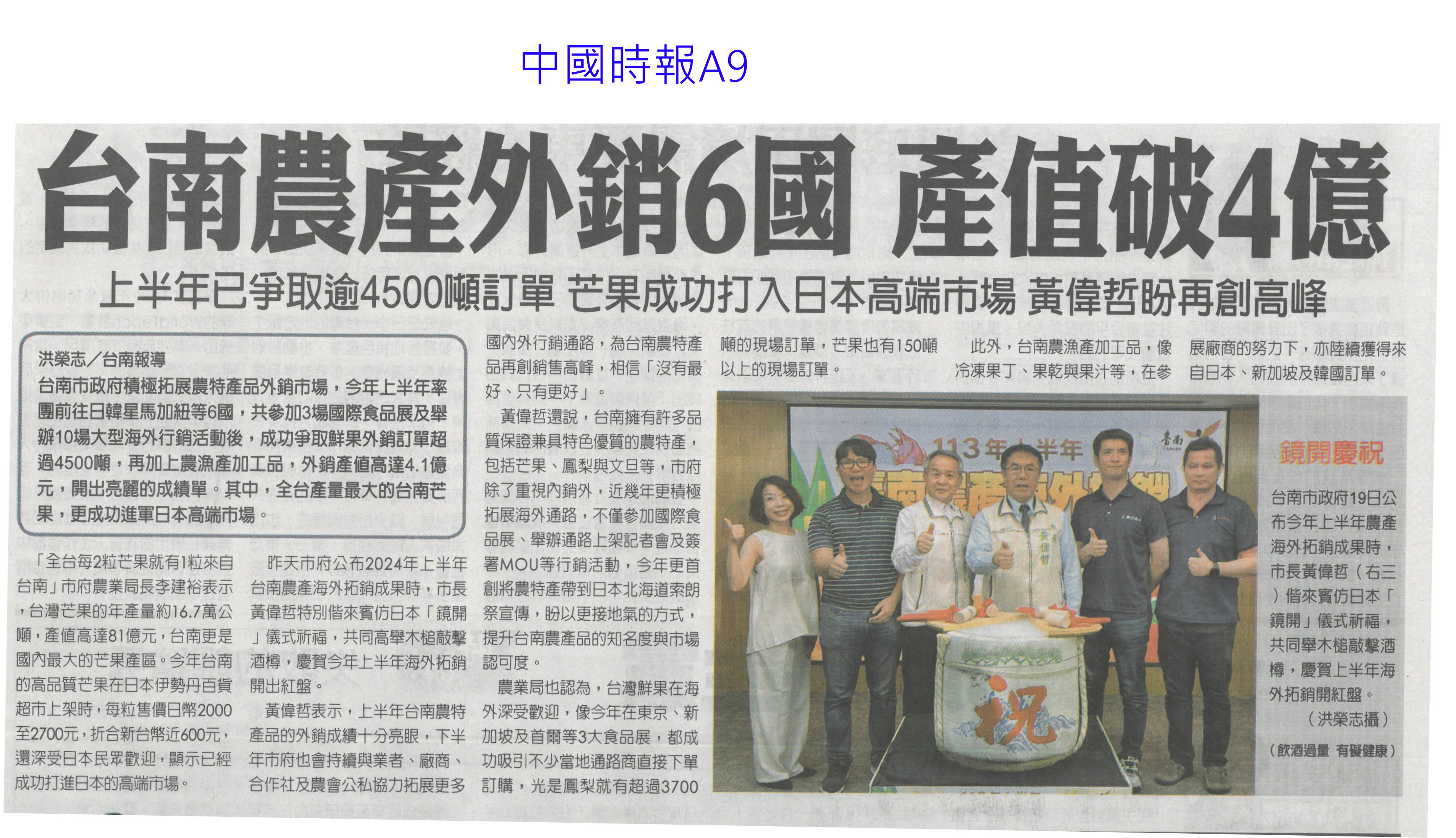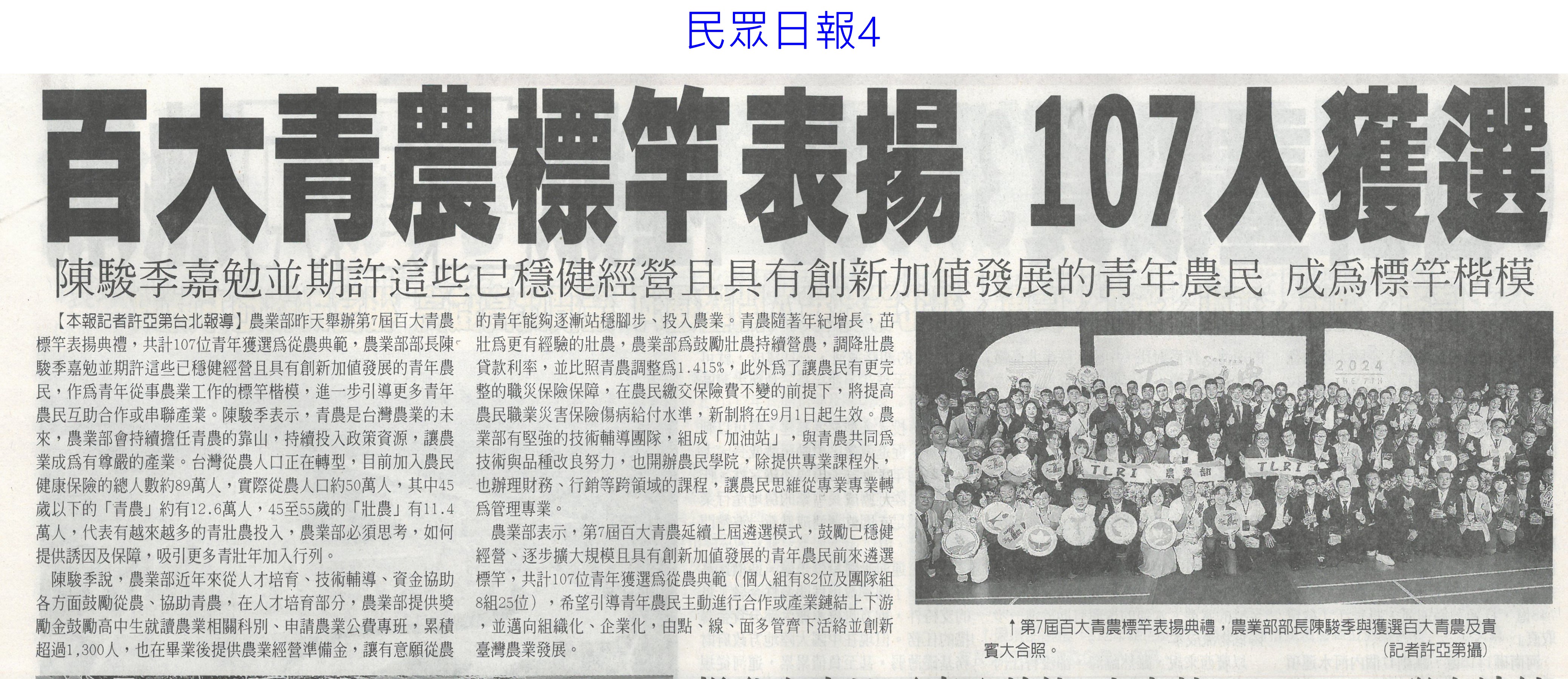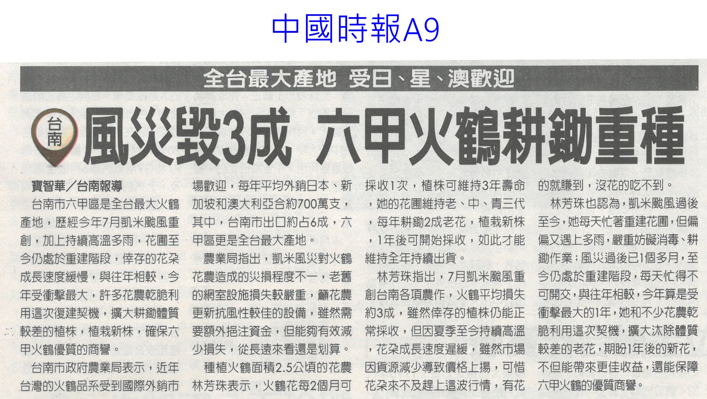 首頁花現新聞 花現新聞 排序 發布日期 更新日期 序號 發布日期 標題 521. 113/09/09 秋節烤食 縣府籲買環保澆灌作物(中國時報A9) 522. 113/09/06 台南農產品前進香港果蔬展(中華日報B8) 523. 113/09/06 行銷台灣優質農產品 陳駿季訪日韓(民眾日報4) 524. 113/09/06 新品種火鶴花 莫蘭迪色 時尚寵兒(自由時報A9) 525. 113/09/02 農民傷病給付 前2月日領增至680元(自由時報A6) 526. 113/09/02 張麗善與青農交流新生傾聽心聲(台灣新生報6) 527. 113/09/02 台南風災毀3成 六甲火鶴耕鋤重種(中國時報A9) 528. 113/09/02 農改場輔導青農 23人列百大標竿(中華日報B2) 529. 113/09/02 百大青農標竿表揚 107人獲獎(民眾日報4) 530. 113/08/23 胡忠一率團出席APEC糧食安全部長會議(民眾日報2) 531. 113/08/23 國土畫設 雲縣議會要求修正農一比例(中國時報A9) 532. 113/08/23 天牛`猴危害農作物 台東農改場研發空氣灌注 `防猴網罩(中華日報B6) 533. 113/08/22 農漁產品外銷 上半年產值破4億(自由時報A11) 534. 113/08/22 台南農產外銷6國 產值破4億(中國時報A9) 535. 113/08/22 農糧署攜全聯 提升國產米使用量(民眾日報16) 536. 113/08/22 高雄區農改場育成薑荷花新品種薑荷花新品種(臺灣時報15) 537. 113/08/22 農業部結合OK mart 打造全國農產物流網(民眾日報16) 538. 113/08/22 農業部農易送平台 運費省3成(中華日報A4) 539. 113/08/19 雲國土計畫說明會 土庫開講(台灣新生報7) 540. 113/08/18 新加坡秋季旅展 黃偉哲組「台南隊」推觀光 第 27/129 頁,共 2567 筆上一頁到第123456789101112131415161718192021222324252627282930313233343536373839404142434445464748495051525354555657585960616263646566676869707172737475767778798081828384858687888990919293949596979899100101102103104105106107108109110111112113114115116117118119120121122123124125126127128129頁下一頁每頁103070筆資料