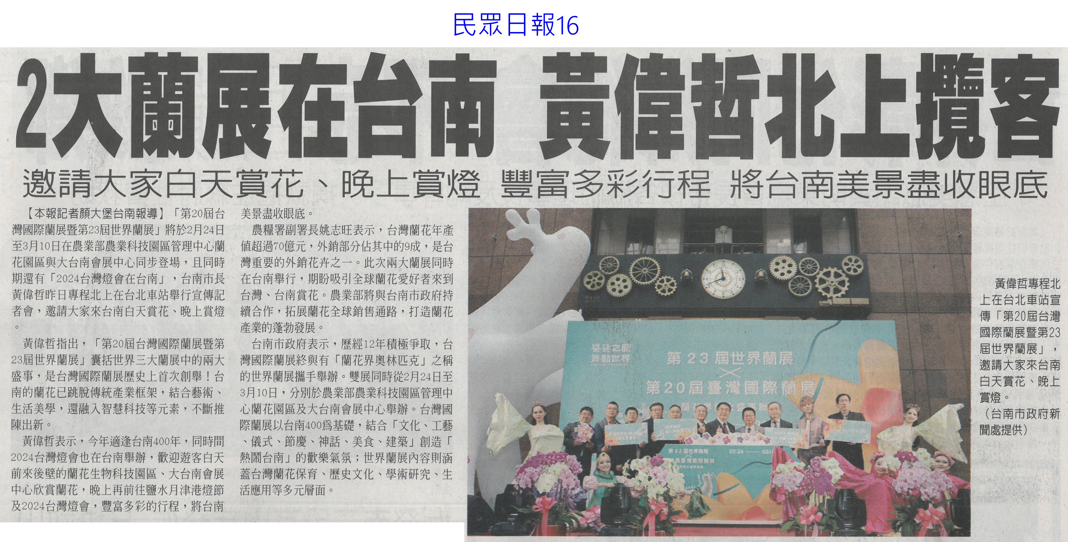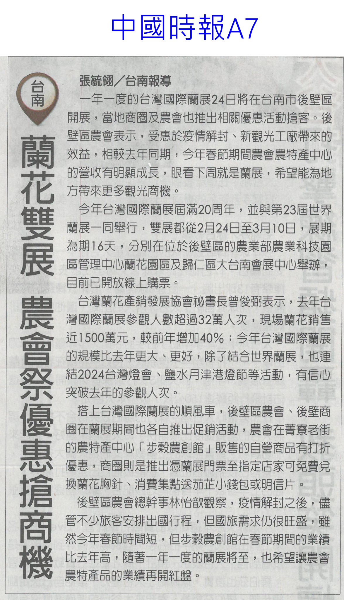 首頁花現新聞 花現新聞 排序 發布日期 更新日期 序號 發布日期 標題 661. 113/02/26 農業部4政策 拚2040農業淨零(自由時報A7) 662. 113/02/26 花蓮小農種碳 一舉兩得(自由時報A7) 663. 113/02/26 南市青農聯誼會選舉 許玉靜連任總會長(台灣新生報8) 664. 113/02/26 世界蘭展 台南華麗盛開(中華日報B1) 665. 113/02/21 2大蘭展在台南 黃偉哲北上攬客(民眾日報16) 666. 113/02/21 國際+世界雙蘭展 24日同步登場(中華日報B1) 667. 113/02/20 台南蘭花雙展 農會祭優惠搶商機(中國時報A7) 668. 113/02/16 高鐵燈區 指定伴手禮這裡買(中國時報A8) 669. 113/02/16 玉井冷鏈物流中心 簽約委外經營(中國時報A9) 670. 113/02/16 玉井農產加工及冷鏈物流中心OT案 簽約(台灣新生報2) 671. 113/02/16 品農味食大地 39農村好店端限定美食(民眾日報4) 672. 113/02/16 玉井冷鏈中心委外簽約 果品外銷升級(自由時報A13) 673. 113/02/16 農民盼打造 專業農機隊(自由時報A6) 674. 113/02/16 供貨充裕 春節應景蔬果價估微降(自由時報A6) 675. 113/02/07 將結合植物診療師 鹿草農會噴藥隊成軍(聯合報B2) 676. 113/02/05 陳揆鼓勵國人踴躍購買國產花卉(民眾日報4) 677. 113/02/05 春節腳步近 農漁畜產全面增供(自由時報A11) 678. 113/02/05 雲林農特產 變身年菜伴手禮(臺灣時報10) 679. 113/02/05 農產供應穩定 安心採購過好年(民眾日報3) 680. 113/02/05 嘉義優鮮聯名商品 迎新春(中國時報A8) 第 34/122 頁,共 2424 筆上一頁到第123456789101112131415161718192021222324252627282930313233343536373839404142434445464748495051525354555657585960616263646566676869707172737475767778798081828384858687888990919293949596979899100101102103104105106107108109110111112113114115116117118119120121122頁下一頁每頁103070筆資料