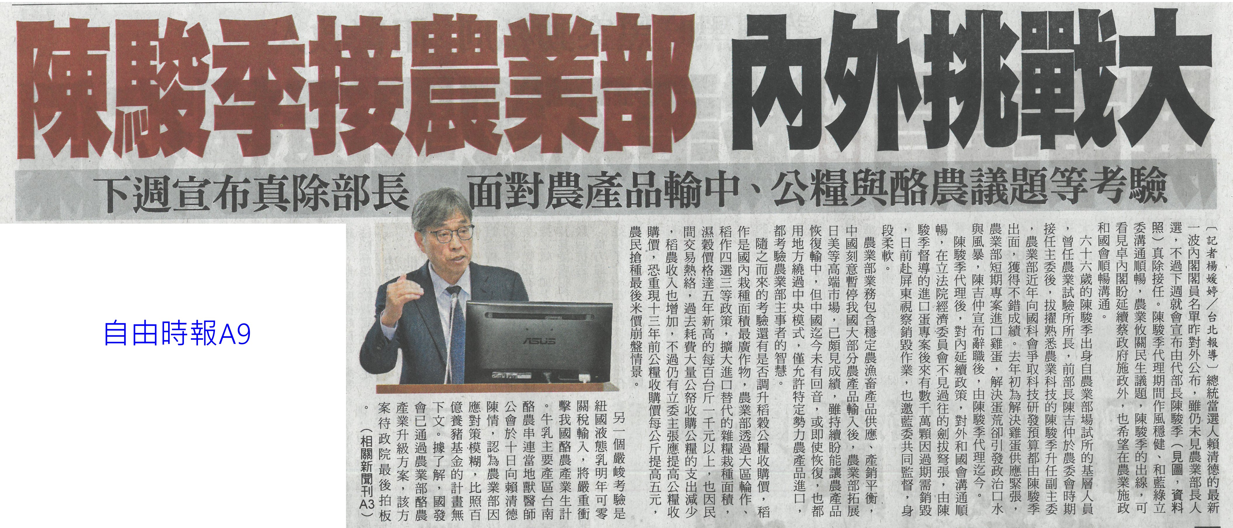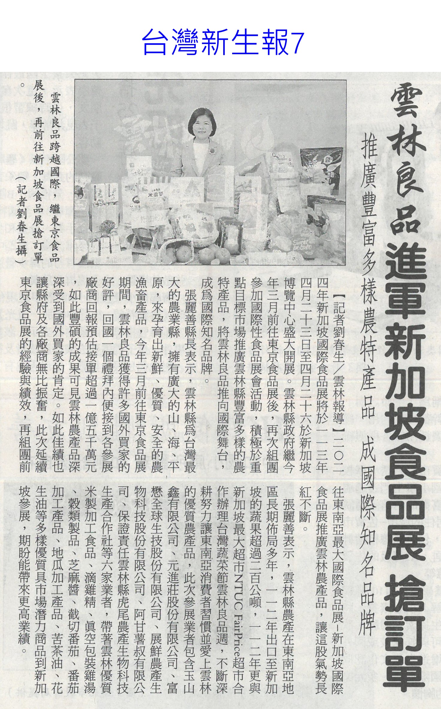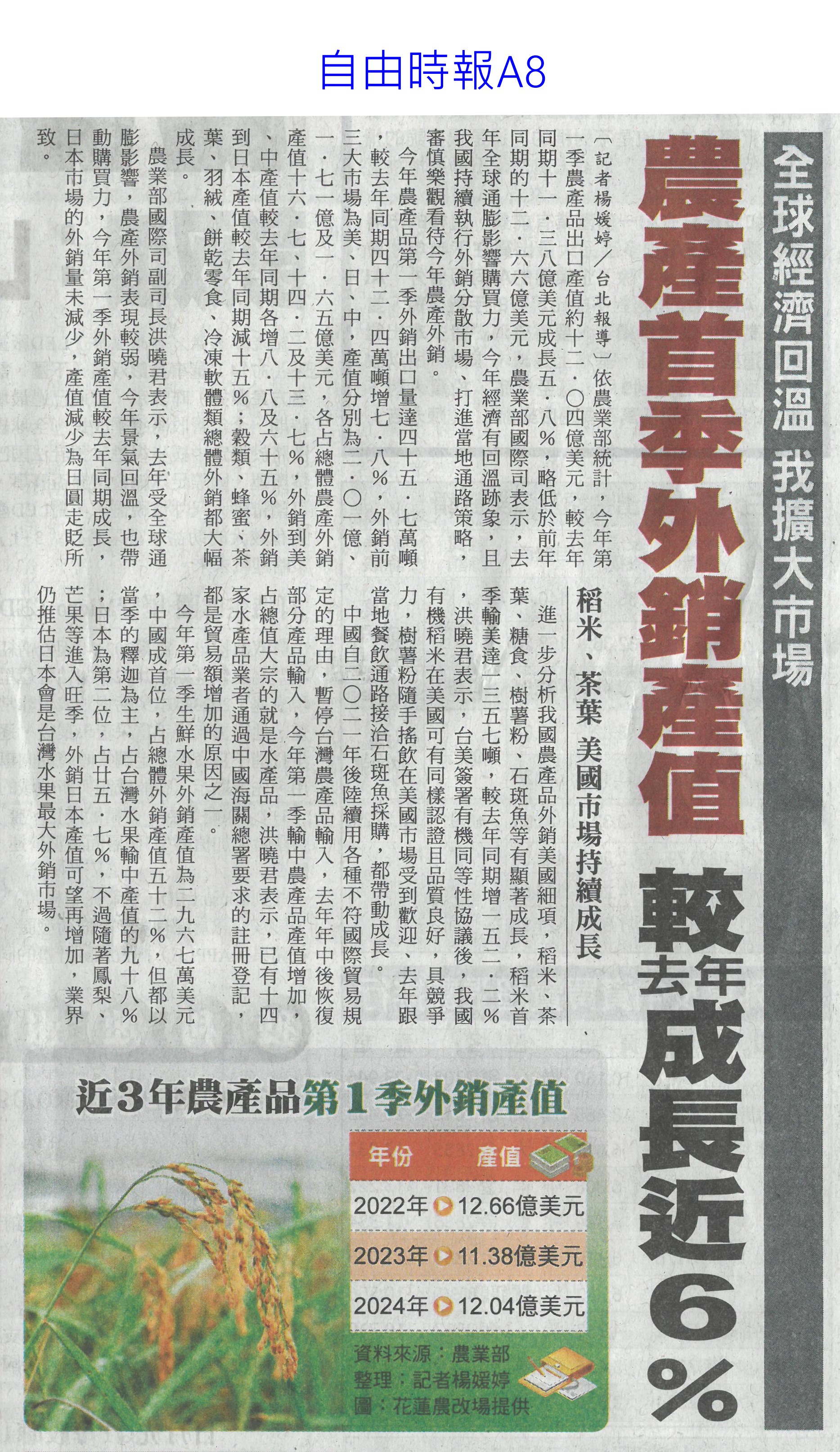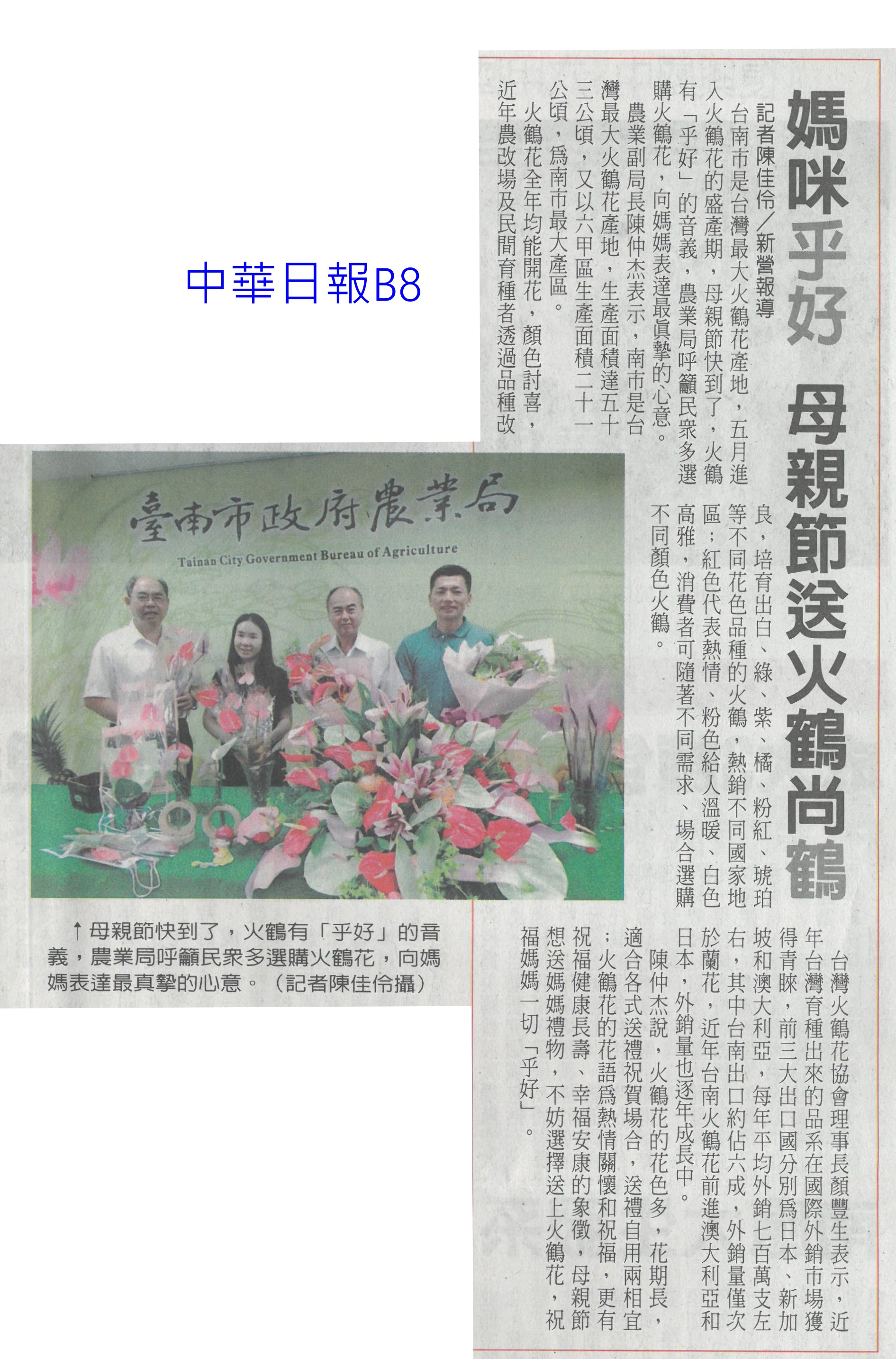 首頁花現新聞 花現新聞 排序 發布日期 更新日期 序號 發布日期 標題 701. 113/05/06 媽咪乎好 母親節送火鶴上鶴(中華日報B8) 702. 113/05/06 瓜果節登場 苦瓜 絲瓜當主角(中華日報B4) 703. 113/05/06 張麗善:輔導農民投入智慧科技創新農業(台灣新生報7) 704. 113/05/06 永康就業中心求職送火鶴花 婦女再就業可領3萬 705. 113/05/05 溫馨五月 市長夫人送火鶴祝福台南修繕志工母親節快樂 706. 113/05/03 曾文 烏山頭水庫 3天進帳800萬噸(自由時報A11) 707. 113/05/03 山區降雨 曾文水庫進帳62萬噸(自由時報A11) 708. 113/05/03 農產首季外銷產值 較去年成長6%(自由時報A8) 709. 113/05/03 母親節送火鶴花 奶茶 粉膚色夯(中國時報A9) 710. 113/04/25 屏東冷鏈廠啟用 年減300噸鮮果損耗(民眾日報3) 711. 113/04/25 陳駿季接農業部 內外挑戰大(自由時報A9) 712. 113/04/25 雲林良品進軍新加坡食品展 搶訂單(台灣新生報7) 713. 113/04/25 新加坡食品展 台南隊逾50產品搶市(自由時報A11) 714. 113/04/25 黃偉哲領軍 台南農產品登新加坡食品展(中華日報B8) 715. 113/04/25 近百億計畫 蘭花園區轉型花創園區(自由時報A11) 716. 113/04/25 蘭花園區將轉型花創園區(中華日報B8) 717. 113/04/25 力爭近百億 台灣蘭花生技園區轉型(中國時報A9) 718. 113/04/25 陳駿季掌農業部 喊話擺脫補貼政策(中國時報A3) 719. 113/04/25 環團籲強制回收農膜 要求生產者付費(聯合報A6) 720. 113/04/25 農膜廢棄成災 政府回收淪口號(聯合報A6) 第 36/129 頁,共 2571 筆上一頁到第123456789101112131415161718192021222324252627282930313233343536373839404142434445464748495051525354555657585960616263646566676869707172737475767778798081828384858687888990919293949596979899100101102103104105106107108109110111112113114115116117118119120121122123124125126127128129頁下一頁每頁103070筆資料