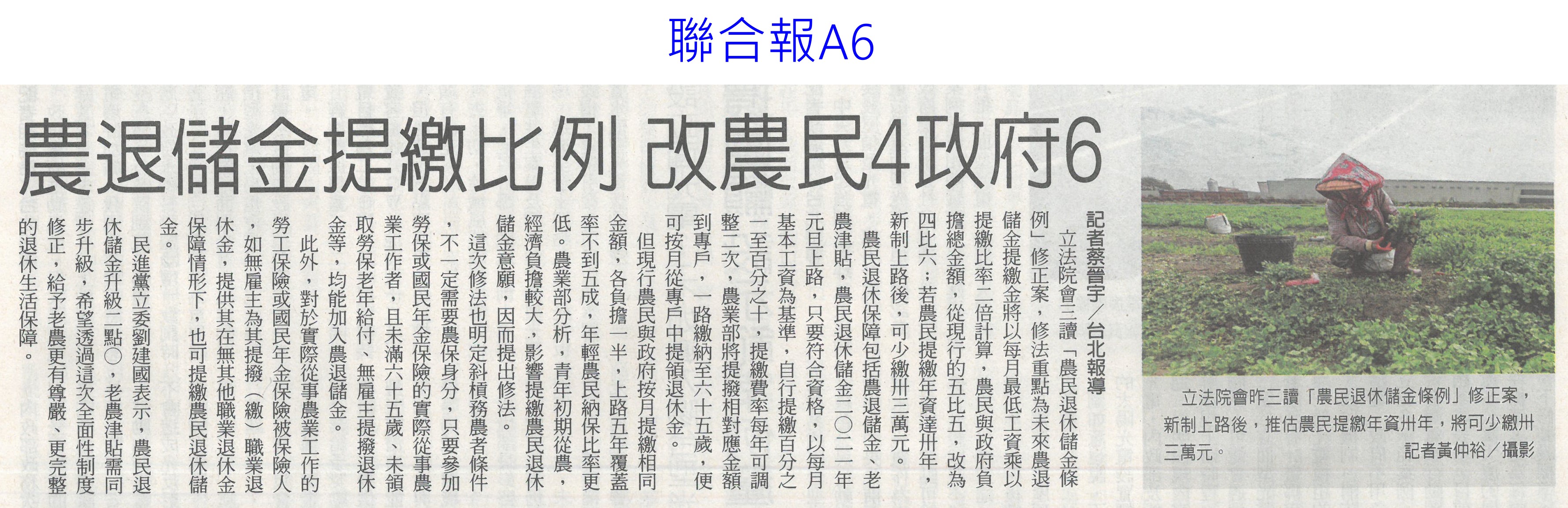 首頁花現新聞 花現新聞 排序 發布日期 更新日期 序號 發布日期 標題 101. 115/01/28 農退儲金修正三讀 農民負擔降至4成(自由時報A6) 102. 115/01/28 農退儲金提繳比例 改農民4政府6(聯合報A6) 103. 115/01/28 雲林良品 前進波灣國際食品展(台灣新生報6) 104. 115/01/28 黃偉哲領軍打開國際市場(中華日報B1) 105. 115/01/28 清真認證 雲林農產前進波灣(中國時報A9) 106. 115/01/22 農災APP精準紀錄 加速救災時效(中華日報B3) 107. 115/01/22 台美談判 農產進口未以零關稅為前提(台灣新生報2) 108. 115/01/22 雲林好禮揪柑心 北上推廣(台灣新生報6) 109. 115/01/22 政院拍板 老農津貼增至1萬(臺灣時報1) 110. 115/01/22 新農經營準備金 19日起開放申請(中華日報A4) 111. 115/01/22 質譜快篩把關 蔬果安全有保障(民眾日報10) 112. 115/01/21 台南年節農產 進軍新北展售(台灣時報13) 113. 115/01/21 農業應對關稅 需變革而非補助(聯合報A10) 114. 115/01/21 新興農產業 四南坡地啤酒花試種成功(民眾日報16) 115. 115/01/21 嘉縣推12項伴手禮 台灣燈會限定聯名(自由時報A9) 116. 115/01/21 立院三讀 壟斷/操作農產品交易 最重可處30萬罰款(自由時報A7) 117. 115/01/21 嘉義優鮮伴手禮型錄 上線(台灣新生報6) 118. 115/01/21 嘉義優鮮迎燈會 搶攻年節商機(中國時報A9) 119. 115/01/13 臺南農改場育成臺南2號胡麻新品種(民眾日報16) 120. 115/01/09 番路農會翻轉柿餅產業 百家農會取經(民眾日報16) 第 6/128 頁,共 2560 筆上一頁到第123456789101112131415161718192021222324252627282930313233343536373839404142434445464748495051525354555657585960616263646566676869707172737475767778798081828384858687888990919293949596979899100101102103104105106107108109110111112113114115116117118119120121122123124125126127128頁下一頁每頁103070筆資料