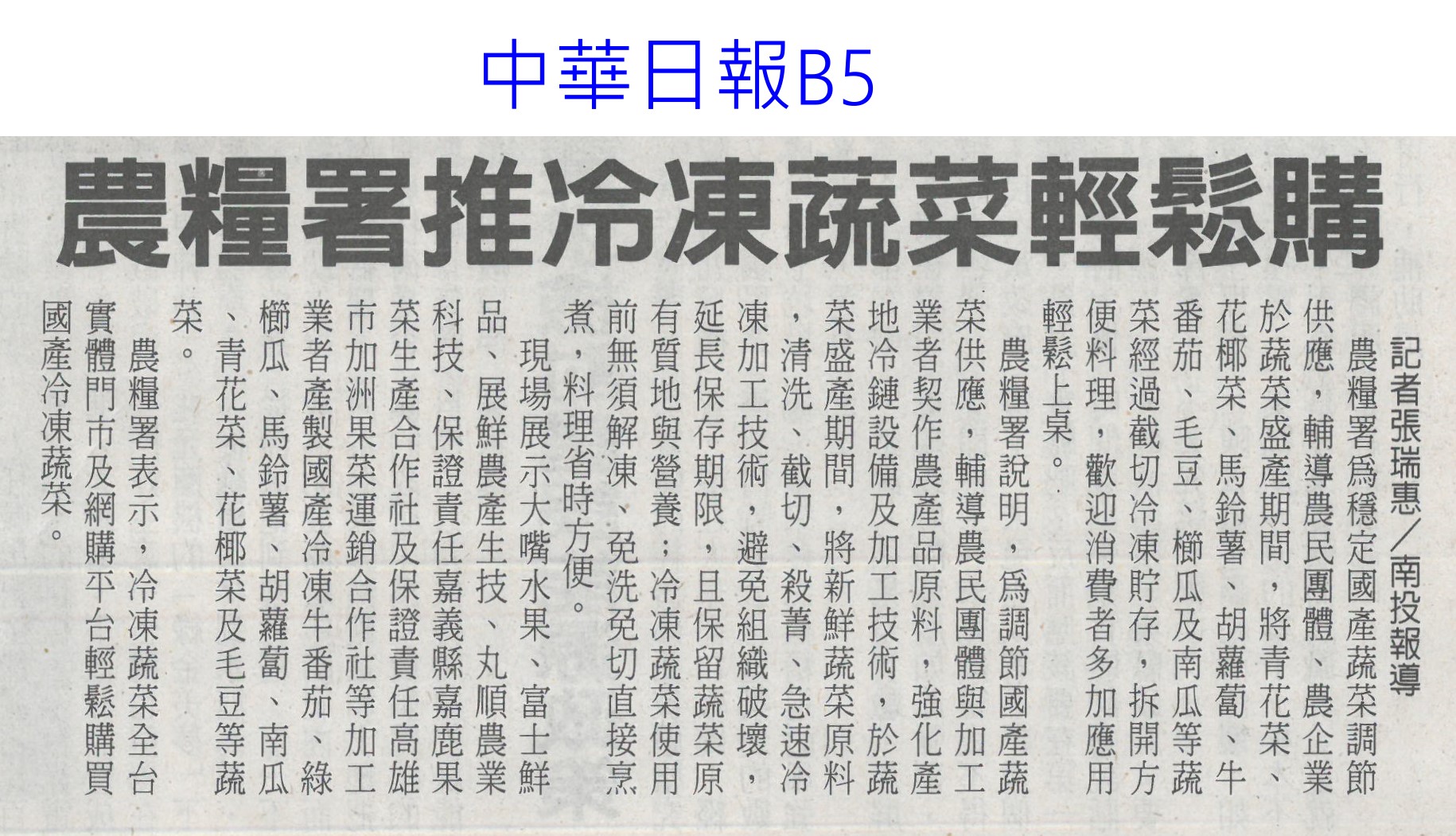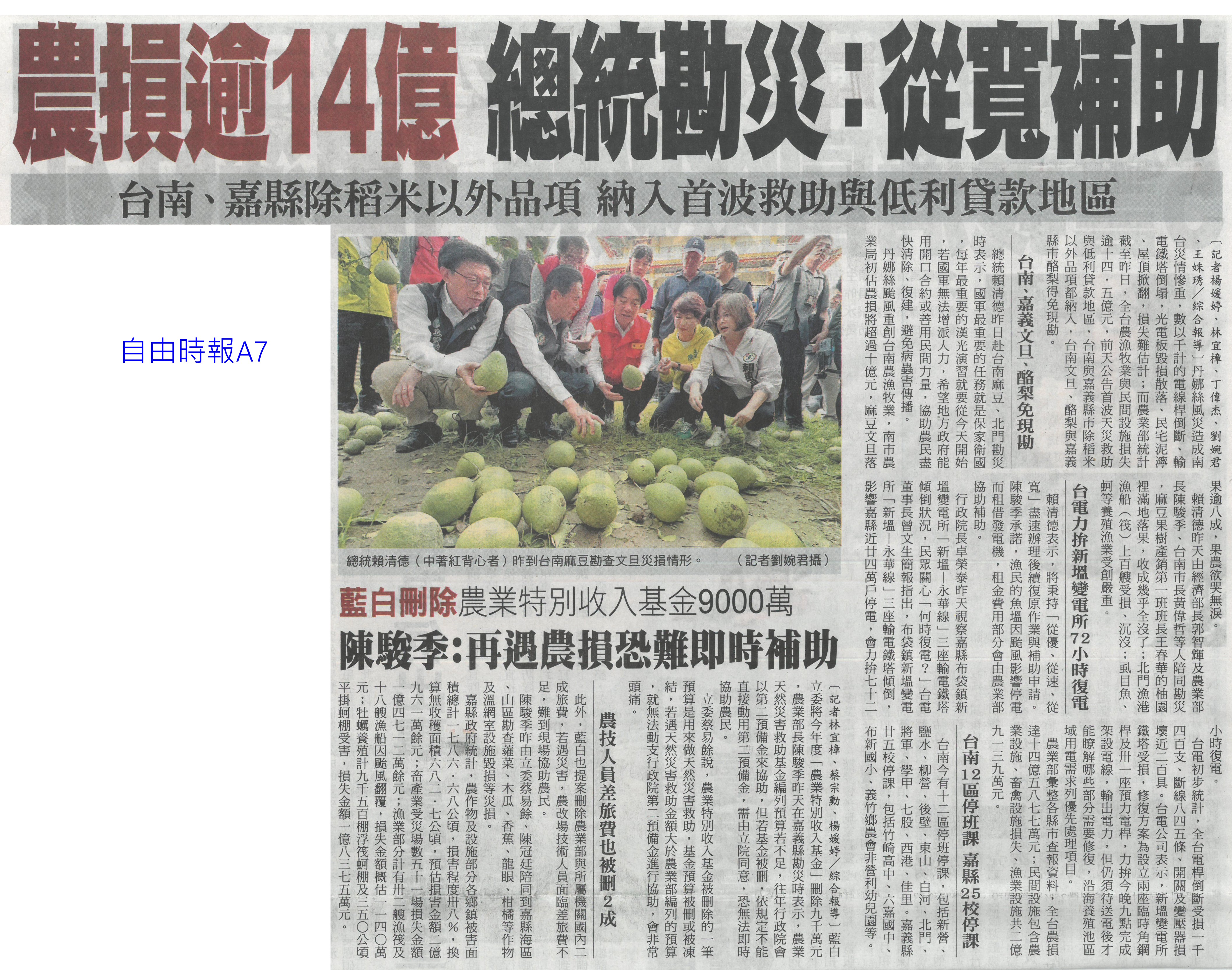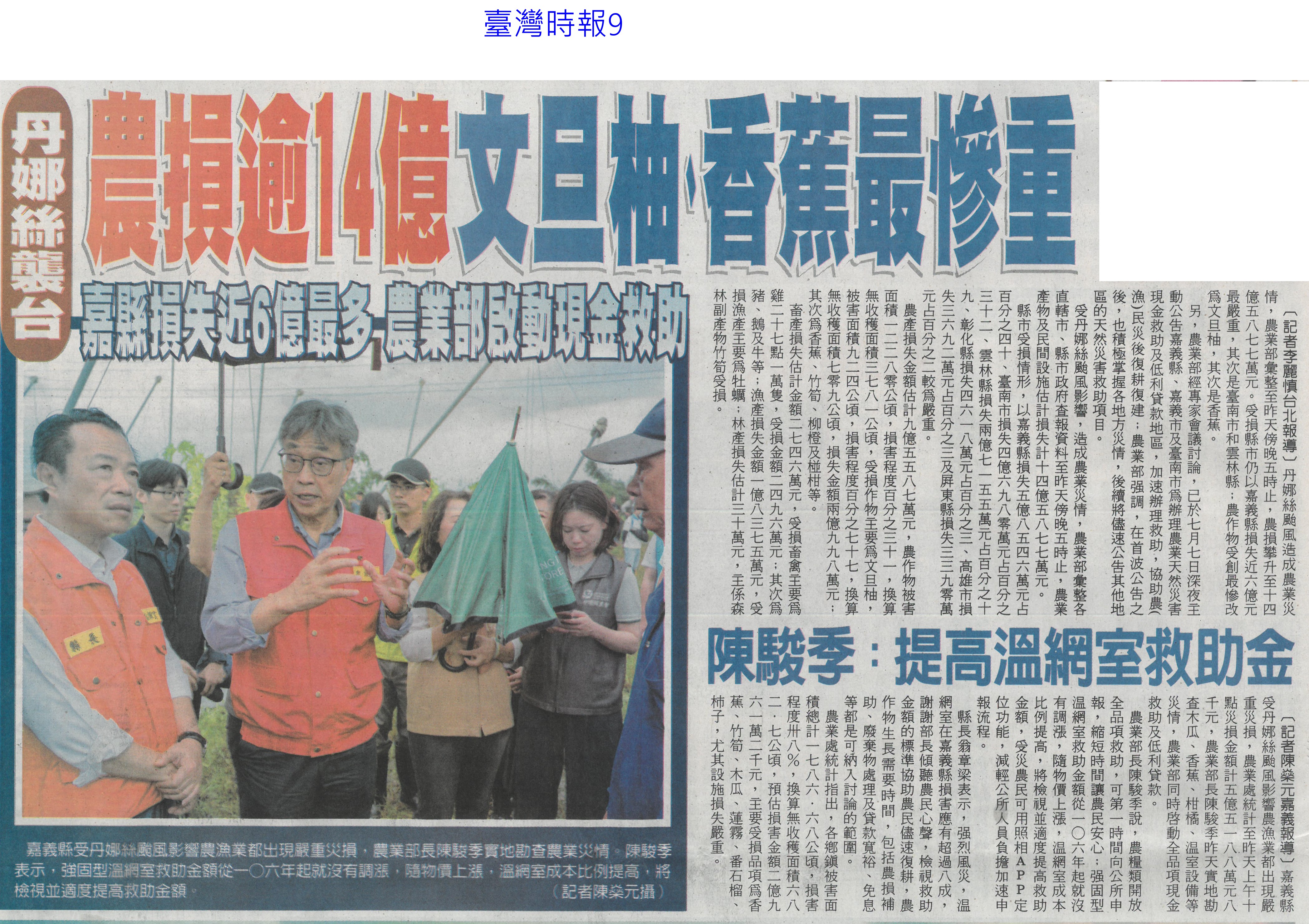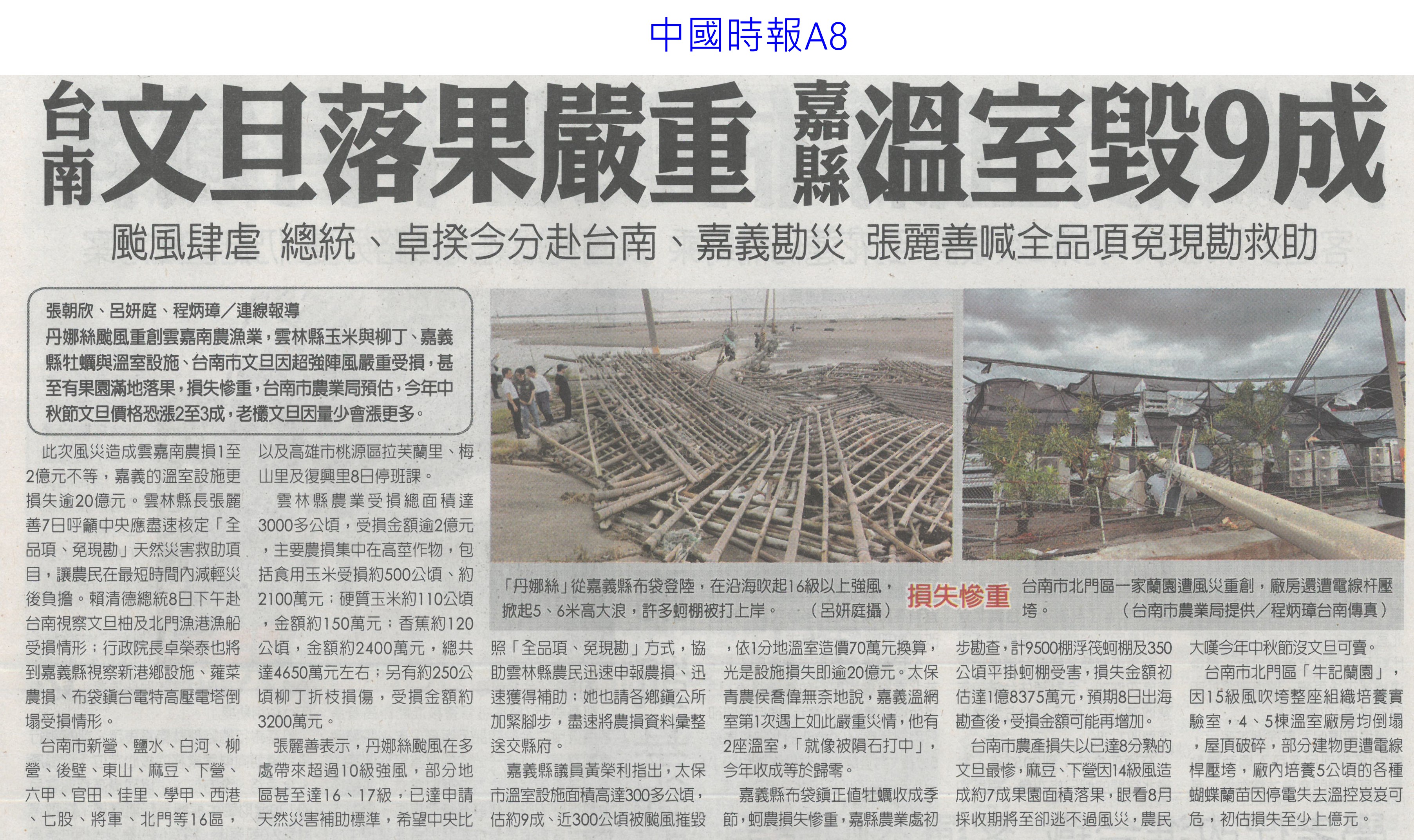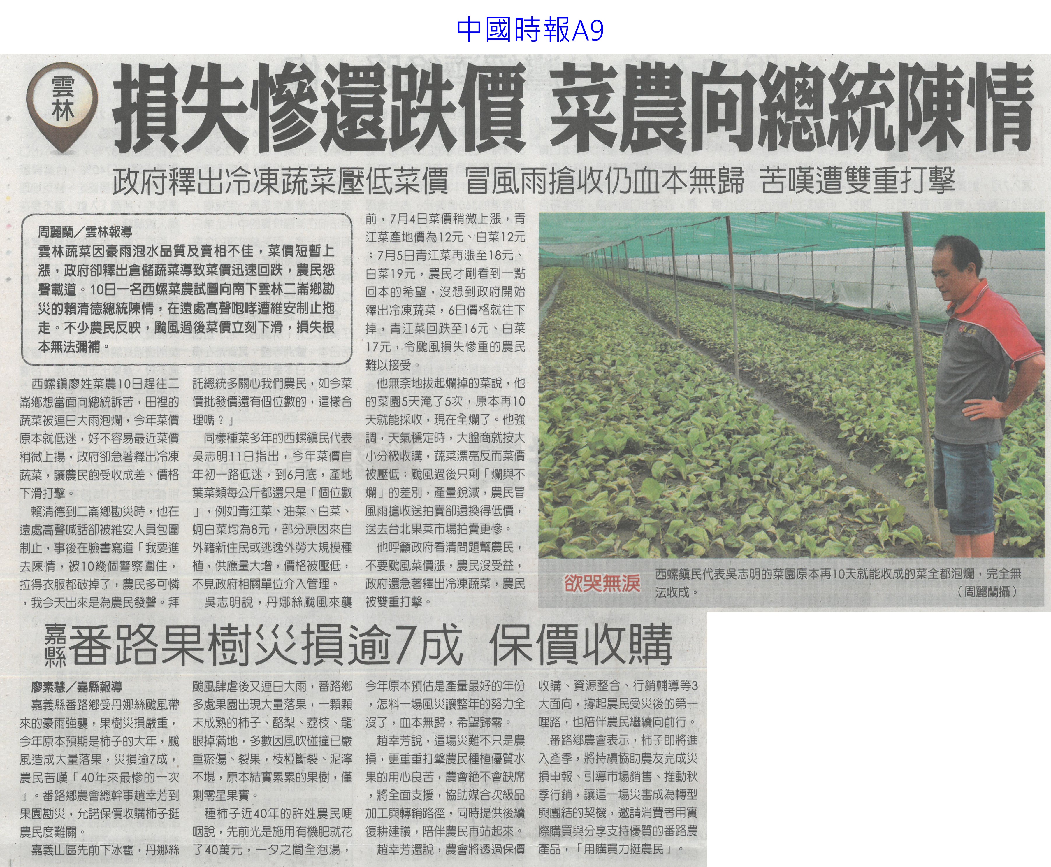 首頁番茄搶先報 番茄搶先報 排序 發布日期 更新日期 序號 發布日期 標題 321. 114/07/16 菜價漲7.2元 北農今陸續釋出50噸平價蔬菜 322. 114/07/16 搶便宜!丹娜絲致菜價漲7.2元 北農釋50噸平價蔬菜 323. 114/07/15 雲林農損逾3億 各公所爆申報救助人潮(中國時報A9) 324. 114/07/15 總統雲林勘災 張麗善促全品項救助(中國時報A8) 325. 114/07/15 雲林損失慘還跌價 菜農向總統陳情(中國時報A9) 326. 114/07/15 丹娜絲農損破25億 台南最慘(臺灣時報6) 327. 114/07/15 空心菜青蔥每公斤飆破百元(聯合報B1) 328. 114/07/15 設施栽培災損8成 重建盼提高金援(自由時報A11) 329. 114/07/15 颱風農損26億 台南10億最慘(中華日報A1) 330. 114/07/15 廢料再生!蕉莖纖維編假髮 番茄籽皮創新商機 331. 114/07/15 丹娜絲風災嘉義農損未復原 王育敏勘災盼提升農業韌性 332. 114/07/12 颱風後香菜產地「已全軍覆沒」 資深菜販曝:新莊市場1斤200 333. 114/07/12 香菜一斤「飆破200元」! 菜販嘆:產地全軍覆沒 334. 114/07/10 農糧署推冷凍蔬菜輕鬆購(中華日報B5) 335. 114/07/09 雲林農作物災損金額估逾2億元(臺灣時報4) 336. 114/07/09 台南文旦落果嚴重 嘉縣溫室毀9成(中國時報A8) 337. 114/07/09 丹娜絲襲台 農損逾14億文旦柚香蕉最慘重(臺灣時報9) 338. 114/07/09 總統台南勘災聽農漁民心聲(臺灣時報18) 339. 114/07/09 嘉義溫網室災損 中央擬提高救助金(自由時報A9) 340. 114/07/09 農損逾14億 總統勘災:從寬補助(自由時報A7) 第 17/175 頁,共 3493 筆上一頁到第123456789101112131415161718192021222324252627282930313233343536373839404142434445464748495051525354555657585960616263646566676869707172737475767778798081828384858687888990919293949596979899100101102103104105106107108109110111112113114115116117118119120121122123124125126127128129130131132133134135136137138139140141142143144145146147148149150151152153154155156157158159160161162163164165166167168169170171172173174175頁下一頁每頁103070筆資料