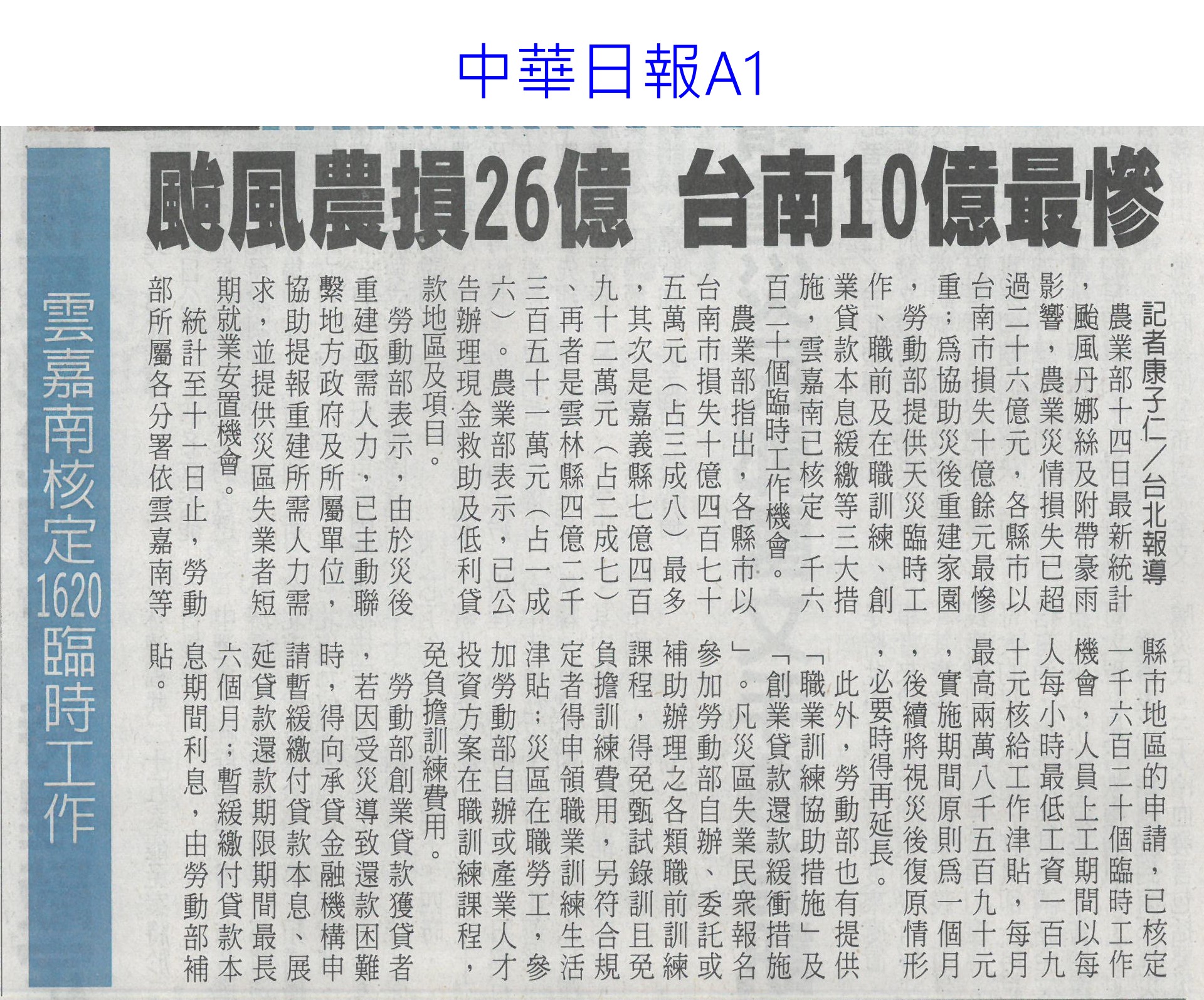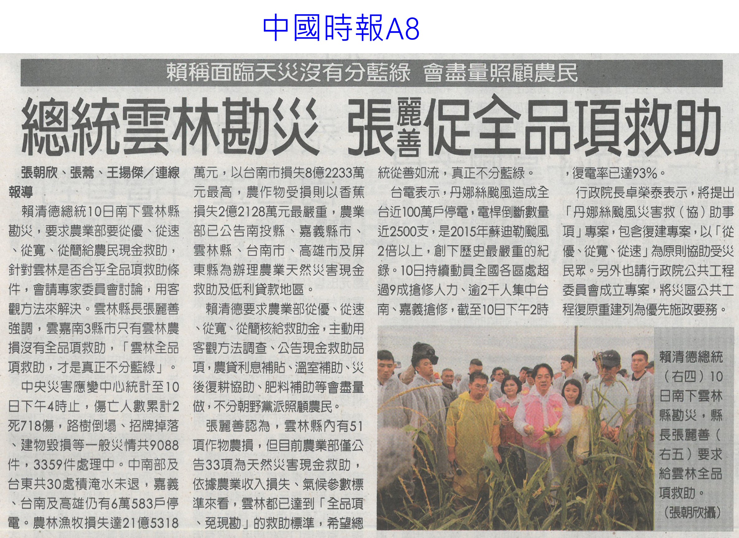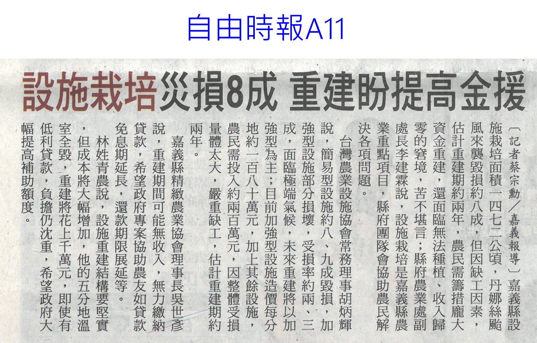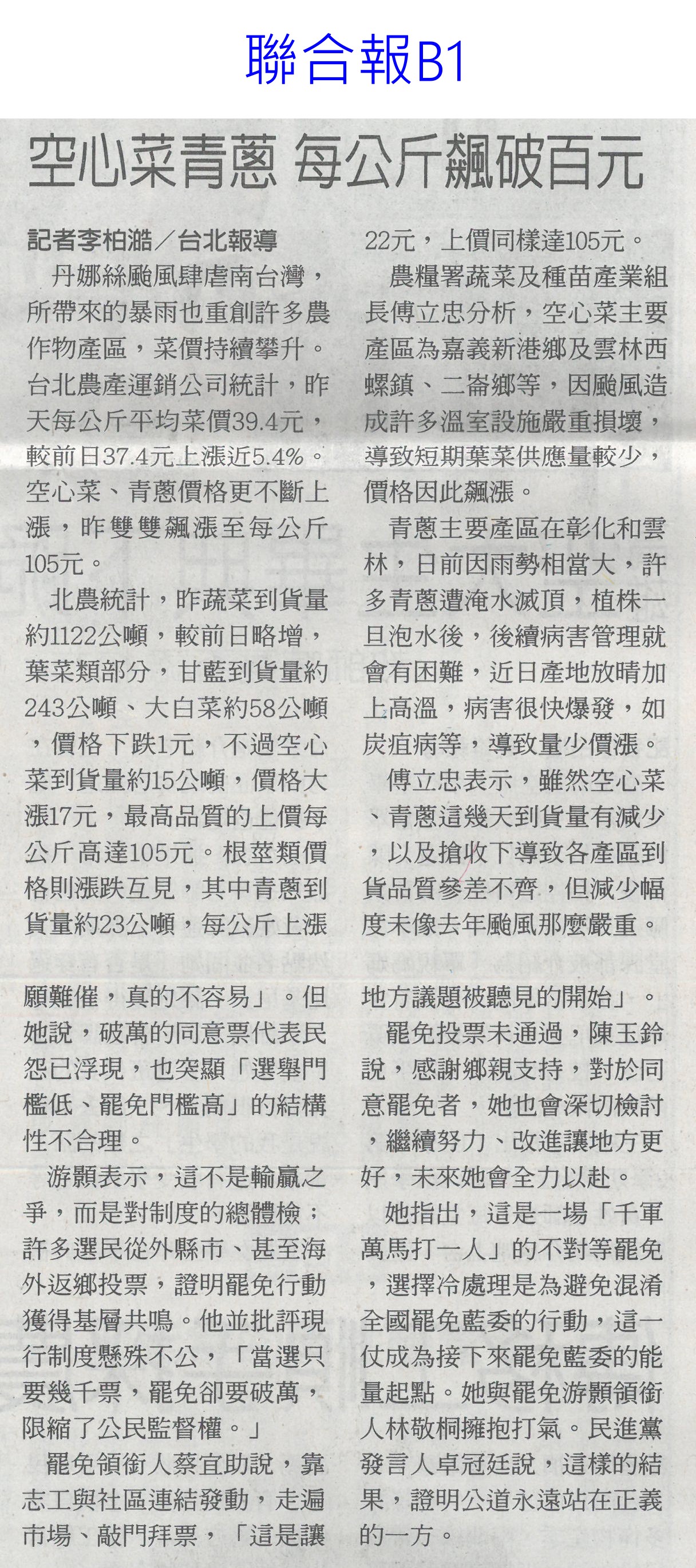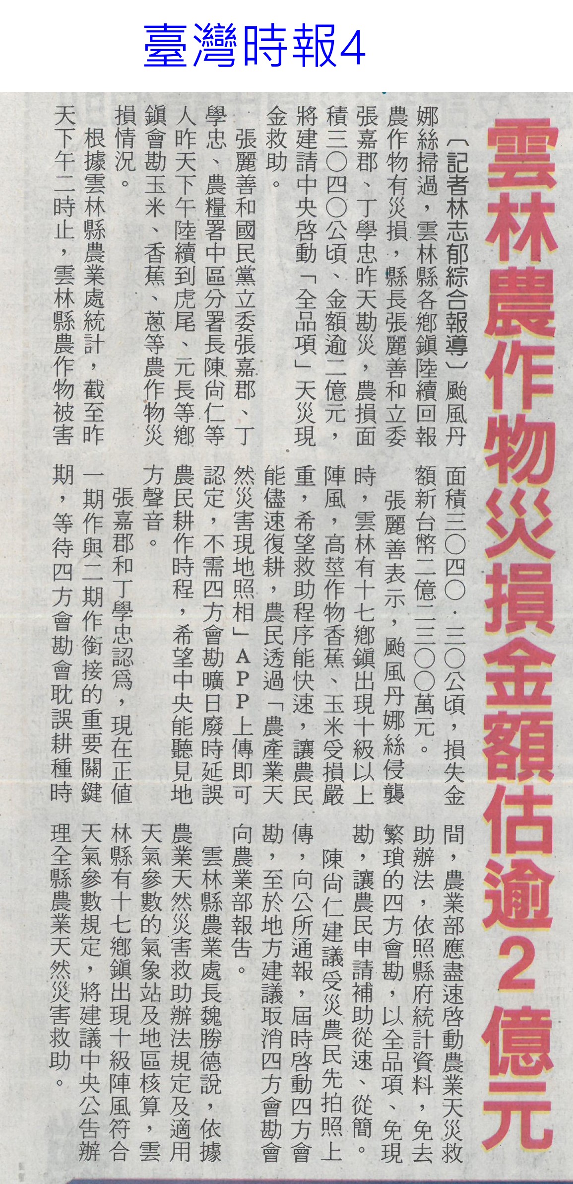 首頁番茄搶先報 番茄搶先報 排序 發布日期 更新日期 序號 發布日期 標題 321. 114/07/16 菜價漲7.2元 北農今陸續釋出50噸平價蔬菜 322. 114/07/16 搶便宜!丹娜絲致菜價漲7.2元 北農釋50噸平價蔬菜 323. 114/07/15 雲林農損逾3億 各公所爆申報救助人潮(中國時報A9) 324. 114/07/15 總統雲林勘災 張麗善促全品項救助(中國時報A8) 325. 114/07/15 雲林損失慘還跌價 菜農向總統陳情(中國時報A9) 326. 114/07/15 丹娜絲農損破25億 台南最慘(臺灣時報6) 327. 114/07/15 空心菜青蔥每公斤飆破百元(聯合報B1) 328. 114/07/15 設施栽培災損8成 重建盼提高金援(自由時報A11) 329. 114/07/15 颱風農損26億 台南10億最慘(中華日報A1) 330. 114/07/15 廢料再生!蕉莖纖維編假髮 番茄籽皮創新商機 331. 114/07/15 丹娜絲風災嘉義農損未復原 王育敏勘災盼提升農業韌性 332. 114/07/12 颱風後香菜產地「已全軍覆沒」 資深菜販曝:新莊市場1斤200 333. 114/07/12 香菜一斤「飆破200元」! 菜販嘆:產地全軍覆沒 334. 114/07/10 農糧署推冷凍蔬菜輕鬆購(中華日報B5) 335. 114/07/09 雲林農作物災損金額估逾2億元(臺灣時報4) 336. 114/07/09 台南文旦落果嚴重 嘉縣溫室毀9成(中國時報A8) 337. 114/07/09 丹娜絲襲台 農損逾14億文旦柚香蕉最慘重(臺灣時報9) 338. 114/07/09 總統台南勘災聽農漁民心聲(臺灣時報18) 339. 114/07/09 嘉義溫網室災損 中央擬提高救助金(自由時報A9) 340. 114/07/09 農損逾14億 總統勘災:從寬補助(自由時報A7) 第 17/175 頁,共 3493 筆上一頁到第123456789101112131415161718192021222324252627282930313233343536373839404142434445464748495051525354555657585960616263646566676869707172737475767778798081828384858687888990919293949596979899100101102103104105106107108109110111112113114115116117118119120121122123124125126127128129130131132133134135136137138139140141142143144145146147148149150151152153154155156157158159160161162163164165166167168169170171172173174175頁下一頁每頁103070筆資料