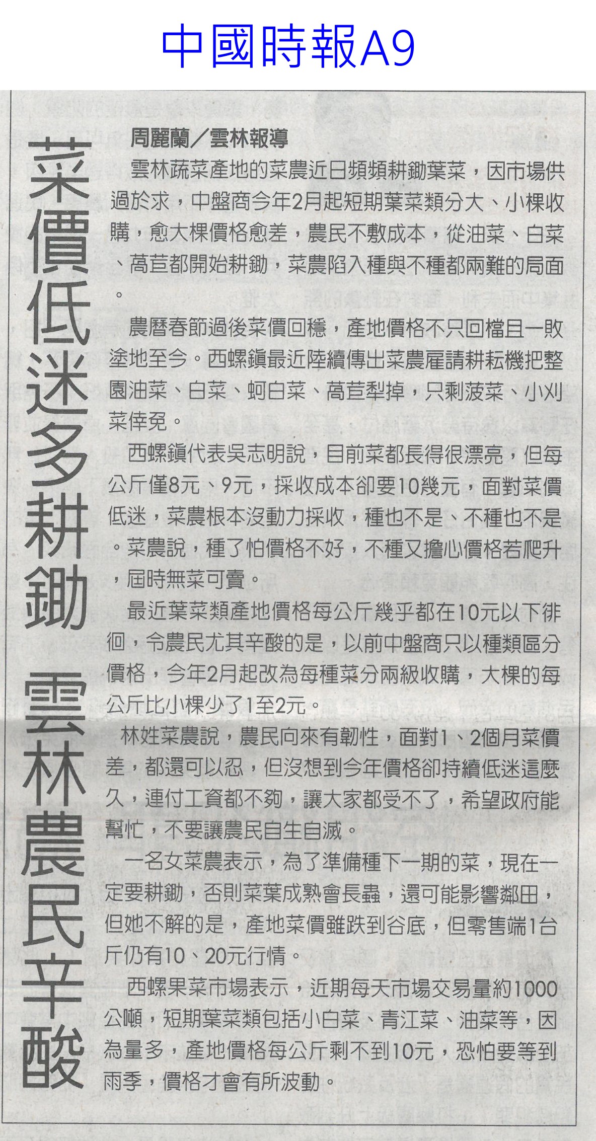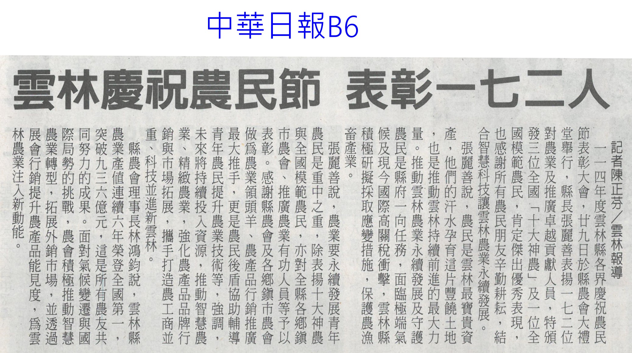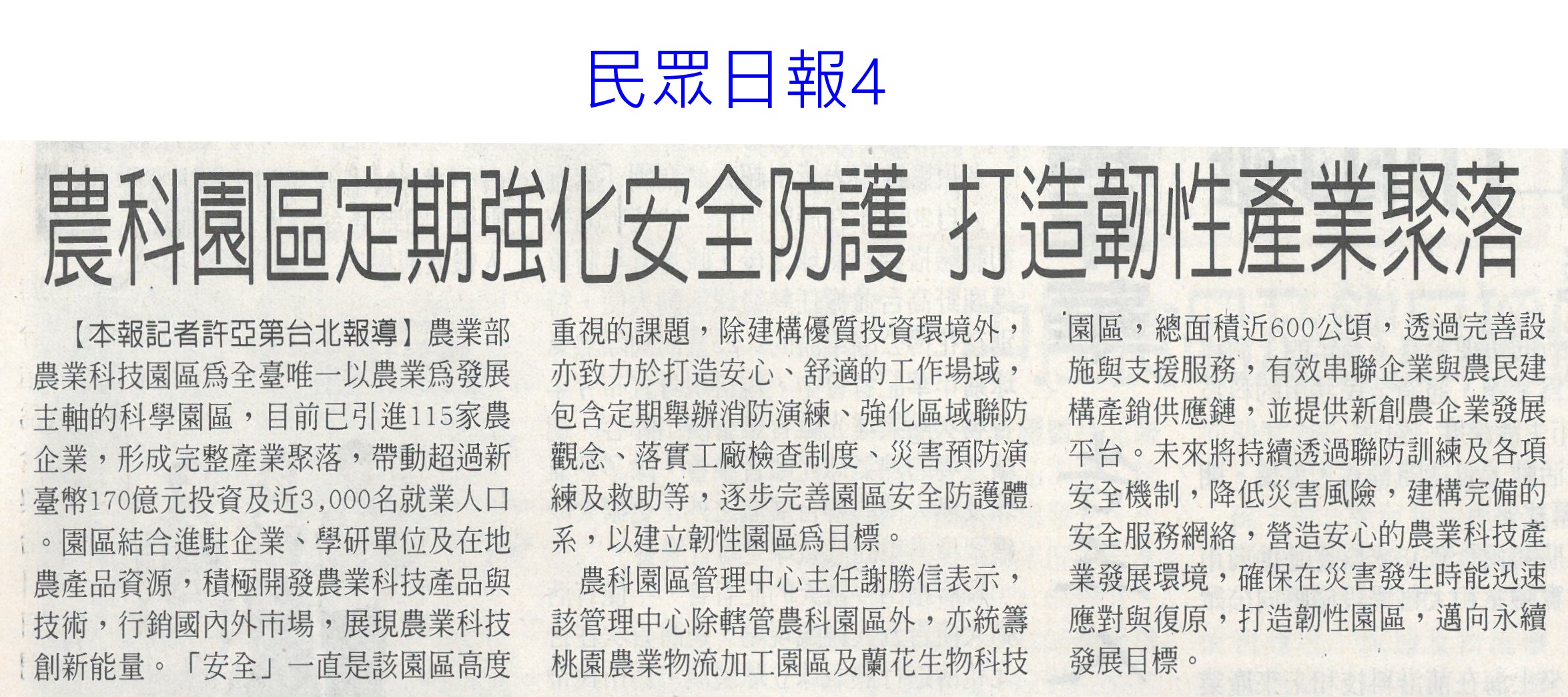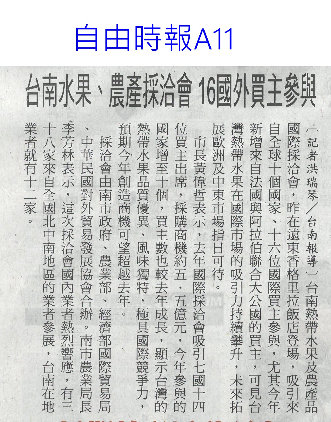 首頁番茄搶先報 番茄搶先報 排序 發布日期 更新日期 序號 發布日期 標題 401. 114/05/19 月桃故事館 打造食農基地(聯合報B2) 402. 114/05/19 營養師推「食五紅」 端午節養生不怕胖 403. 114/05/18 蔬果佔餐盤一半 健康有保障 404. 114/05/17 炎炎夏日吃清涼水果消暑 專業醫提醒「4水果」傷骨 405. 114/05/17 早餐不能沒水果! 研究:早餐吃「二高水果」助認知力、降壓力 406. 114/05/16 雲林慶祝農民節 表彰172人(中華日報B6) 407. 114/05/16 農科園區定期強化安全防護 打造韌性產業聚落(民眾日報4) 408. 114/05/16 耐熱 抗病 亞蔬蔬菜育種觀摩(自由時報A11) 409. 114/05/16 臺南水果進軍北台 上架開賣(中華日報B2) 410. 114/05/16 臺南水果農產國際採洽會 熱絡(台灣新生報6) 411. 114/05/16 台南水果 農產採洽會 16國外買主參與(自由時報A11) 412. 114/05/16 台南熱帶水果國際採洽會 登場(臺灣時報12) 413. 114/05/13 農保放寬 光電農地免一分地門檻(中國時報A5) 414. 114/05/13 雲林良品30大伴手禮票選開跑(中華日報B6) 415. 114/05/07 菜價低迷多耕鋤 農民辛酸(中國時A9) 416. 114/05/07 農改場發表番茄新品種 抗病穩產(中華日報B8) 417. 114/04/28 南科小農市集明登場 挺優質農產(中華日報B8) 418. 114/04/28 南科小農市集周六開張 力挺震災區農產(自由時報A12) 419. 114/04/28 農業部投入180億 補助擴至外銷農企(自由時報A9) 420. 114/04/28 國際農業機械展 成交金額上看10億(臺灣時報18) 第 21/176 頁,共 3503 筆上一頁到第123456789101112131415161718192021222324252627282930313233343536373839404142434445464748495051525354555657585960616263646566676869707172737475767778798081828384858687888990919293949596979899100101102103104105106107108109110111112113114115116117118119120121122123124125126127128129130131132133134135136137138139140141142143144145146147148149150151152153154155156157158159160161162163164165166167168169170171172173174175176頁下一頁每頁103070筆資料