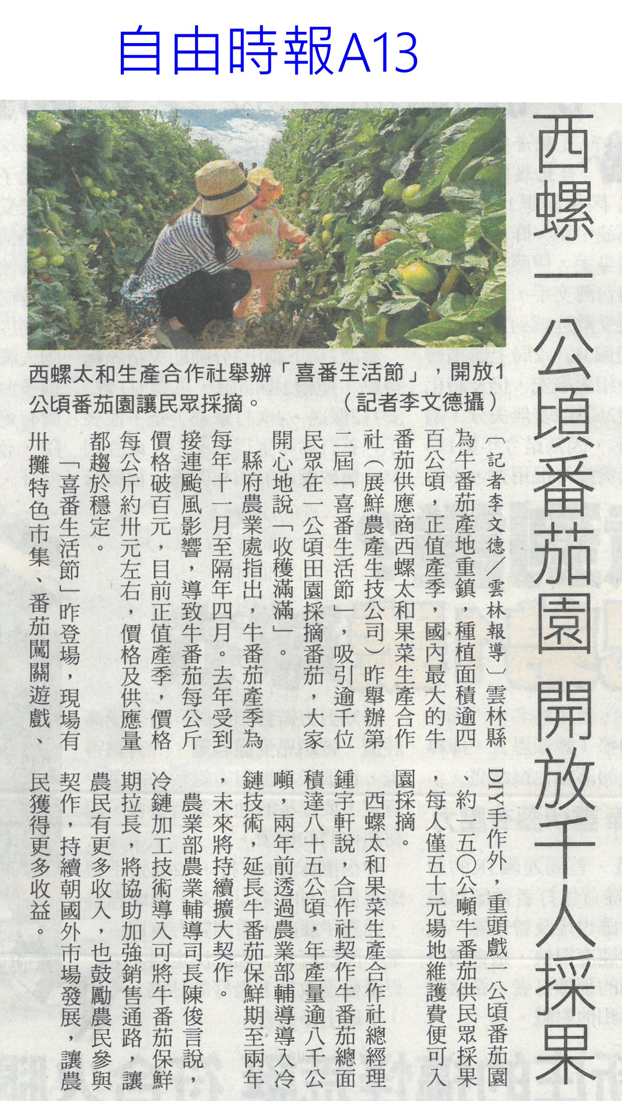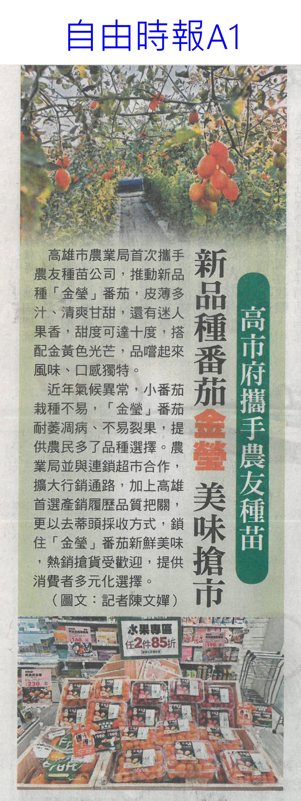 首頁番茄搶先報 番茄搶先報 排序 發布日期 更新日期 序號 發布日期 標題 501. 114/03/03 農村水保署推農村好物 進軍統超i預購(民眾日報4) 502. 114/03/03 高麗菜每斤15元大俗賣 婆媽撿便宜(臺灣時報14) 503. 114/03/03 卓揆:積極推動有機農業發展(民眾日報2) 504. 114/03/03 多種番茄嫁接台南1號(中華日報B1) 505. 114/03/03 雲林農村再生 中央今年再補助逾1.2億(自由時報A10) 506. 114/03/03 智慧科技助陣 桃雲嘉農業升級(中國時報A8) 507. 114/03/03 西螺1公頃番茄園 開放千人採果(自由時報A13) 508. 114/03/02 雲林"喜番生活節" 吸引上千人開心採摘牛番茄 509. 114/03/02 體驗農產!「喜番生活節」登場 雲林展鮮農產生技打造農村樂趣 510. 114/03/01 它是冬季蔬果維生素C之王!維生素C排行榜快收 511. 114/02/25 韓商團考察 黃偉哲推銷農產(中華日報B8) 512. 114/02/21 去年颱風多雨催升蔬果批發價格 信義鄉農會運銷件數及價格皆創新高 513. 114/02/20 農會改選注新血 多名青農上榜(中華日報B8) 514. 114/02/20 行銷台南陳亭妃變大廚 《妃姐上菜》推廣在地食材 515. 114/02/19 流感高峰期!營養師授5大飲食秘訣 助感染者迅速痊癒 516. 114/02/19 婆媽瘋搶!花蓮場培育「1水果」超甜又扎實 全聯、大潤發超市上架秒空 517. 114/02/18 農產品檢測中心動土 強化品質安全(民眾日報14) 518. 114/02/18 降低稻作面積 農糧署輔導轉作雜糧(中華日報B8) 519. 114/02/18 台南後壁農地清淤 中央補助一億(中國時報A9) 520. 114/02/18 新品種番茄金瑩 美味搶市(自由時報A1) 第 26/176 頁,共 3506 筆上一頁到第123456789101112131415161718192021222324252627282930313233343536373839404142434445464748495051525354555657585960616263646566676869707172737475767778798081828384858687888990919293949596979899100101102103104105106107108109110111112113114115116117118119120121122123124125126127128129130131132133134135136137138139140141142143144145146147148149150151152153154155156157158159160161162163164165166167168169170171172173174175176頁下一頁每頁103070筆資料