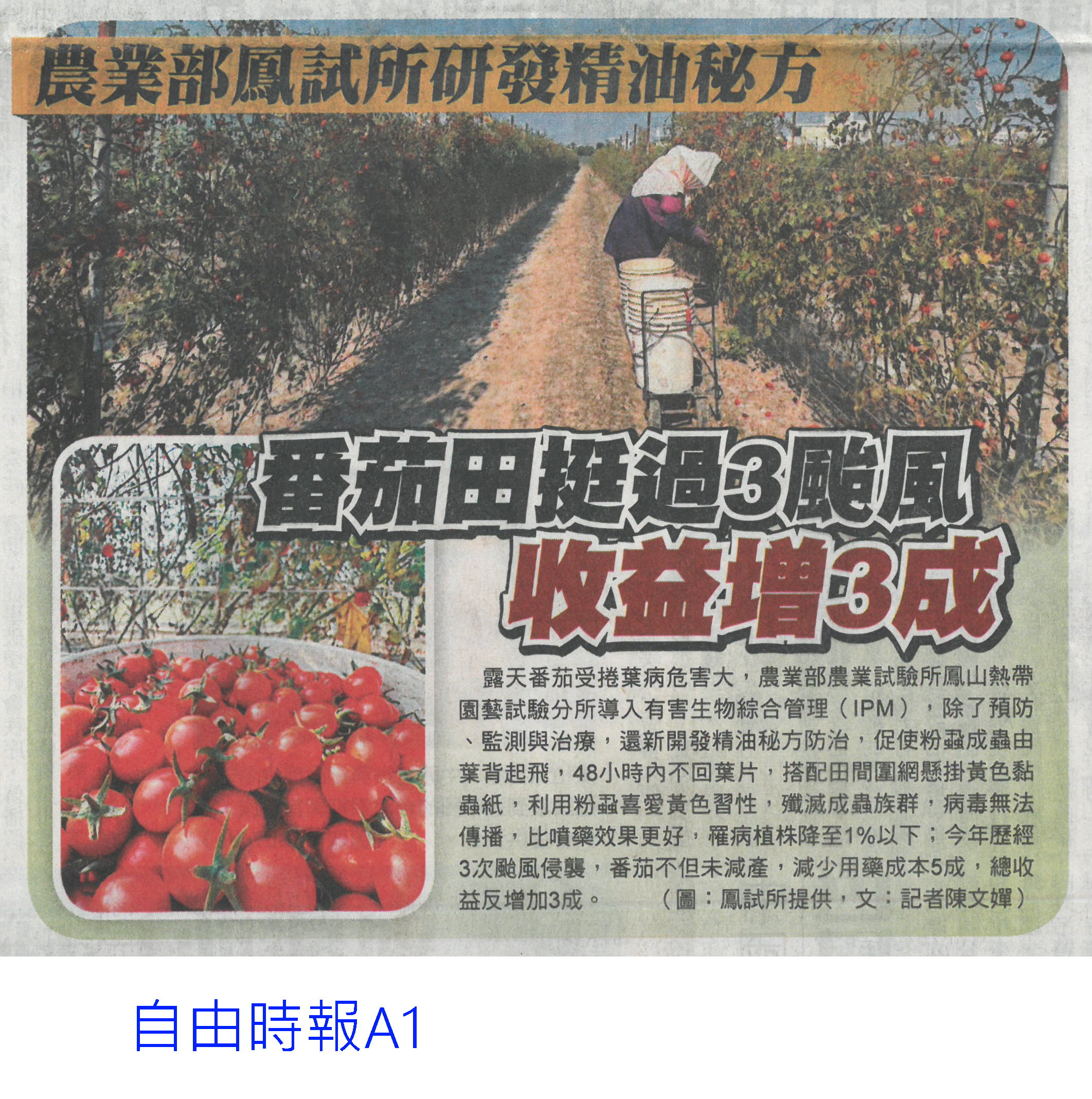首頁番茄搶先報 番茄搶先報 排序 發布日期 更新日期 序號 發布日期 標題 601. 113/12/24 冬瓜每斤飆40元天價!菜販驚:30年來最貴 5款蔬菜漲最兇 602. 113/12/22 菜價降3成!葉菜每斤20元起「瓜果類仍偏高」 農糧署:年節供應無虞 603. 113/12/22 菜價降3成!葉菜每斤20元起 農糧署:價格回穩年節供應無虞 604. 113/12/20 黃偉哲送上台南甜 韓國新人氣天團EVNNE大呼台南太幸福 605. 113/12/18 冬季蔬菜量產 價格見平穩(中華日報A4) 606. 113/12/18 農糧署:蔬菜價格逐漸平穩(台灣時報14) 607. 113/12/18 了解碳權 有助農業轉型升級(中華日報B3) 608. 113/12/18 新品種 茄砧台南一號抗青枯病(中華日報B1) 609. 113/12/18 農糧署打造有機農業專區 提供全方位服務(民眾日報4) 610. 113/12/18 太康有機專區冷鏈 新鮮送達(中華日報B8) 611. 113/12/18 雜糧 蔬菜與茶 可農機代耕(中華日報A4) 612. 113/12/12 入冬菜價貴森森 婆媽哀號(臺灣時報13) 613. 113/12/12 科技保險助力農業科技創新(工商時報A8) 614. 113/12/11 支持青農返鄉 市有耕地公告放租(中華日報B1) 615. 113/12/11 番茄田挺過3颱風 收益增3成(自由時報A1) 616. 113/12/11 雲縣府/雲科大 推一驗多証制度(台灣新生報6) 617. 113/12/11 雲科大一驗多証 造福農漁牧(中國時報A9) 618. 113/12/11 菠菜量少價飆入冬最貴菜王(臺灣時報13) 619. 113/12/11 蔬菜大漲5成 農業部將釋倉儲高麗菜穩價(自由時報A9) 620. 113/12/11 菜價飆至去年2倍 月底回穩(中華日報A4) 第 31/176 頁,共 3511 筆上一頁到第123456789101112131415161718192021222324252627282930313233343536373839404142434445464748495051525354555657585960616263646566676869707172737475767778798081828384858687888990919293949596979899100101102103104105106107108109110111112113114115116117118119120121122123124125126127128129130131132133134135136137138139140141142143144145146147148149150151152153154155156157158159160161162163164165166167168169170171172173174175176頁下一頁每頁103070筆資料