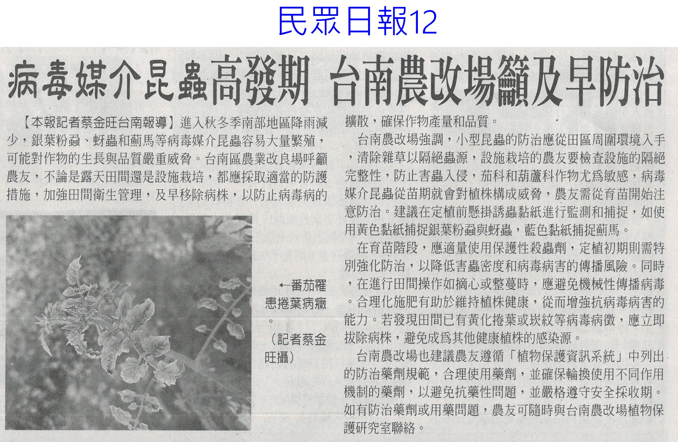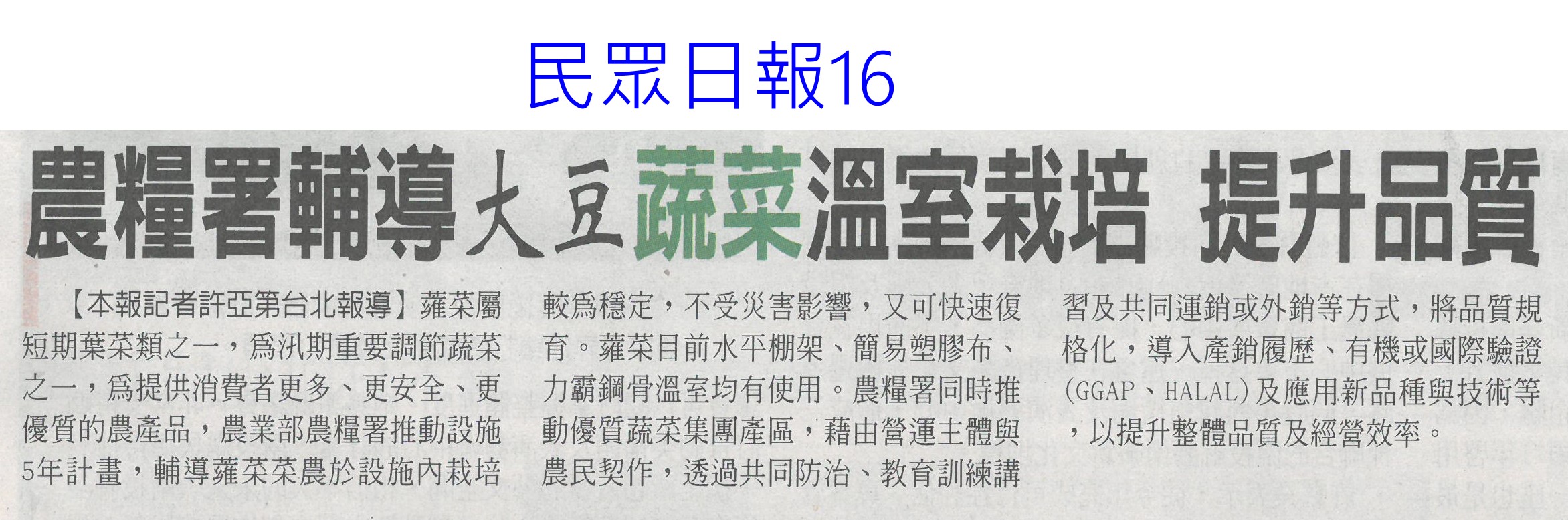 首頁番茄搶先報 番茄搶先報 排序 發布日期 更新日期 序號 發布日期 標題 641. 113/11/19 要洗更乾淨...農藥殘留容許量修訂「最高多3倍」 642. 113/11/18 雲林農物館 農會閒置穀倉變身(中國時報A9) 643. 113/11/18 噴藥農損照採收 恐成食安地雷(聯合報A5) 644. 113/11/18 老化又缺工 農村擁抱AI趨勢(聯合報A5) 645. 113/11/18 最高3倍!農藥殘留容許量標準放寬 食藥署這樣說 646. 113/11/18 洋香瓜紅蔥頭災損會勘確認達標 陳亭妃要求農業部公告現金救助 647. 113/11/16 陳亭妃會勘蕎麥、黑豆颱風災損 要求農業部儘速核定現金救助 648. 113/11/15 雲林良品開創新通路 星國新台灣館上架(台灣新生報6) 649. 113/11/15 首座農業資源零廢棄循環場 啓用(民眾日報3) 650. 113/11/14 農糧署輔導 大豆蔬菜溫室栽培提升品質(民眾日報16) 651. 113/11/14 南市農村再生成果發表會 登場(民眾日報12) 652. 113/11/14 雲林良品 上架星國新台灣館(臺灣時報18) 653. 113/11/07 病毒媒介昆蟲高發期 台南農改場籲及早防治(民眾日報12) 654. 113/11/07 刁蟲小計展開幕 瞭解農業實況(臺灣時報18) 655. 113/11/07 憂農退儲金破產 提繳率僅3成(中國時報A5) 656. 113/11/07 十大神農出爐 嘉縣陳鴻碩獲獎(臺灣時報18) 657. 113/11/07 鹽水農會番茄軟Q糖 味蕾上驚喜旅程(民眾日報16) 658. 113/11/07 鹽水農會番茄軟Q糖 酸甜上市(中華日報B8) 659. 113/11/06 農糧署:下周起菜價將回穩(臺灣時報2) 660. 113/11/06 農糧署:葉菜類穩定供應(台灣新生報6) 第 33/176 頁,共 3511 筆上一頁到第123456789101112131415161718192021222324252627282930313233343536373839404142434445464748495051525354555657585960616263646566676869707172737475767778798081828384858687888990919293949596979899100101102103104105106107108109110111112113114115116117118119120121122123124125126127128129130131132133134135136137138139140141142143144145146147148149150151152153154155156157158159160161162163164165166167168169170171172173174175176頁下一頁每頁103070筆資料