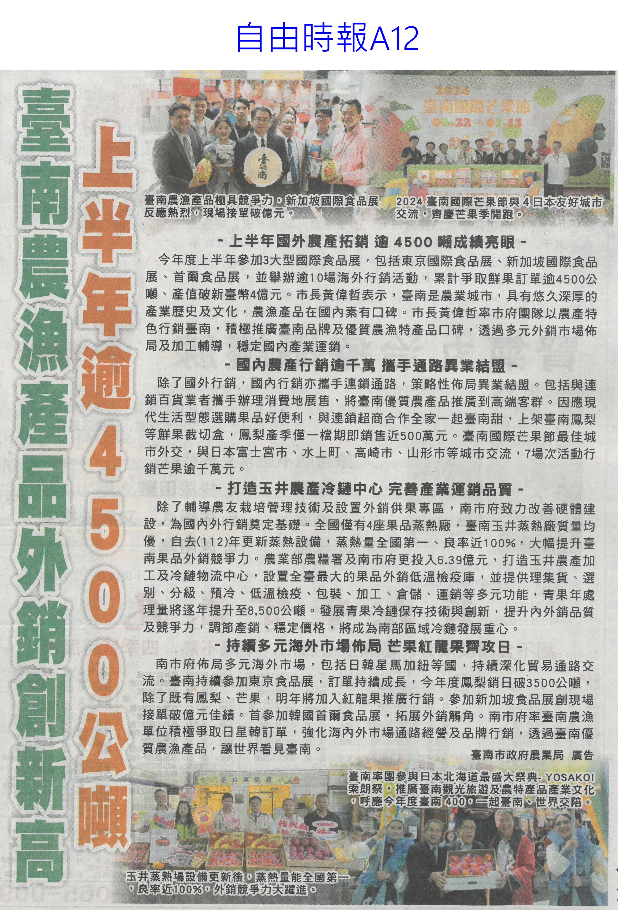 首頁番茄搶先報 番茄搶先報 排序 發布日期 更新日期 序號 發布日期 標題 761. 113/09/19 陸25日起停止我34項農產免關稅(中華日報A2) 762. 113/09/19 農業部:(國土法)99%農會反對(中國時報A3) 763. 113/09/19 大陸25日起 取消台34項農產免關稅(中國時報A1) 764. 113/09/18 台南好禮評選 60家特色伴手禮名單揭曉(台灣新生報6) 765. 113/09/18 農業移工名額多八千 將增至2萬(中華日報A4) 766. 113/09/16 豬、菜雙漲 10月中才有望降價 767. 113/09/14 地中海型烤肉拼盤 美味又健康 768. 113/09/12 從農跌破50萬人 農業部推代耕團(自由時報A6) 769. 113/09/12 月圓人不圓!營養師傳授「地中海型烤肉拼盤」 色香味俱全又營養 770. 113/09/10 嘉大有機農產品加工班 五年有成(民眾日報12) 771. 113/09/10 台南農漁產品外銷創新高 上半年4500公噸(自由時報A12) 772. 113/09/10 桃改場研發電動移植機 農友種菜免彎腰(自由時報A10) 773. 113/09/09 雲林醜蔬果 環台宣導食農(中華日報B6) 774. 113/09/09 3章1Q農產品 假日農市展售(中華日報B2) 775. 113/09/09 秋節烤食 縣府籲買環保澆灌作物(中國時報A9) 776. 113/09/09 日本熊本縣八代市中村博生市長拜會黃偉哲 首次到訪台南盼開啟交流 777. 113/09/06 嘉大開辦有機農產品加工實務班(台灣新生報6) 778. 113/09/06 台南農產品前進香港果蔬展(中華日報B8) 779. 113/09/06 冷鏈加工 屏東好物保鮮一整年(民眾日報10) 780. 113/09/06 行銷台灣優質農產品 陳駿季訪日韓(民眾日報4) 第 39/176 頁,共 3511 筆上一頁到第123456789101112131415161718192021222324252627282930313233343536373839404142434445464748495051525354555657585960616263646566676869707172737475767778798081828384858687888990919293949596979899100101102103104105106107108109110111112113114115116117118119120121122123124125126127128129130131132133134135136137138139140141142143144145146147148149150151152153154155156157158159160161162163164165166167168169170171172173174175176頁下一頁每頁103070筆資料