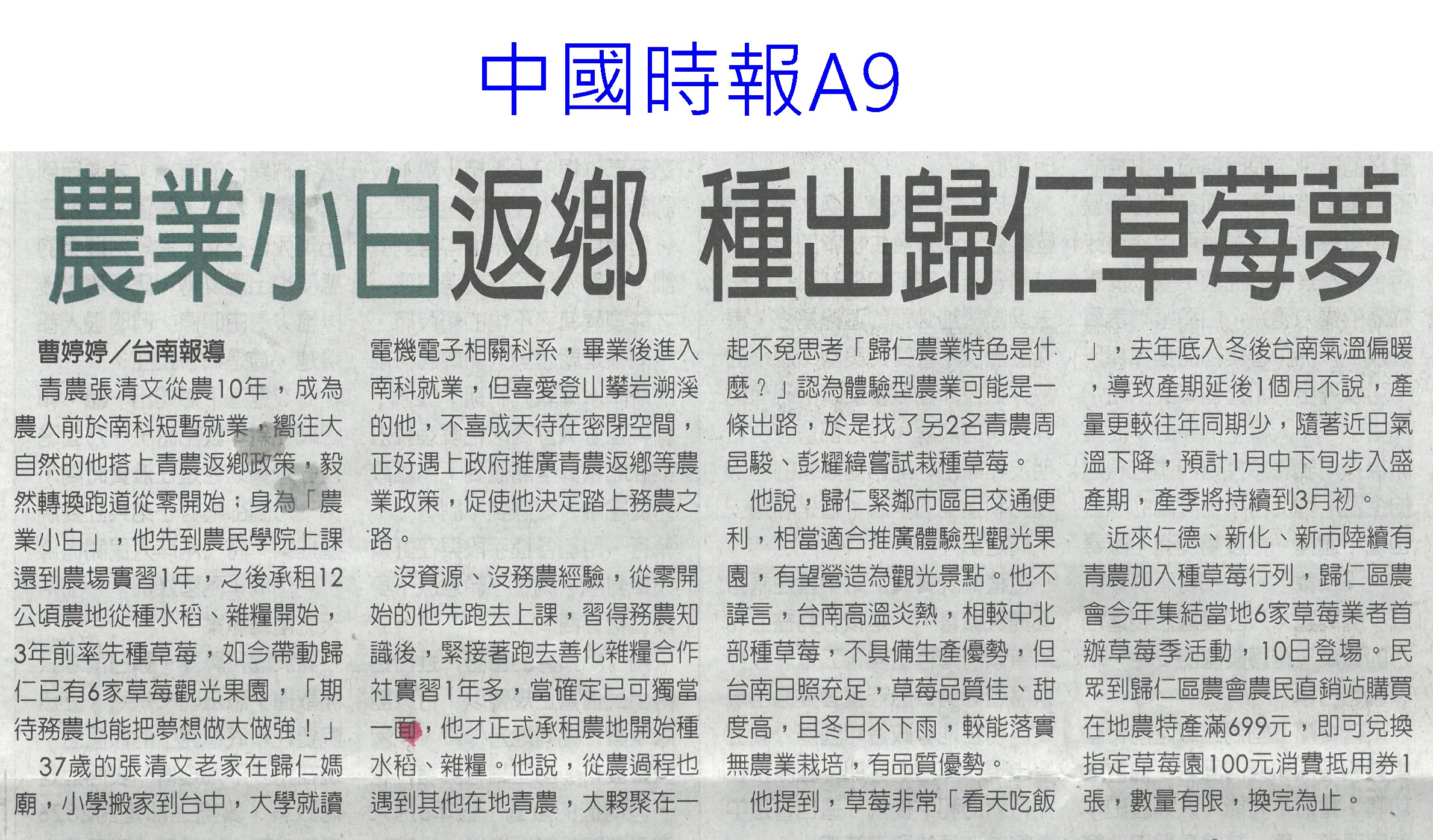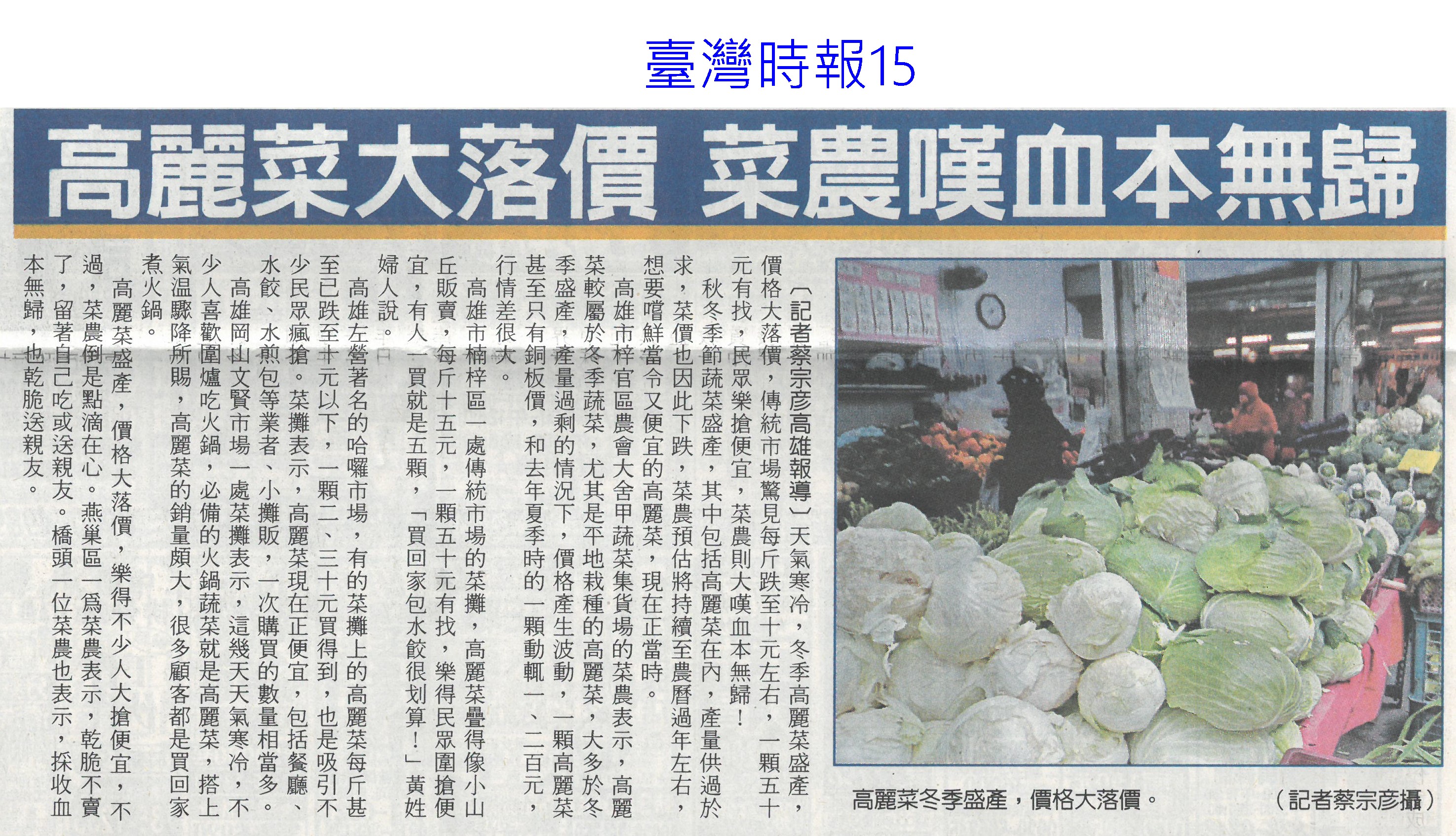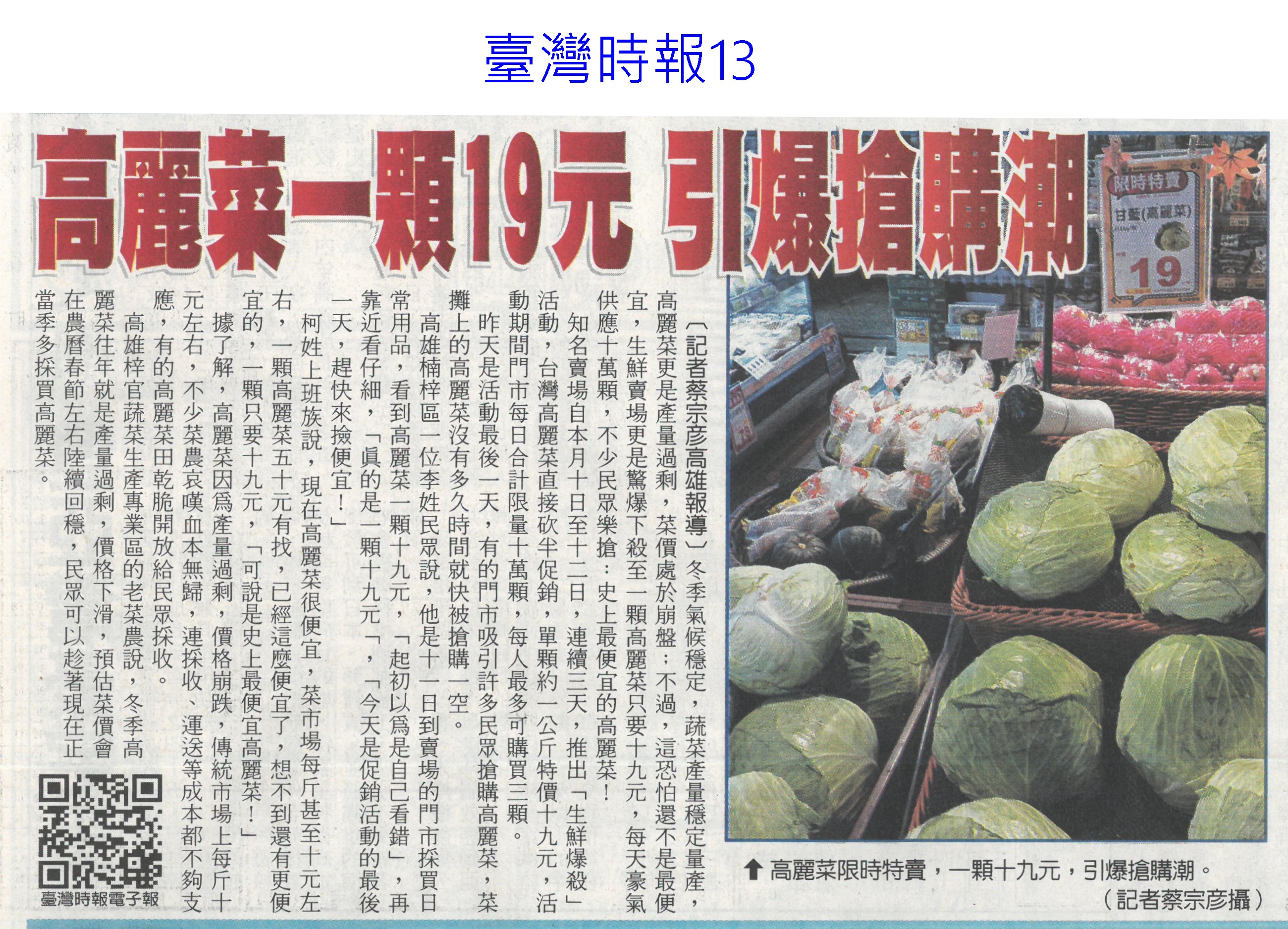 首頁番茄搶先報 番茄搶先報 排序 發布日期 更新日期 序號 發布日期 標題 121. 115/01/21 嘉義優鮮迎燈會 搶攻年節商機(中國時報A9) 122. 115/01/21 台南官田社子農村社區土地重劃…地主過半同意 將送內政部審核 123. 115/01/21 品嘗正當時 台南鹽水番茄線上訂購限量送果乾 124. 115/01/20 嘉義優鮮攜手台灣燈會 推出12款限定伴手禮 125. 115/01/17 台南農產年節展售新北登場 黃偉哲熱情行銷 126. 115/01/15 「這5種水果」其實是蔬菜? 專家曝分類真相顛覆認知 127. 115/01/14 晚熟更甜!彰化小果番茄評鑑結果 秀水鄉橫掃冠亞軍 128. 115/01/13 高麗菜一顆19元 引爆搶購潮(臺灣時報13) 129. 115/01/13 臺南農改場育成臺南2號胡麻新品種(民眾日報16) 130. 115/01/13 春節伴手禮!高樹農會嚴選多規格蜜棗禮盒 天冷口感更脆甜 131. 115/01/12 迎新送禮掀地方創生風 國發會推124項年節好物 132. 115/01/11 嘉縣重寮國小食農教育延伸花燈競賽 番哥、茄妹問世 133. 115/01/09 歸仁草莓季 六果園採果趣(中華日報B1) 134. 115/01/09 農業小白返鄉 種出歸仁草莓夢(中國時報A9) 135. 115/01/09 菜價暴漲暴跌 朝野立委齊聲罵(聯合報A6) 136. 115/01/09 高麗菜大落價 菜農嘆血本無歸(臺灣時報15) 137. 115/01/09 番路農會翻轉柿餅產業 百家農會取經(民眾日報16) 138. 115/01/09 今年力推農作種植登記 操縱交易最重罰3000萬(中國時報A8) 139. 115/01/09 冷氣團來襲 市長籲農漁民防寒害(中華日報B3) 140. 115/01/09 立院考察團至冷鏈中心現勘進度(中華日報B2) 第 7/175 頁,共 3489 筆上一頁到第123456789101112131415161718192021222324252627282930313233343536373839404142434445464748495051525354555657585960616263646566676869707172737475767778798081828384858687888990919293949596979899100101102103104105106107108109110111112113114115116117118119120121122123124125126127128129130131132133134135136137138139140141142143144145146147148149150151152153154155156157158159160161162163164165166167168169170171172173174175頁下一頁每頁103070筆資料