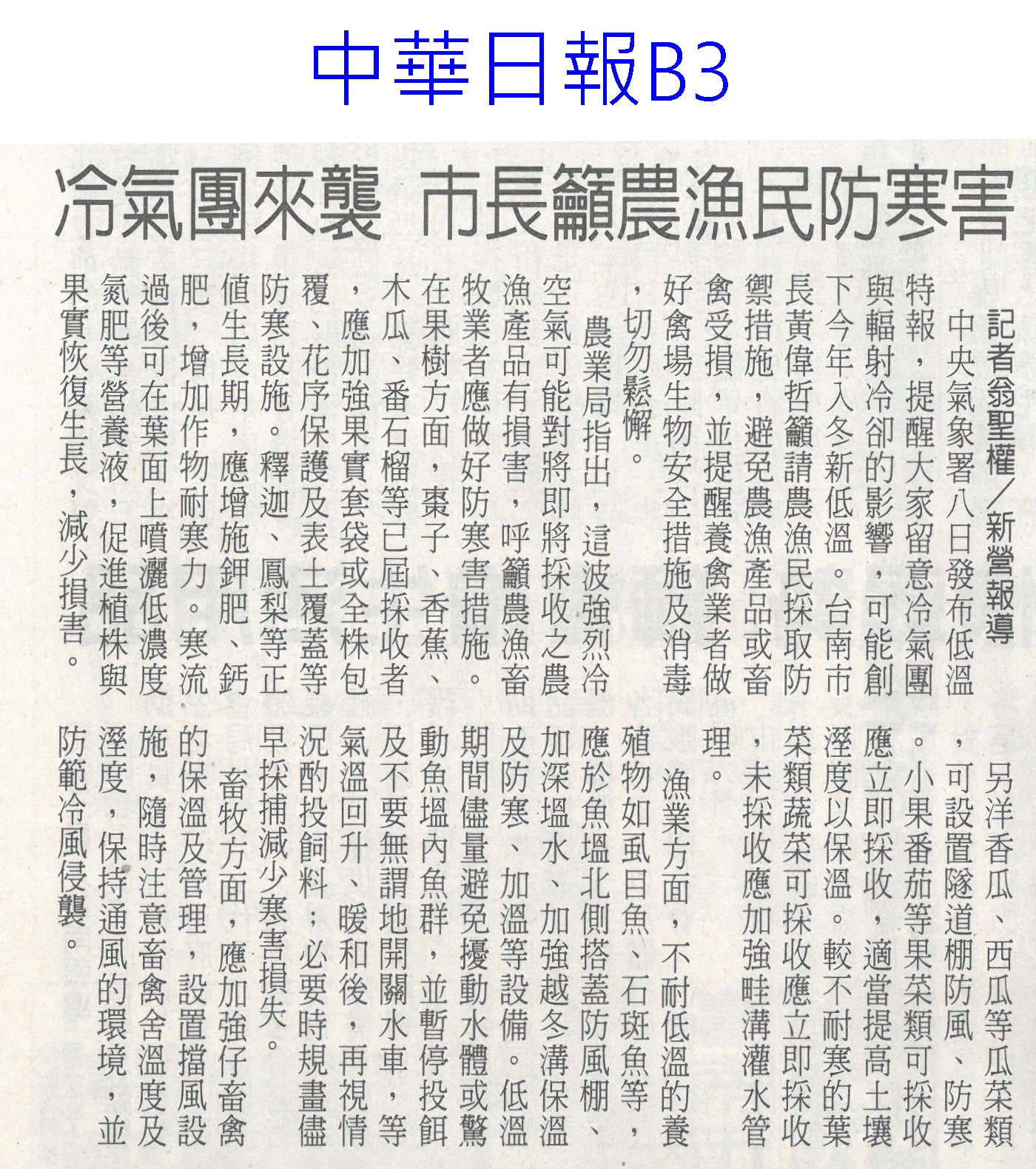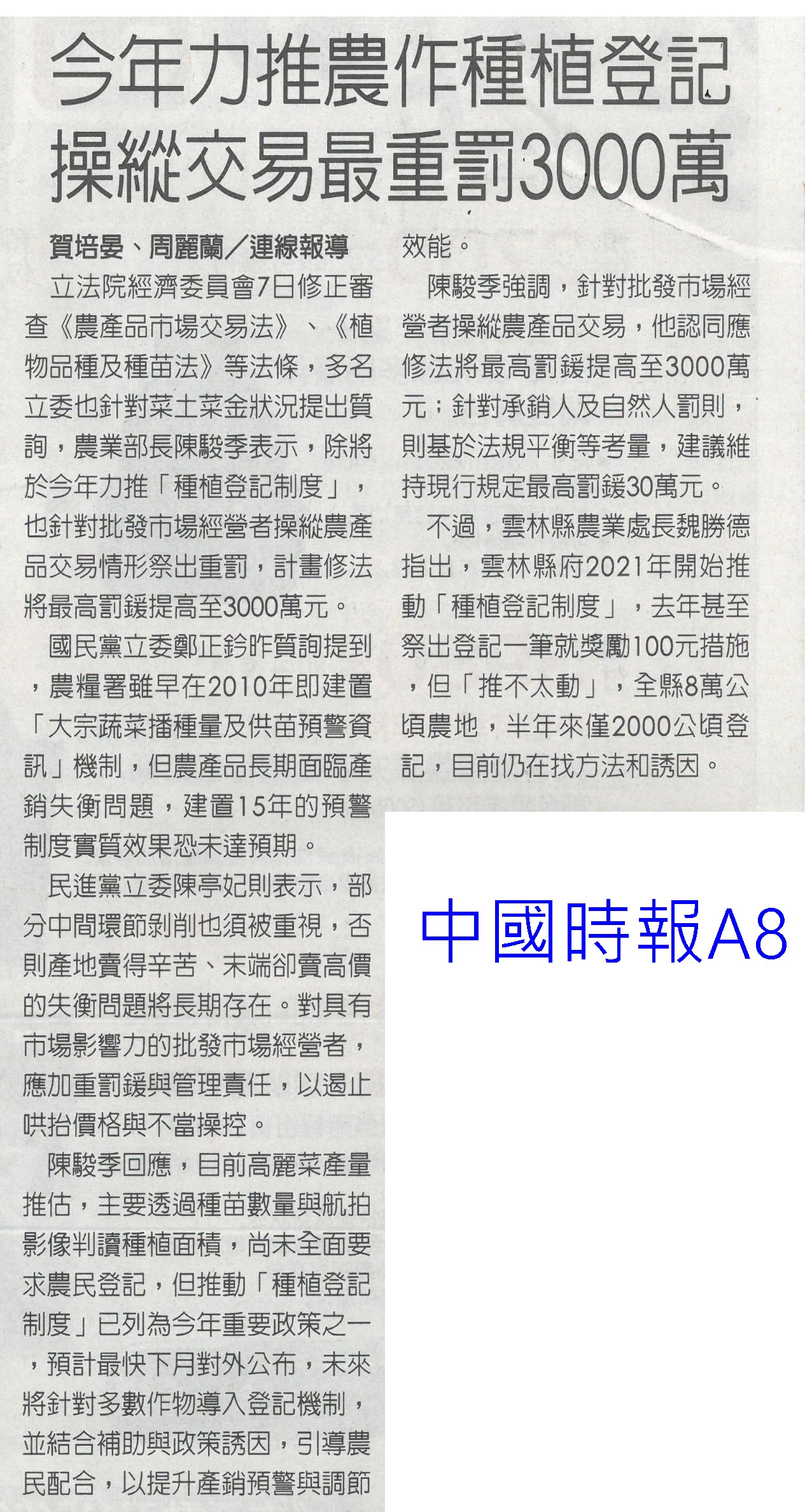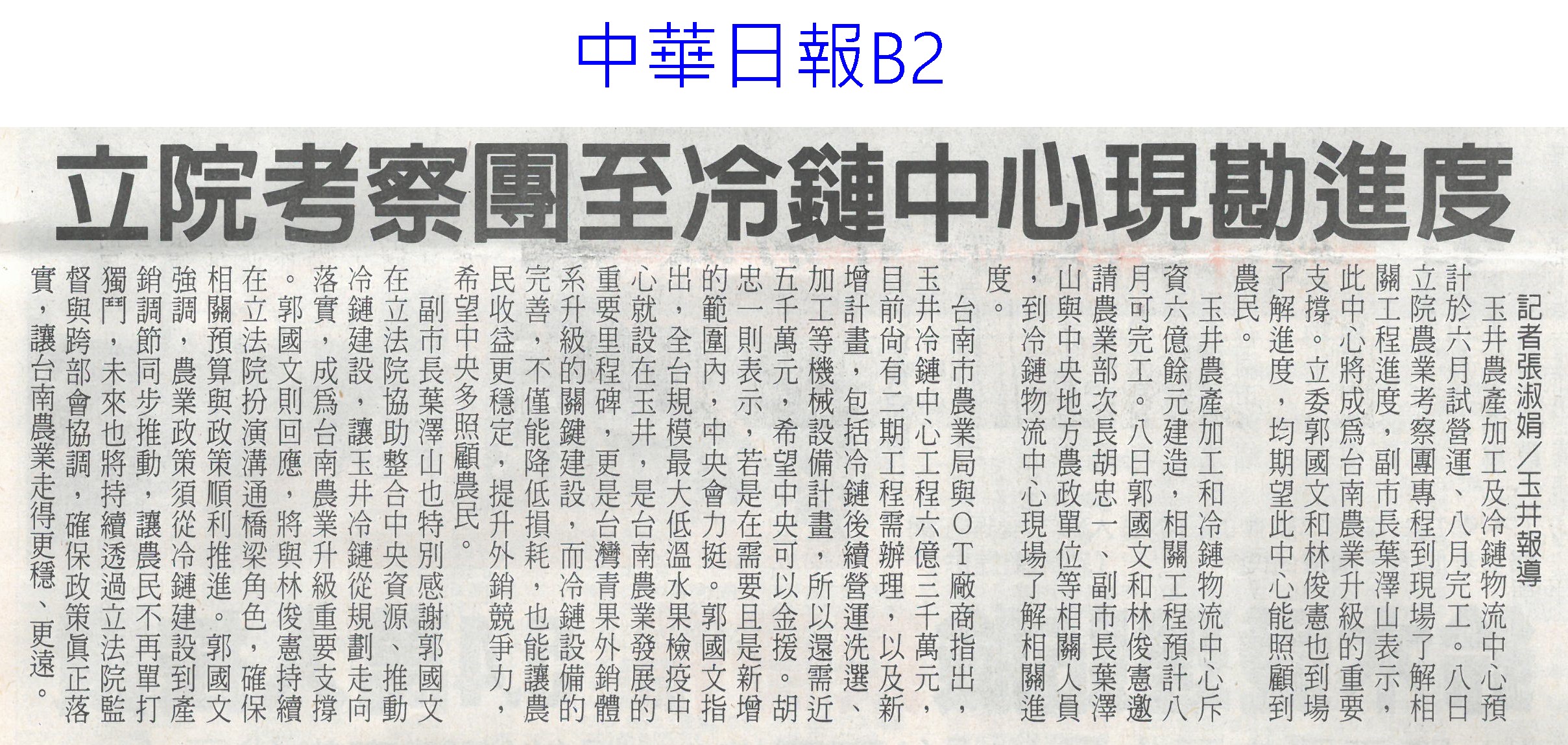 首頁番茄搶先報 番茄搶先報 排序 發布日期 更新日期 序號 發布日期 標題 121. 115/01/21 嘉義優鮮迎燈會 搶攻年節商機(中國時報A9) 122. 115/01/21 台南官田社子農村社區土地重劃…地主過半同意 將送內政部審核 123. 115/01/21 品嘗正當時 台南鹽水番茄線上訂購限量送果乾 124. 115/01/20 嘉義優鮮攜手台灣燈會 推出12款限定伴手禮 125. 115/01/17 台南農產年節展售新北登場 黃偉哲熱情行銷 126. 115/01/15 「這5種水果」其實是蔬菜? 專家曝分類真相顛覆認知 127. 115/01/14 晚熟更甜!彰化小果番茄評鑑結果 秀水鄉橫掃冠亞軍 128. 115/01/13 高麗菜一顆19元 引爆搶購潮(臺灣時報13) 129. 115/01/13 臺南農改場育成臺南2號胡麻新品種(民眾日報16) 130. 115/01/13 春節伴手禮!高樹農會嚴選多規格蜜棗禮盒 天冷口感更脆甜 131. 115/01/12 迎新送禮掀地方創生風 國發會推124項年節好物 132. 115/01/11 嘉縣重寮國小食農教育延伸花燈競賽 番哥、茄妹問世 133. 115/01/09 歸仁草莓季 六果園採果趣(中華日報B1) 134. 115/01/09 農業小白返鄉 種出歸仁草莓夢(中國時報A9) 135. 115/01/09 菜價暴漲暴跌 朝野立委齊聲罵(聯合報A6) 136. 115/01/09 高麗菜大落價 菜農嘆血本無歸(臺灣時報15) 137. 115/01/09 番路農會翻轉柿餅產業 百家農會取經(民眾日報16) 138. 115/01/09 今年力推農作種植登記 操縱交易最重罰3000萬(中國時報A8) 139. 115/01/09 冷氣團來襲 市長籲農漁民防寒害(中華日報B3) 140. 115/01/09 立院考察團至冷鏈中心現勘進度(中華日報B2) 第 7/175 頁,共 3489 筆上一頁到第123456789101112131415161718192021222324252627282930313233343536373839404142434445464748495051525354555657585960616263646566676869707172737475767778798081828384858687888990919293949596979899100101102103104105106107108109110111112113114115116117118119120121122123124125126127128129130131132133134135136137138139140141142143144145146147148149150151152153154155156157158159160161162163164165166167168169170171172173174175頁下一頁每頁103070筆資料