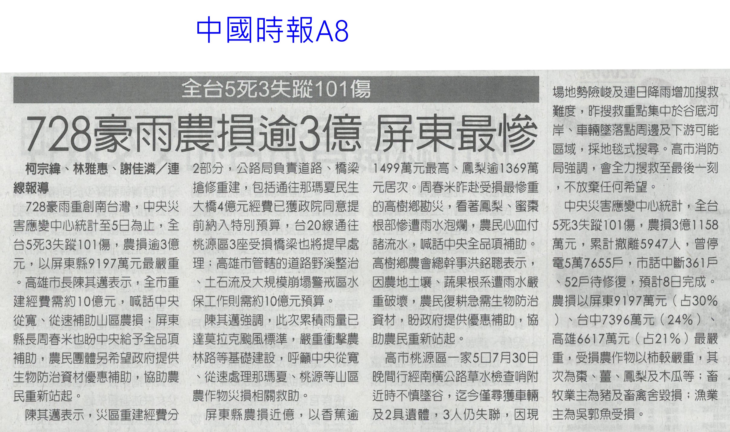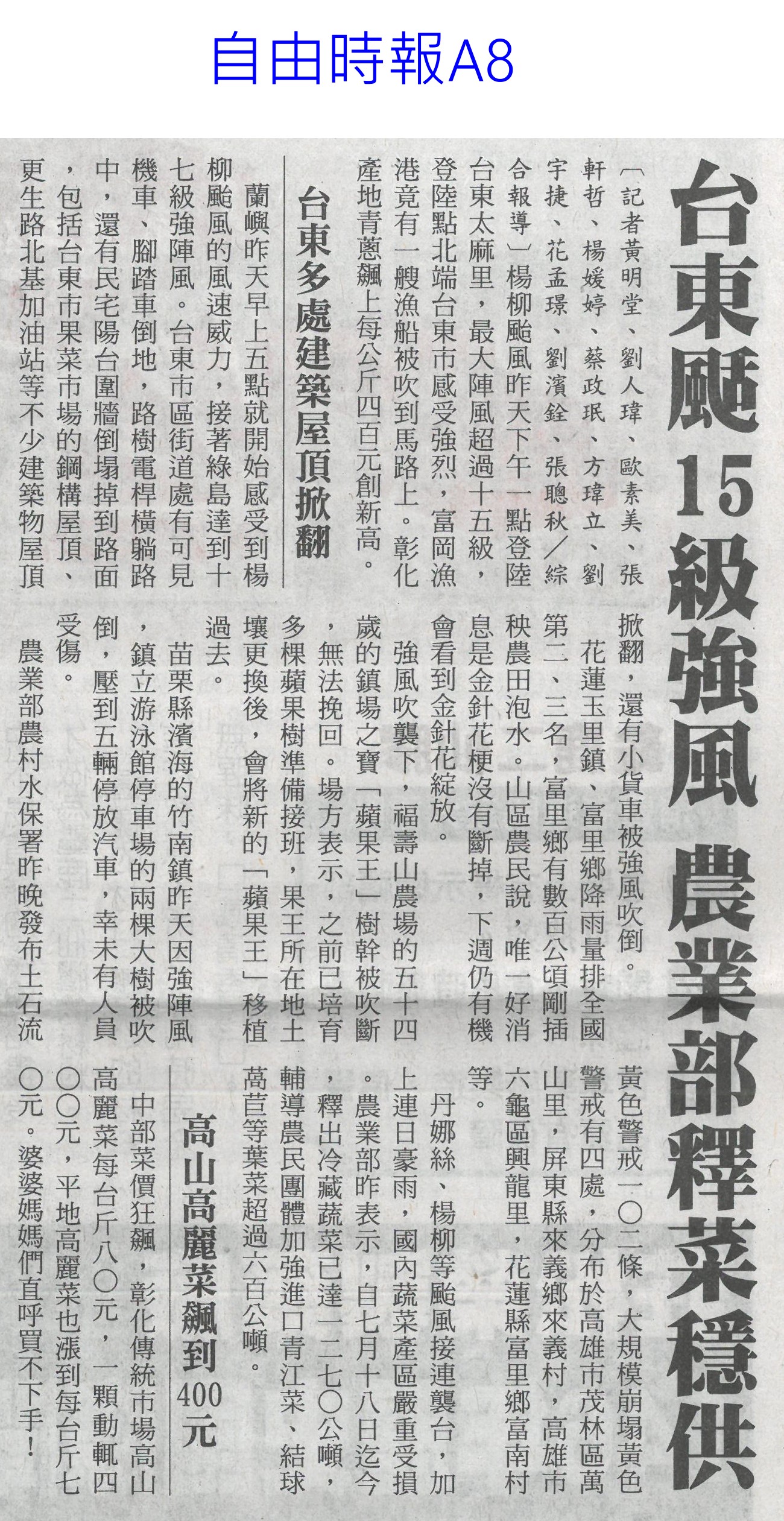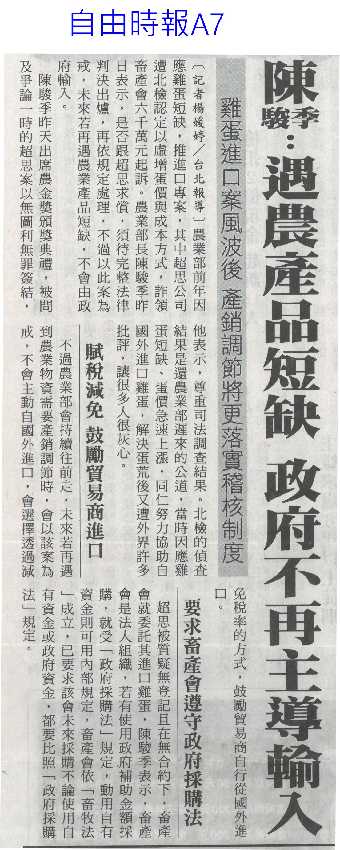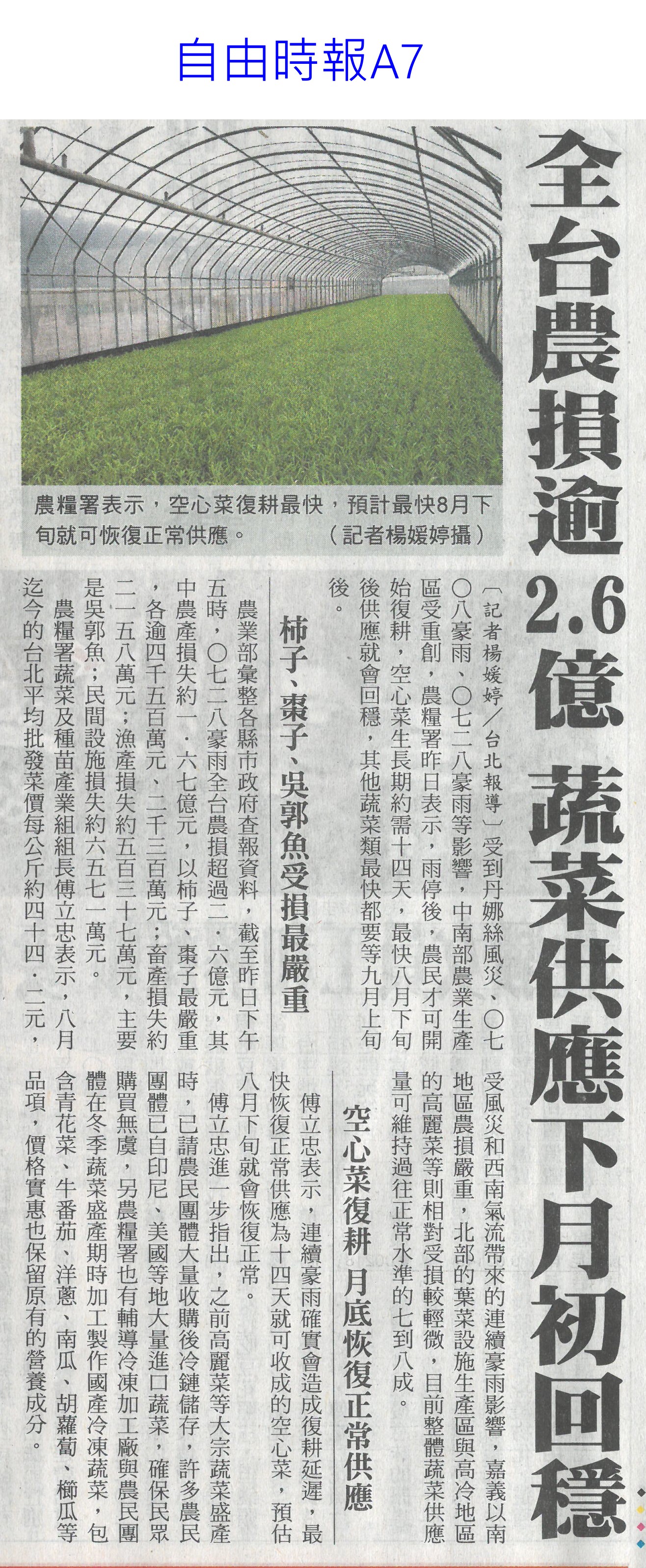 首頁萵苣觀新聞 萵苣觀新聞 排序 發布日期 更新日期 序號 發布日期 標題 201. 114/09/03 東京食品展效益破4.2 創新高(中華日報B8) 202. 114/09/02 台南農產攻韓 締造2億商機(台灣新生報6) 203. 114/09/01 陳駿季:遇農產品短缺 政府不再主導輸入(自由時報A7) 204. 114/09/01 民視全民農LINE秀 推廣雲林好物(民眾日報8) 205. 114/08/26 農改場推農業資材再利用效益佳(中華日報B8) 206. 114/08/21 菜價漲翻天 高麗菜一顆三 四百元(臺灣時報13) 207. 114/08/21 葉菜供應回穩 批發價降到5字頭(自由時報A9) 208. 114/08/21 農業育成中心成果發表 彰顯創育軟實力(民眾日報16) 209. 114/08/21 天災救助規定僵化 陳駿季允檢討(中華日報B2) 210. 114/08/14 菜價漲翻天逼近歷史新高(臺灣時報17) 211. 114/08/14 台東颳15級強風 農業部釋菜穩供(自由時報A8) 212. 114/08/14 颱風豪雨連襲 農糧署加強蔬菜調度(民眾日報8) 213. 114/08/14 農業部調釋冷藏 進口蔬菜(中華日報A1) 214. 114/08/14 颱風攪局菜價續飆(中國時報A8) 215. 114/08/14 農業部釋出冷藏蔬菜加強進口(臺灣時報3) 216. 114/08/13 楊柳颱風菜價見漲 農業部視市場供需調節釋出冷藏蔬菜、強化進口 217. 114/08/07 728豪雨農損逾3億 屏東最慘(中國時報A8) 218. 114/08/07 葉菜雨後軟腳價飆 估下旬回穩(中國時報A8) 219. 114/08/05 一小把菜30元 荷包縮水很有感(臺灣時報13) 220. 114/08/05 全台農損逾2.6億 蔬菜供應下月初回穩(自由時報A7) 第 11/141 頁,共 2807 筆上一頁到第123456789101112131415161718192021222324252627282930313233343536373839404142434445464748495051525354555657585960616263646566676869707172737475767778798081828384858687888990919293949596979899100101102103104105106107108109110111112113114115116117118119120121122123124125126127128129130131132133134135136137138139140141頁下一頁每頁103070筆資料
