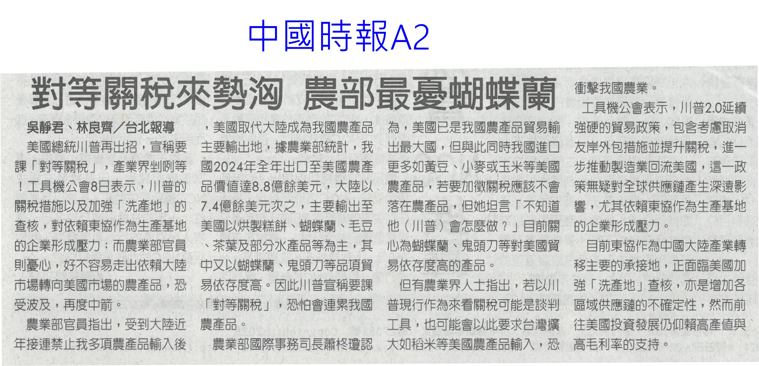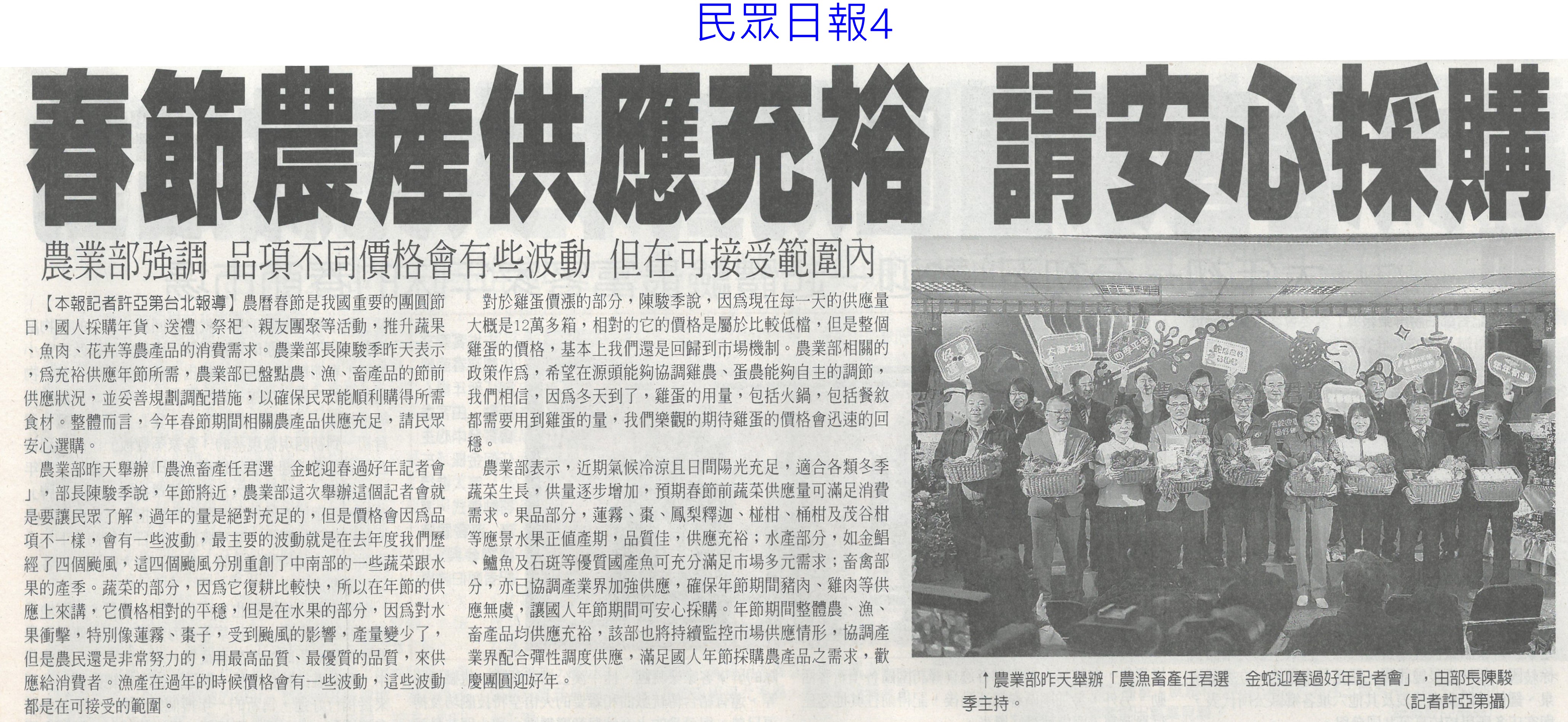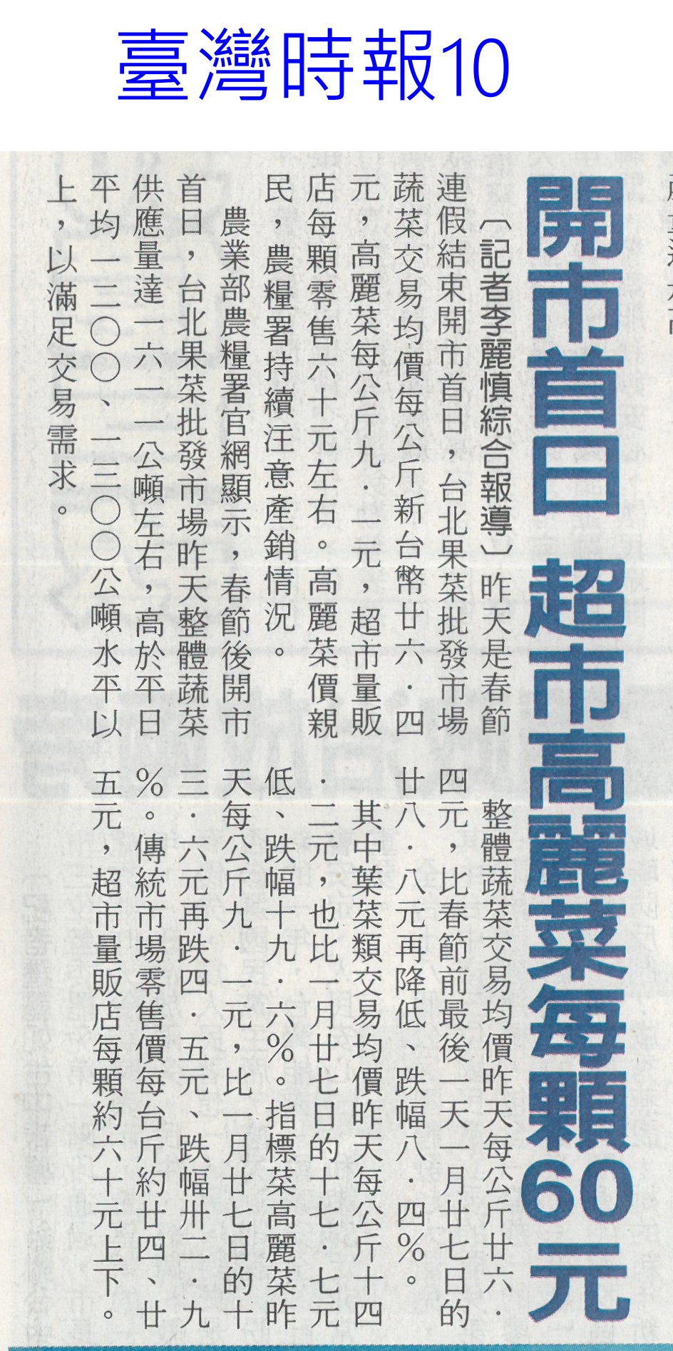 首頁萵苣觀新聞 萵苣觀新聞 排序 發布日期 更新日期 序號 發布日期 標題 381. 114/02/18 農業經營準備金 今起開放申請(民眾日報14) 382. 114/02/11 雲縣智慧農業補助開跑(台灣新生報6) 383. 114/02/11 雲林推智慧農業 最高補助百萬(中國時報A9) 384. 114/02/10 產量充足 葉菜1袋僅10元(中華日報A4) 385. 114/02/10 農業部長勘楠西南化災損(中華日報B2) 386. 114/02/10 蔬菜大宗高麗菜交易量減 整體蔬菜批發價回升(中華日報A4) 387. 114/02/10 農友休耕轉作申報 8日截止(中華日報B4) 388. 114/02/10 青農創新 卓蘭智慧溫網啓用(民眾日報4) 389. 114/02/10 對等關稅來勢洶 農部最憂蝴蝶蘭(中國時報A2) 390. 114/02/10 高麗菜1箱20公斤150元(自由時報A1) 391. 114/02/05 冷氣團來襲 農改場籲農友防寒害(中華日報B8) 392. 114/02/04 結合六感六味 引導食農教育(台灣新生報4) 393. 114/02/04 開市首日 超市高麗菜每顆60元(臺灣時報10) 394. 114/02/04 東京食品展 我參展規模遽減(自由時報A9) 395. 114/01/23 好運農總來 農業易遊網全新改版(民眾日報16) 396. 114/01/23 命脈錢被刪農業部:影響運作(臺灣時報4) 397. 114/01/23 高麗菜大落價 每斤18元創入冬新低(臺灣時報15) 398. 114/01/23 雲林菜價跌落地板 婆媽歡喜菜農嘆(中國時報A9) 399. 114/01/21 農業部:請國會共同守護臺灣農業(民眾日報2) 400. 114/01/20 春節農產供應充裕 請安心採購(民眾日報4) 第 20/141 頁,共 2813 筆上一頁到第123456789101112131415161718192021222324252627282930313233343536373839404142434445464748495051525354555657585960616263646566676869707172737475767778798081828384858687888990919293949596979899100101102103104105106107108109110111112113114115116117118119120121122123124125126127128129130131132133134135136137138139140141頁下一頁每頁103070筆資料