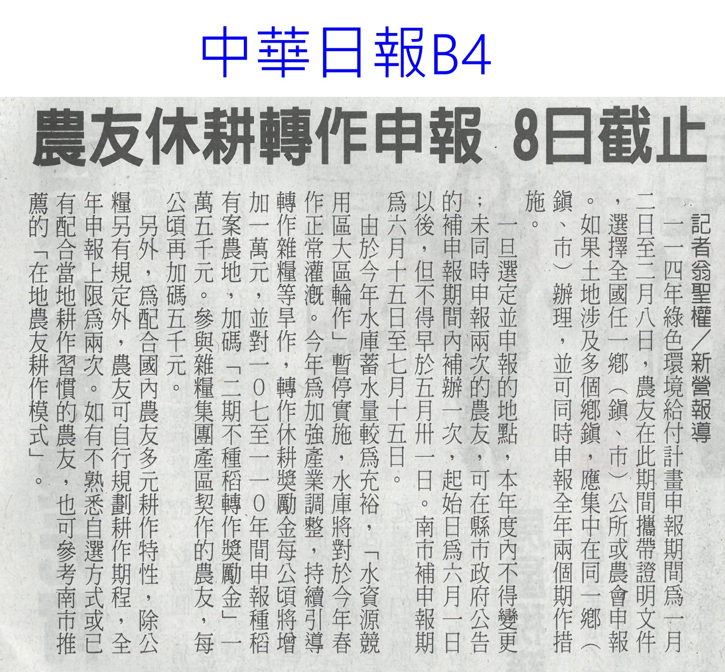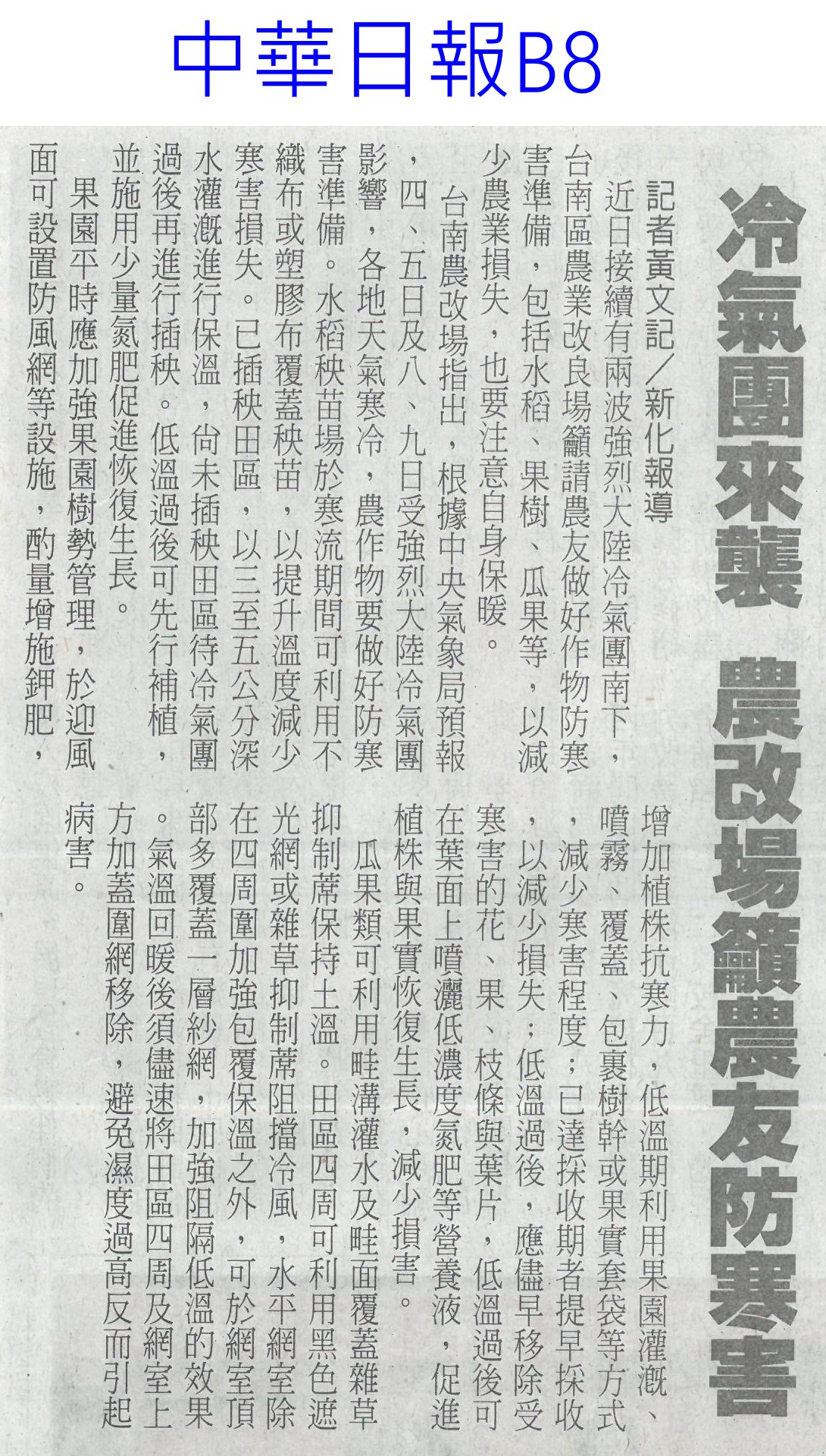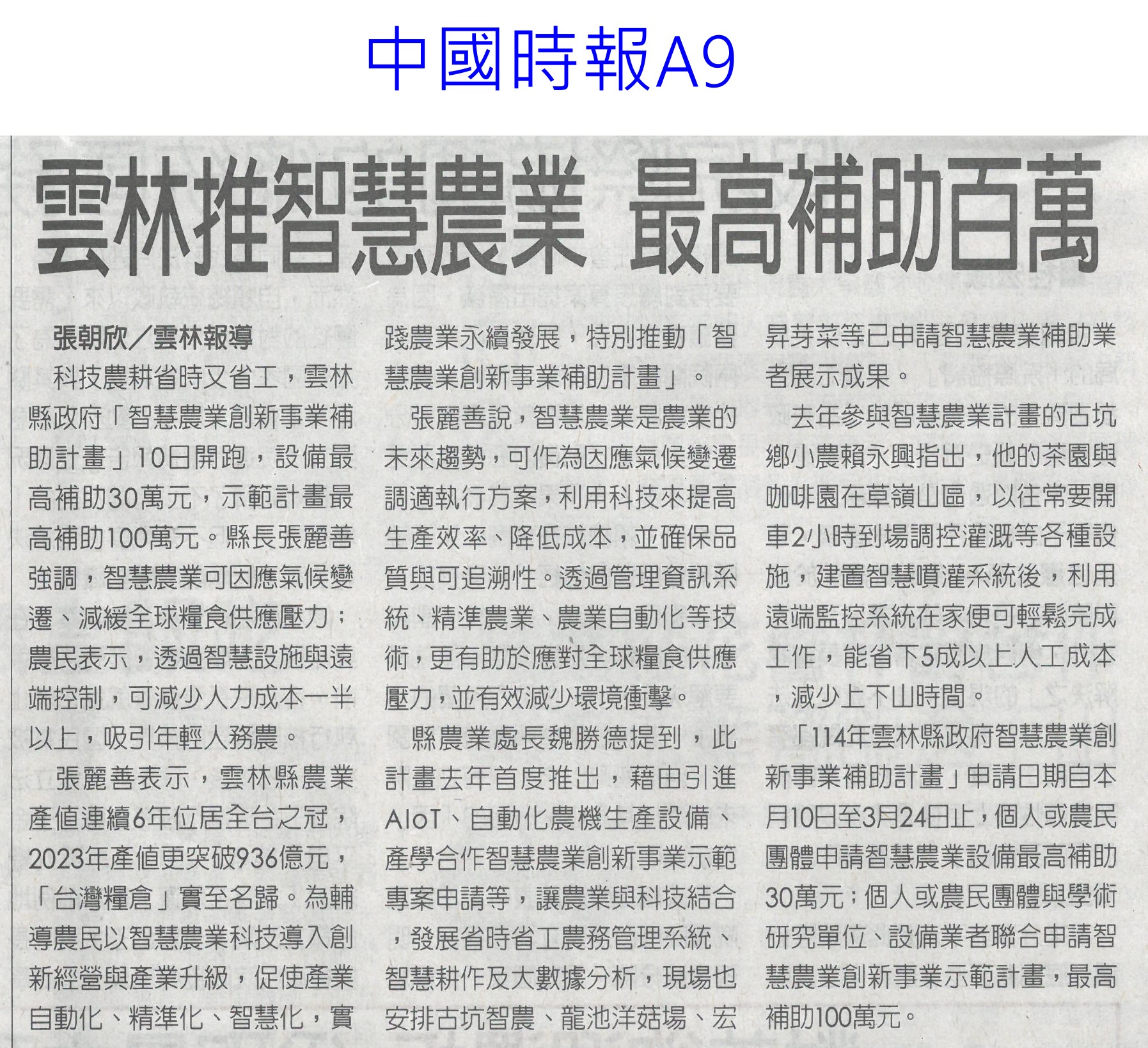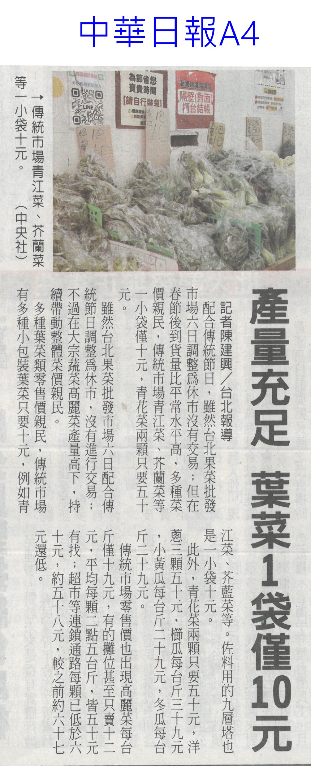 首頁萵苣觀新聞 萵苣觀新聞 排序 發布日期 更新日期 序號 發布日期 標題 381. 114/02/18 農業經營準備金 今起開放申請(民眾日報14) 382. 114/02/11 雲縣智慧農業補助開跑(台灣新生報6) 383. 114/02/11 雲林推智慧農業 最高補助百萬(中國時報A9) 384. 114/02/10 產量充足 葉菜1袋僅10元(中華日報A4) 385. 114/02/10 農業部長勘楠西南化災損(中華日報B2) 386. 114/02/10 蔬菜大宗高麗菜交易量減 整體蔬菜批發價回升(中華日報A4) 387. 114/02/10 農友休耕轉作申報 8日截止(中華日報B4) 388. 114/02/10 青農創新 卓蘭智慧溫網啓用(民眾日報4) 389. 114/02/10 對等關稅來勢洶 農部最憂蝴蝶蘭(中國時報A2) 390. 114/02/10 高麗菜1箱20公斤150元(自由時報A1) 391. 114/02/05 冷氣團來襲 農改場籲農友防寒害(中華日報B8) 392. 114/02/04 結合六感六味 引導食農教育(台灣新生報4) 393. 114/02/04 開市首日 超市高麗菜每顆60元(臺灣時報10) 394. 114/02/04 東京食品展 我參展規模遽減(自由時報A9) 395. 114/01/23 好運農總來 農業易遊網全新改版(民眾日報16) 396. 114/01/23 命脈錢被刪農業部:影響運作(臺灣時報4) 397. 114/01/23 高麗菜大落價 每斤18元創入冬新低(臺灣時報15) 398. 114/01/23 雲林菜價跌落地板 婆媽歡喜菜農嘆(中國時報A9) 399. 114/01/21 農業部:請國會共同守護臺灣農業(民眾日報2) 400. 114/01/20 春節農產供應充裕 請安心採購(民眾日報4) 第 20/141 頁,共 2813 筆上一頁到第123456789101112131415161718192021222324252627282930313233343536373839404142434445464748495051525354555657585960616263646566676869707172737475767778798081828384858687888990919293949596979899100101102103104105106107108109110111112113114115116117118119120121122123124125126127128129130131132133134135136137138139140141頁下一頁每頁103070筆資料