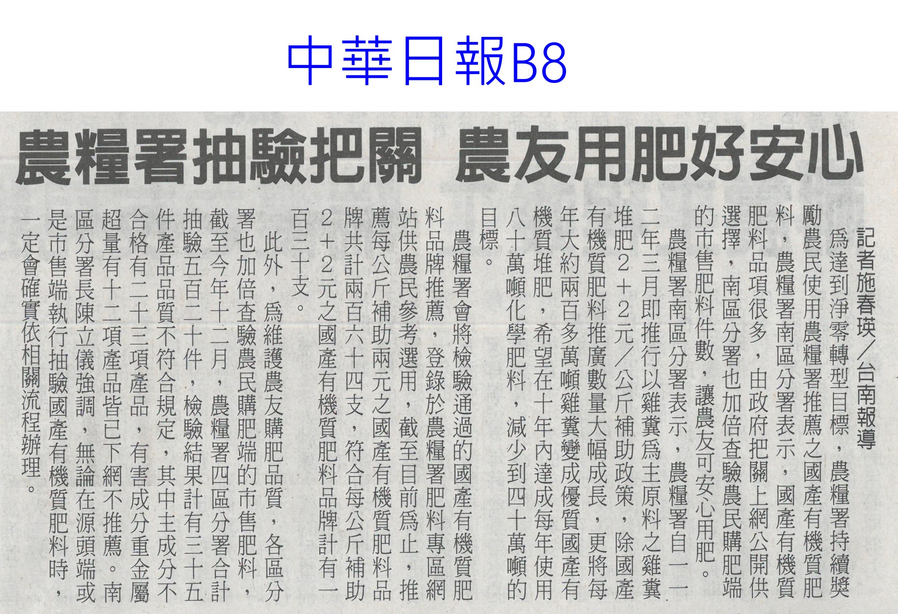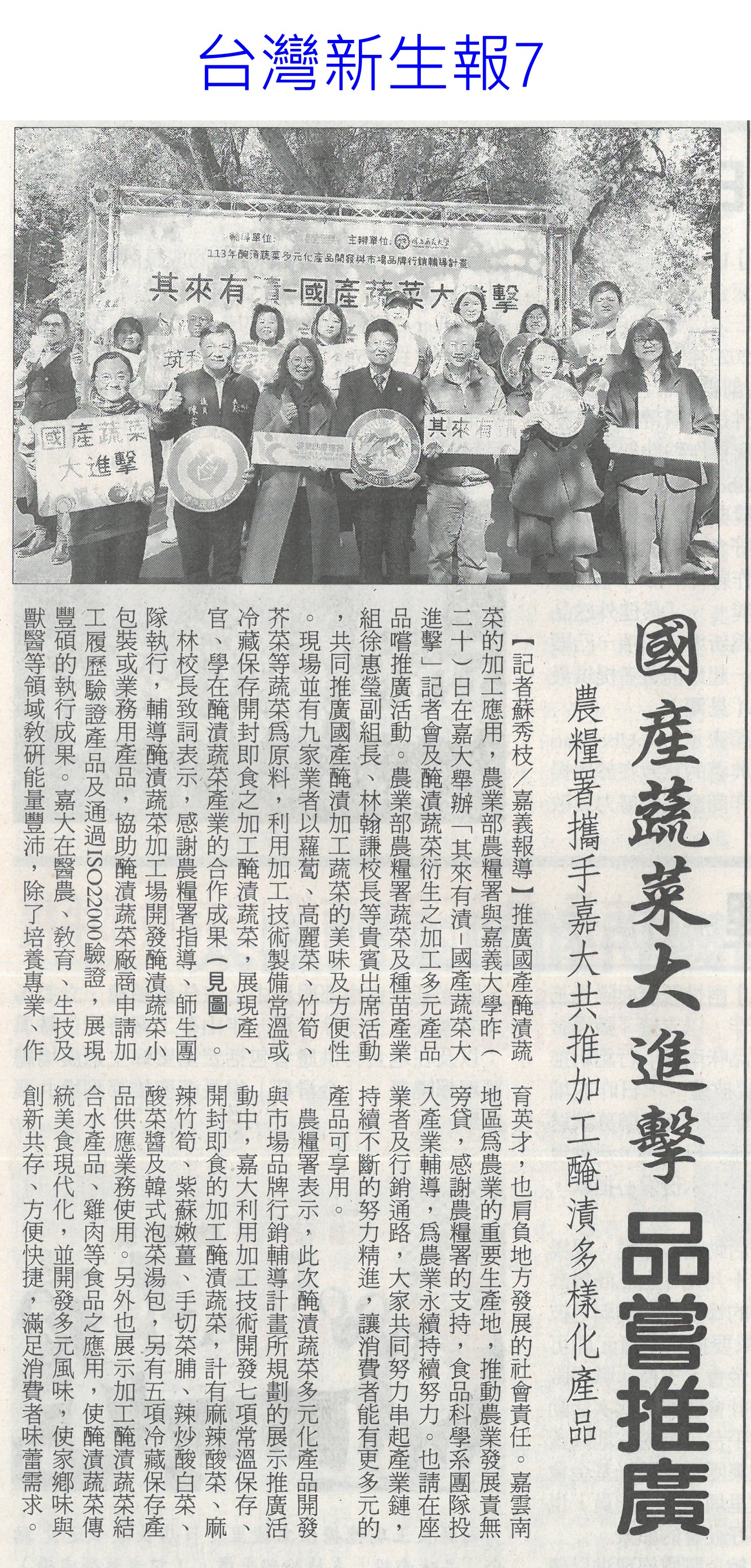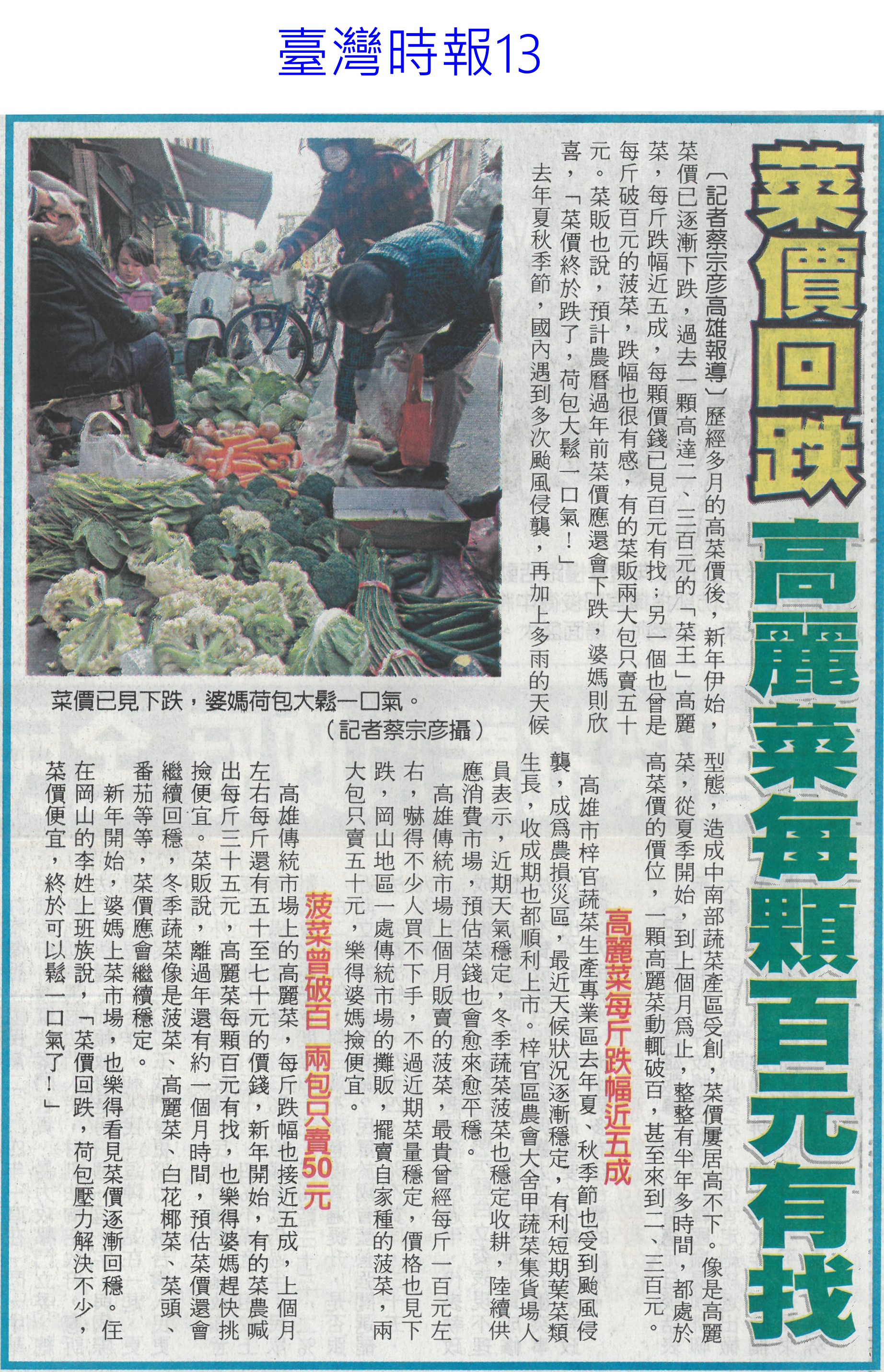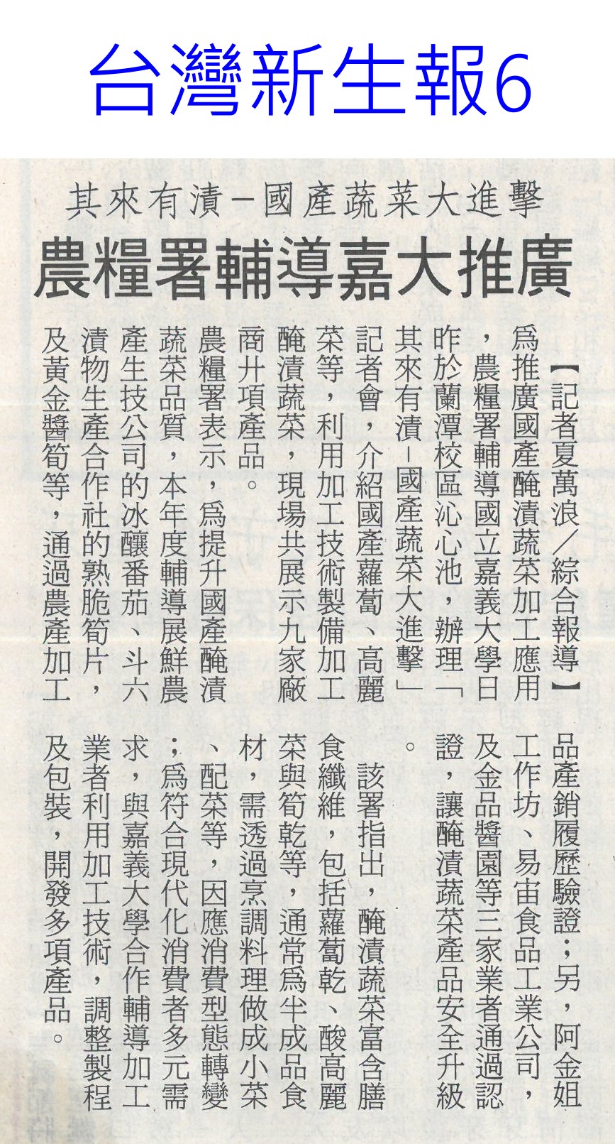 首頁萵苣觀新聞 萵苣觀新聞 排序 發布日期 更新日期 序號 發布日期 標題 421. 114/01/06 高麗菜豐收!每斤跌破20元「恐崩盤」 水果估一路貴到4月 422. 114/01/02 菜價回跌 高麗菜每顆百元有找(臺灣時報13) 423. 114/01/02 翁章梁帶嘉義轉型 不忘農業根(聯合報B2) 424. 114/01/02 1年134場 4700師生體驗食農教育(中華日報B7) 425. 113/12/31 營養師解析⟫均衡飲食難達成?國民健康署分享6項餐食,教你如何吃得營養又美味! 426. 113/12/30 農糧署攜嘉大 共推加工醃漬蔬菜(民眾日報12) 427. 113/12/30 農糧署攜嘉大 共推加工醃漬蔬菜(民眾日報12) 428. 113/12/30 國產蔬菜大進擊品嘗推廣(台灣新生報7) 429. 113/12/30 其來有漬-國產蔬菜大進擊 農糧署輔導嘉大推廣(台灣新生報6) 430. 113/12/30 農糧署抽驗把關 農友用肥好安心(中華日報B8) 431. 113/12/30 葉菜復耕上市 春節前趨平穩(中華日報A4) 432. 113/12/30 天然災害救助辦法 農業部預告修正(民眾日報2) 433. 113/12/30 台南農產外銷 拼出8億成績(自由時報A11) 434. 113/12/30 南市農業局 行銷商機近8億元(中國時報A9) 435. 113/12/30 台南農特產赴新北行銷 搶春節商機(中華日報B2) 436. 113/12/24 冬瓜每斤飆40元天價!菜販驚:30年來最貴 5款蔬菜漲最兇 437. 113/12/22 菜價降3成!葉菜每斤20元起 農糧署:價格回穩年節供應無虞 438. 113/12/18 冬季蔬菜量產 價格漸平穩(中華日報A4) 439. 113/12/18 農糧署:蔬菜價格逐漸平穩(台灣時報14) 440. 113/12/18 了解碳權 有助農業轉型升級(中華日報B3) 第 22/141 頁,共 2813 筆上一頁到第123456789101112131415161718192021222324252627282930313233343536373839404142434445464748495051525354555657585960616263646566676869707172737475767778798081828384858687888990919293949596979899100101102103104105106107108109110111112113114115116117118119120121122123124125126127128129130131132133134135136137138139140141頁下一頁每頁103070筆資料
