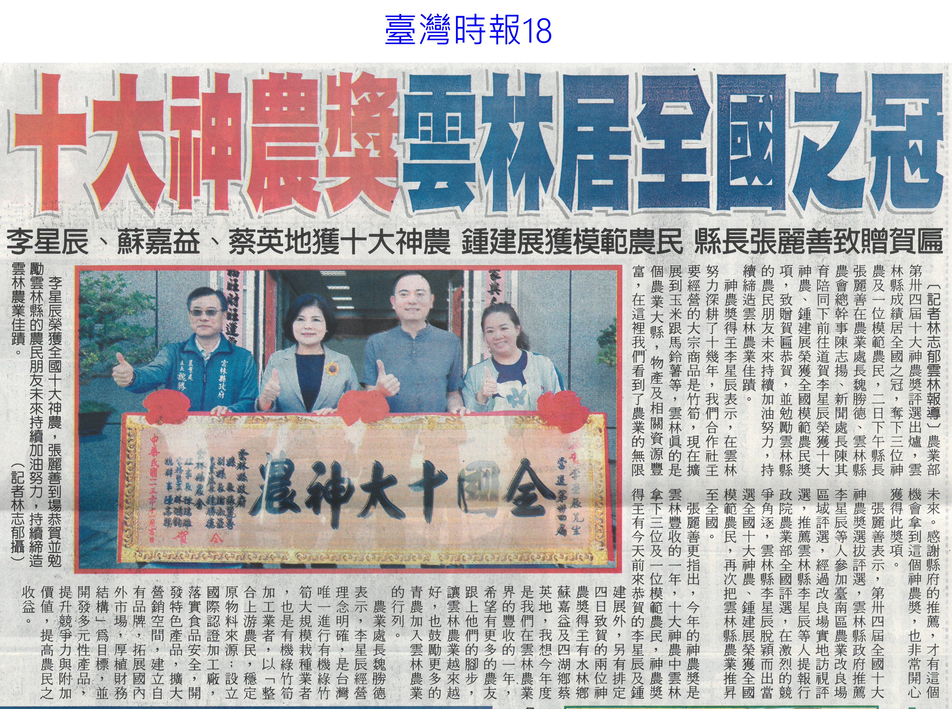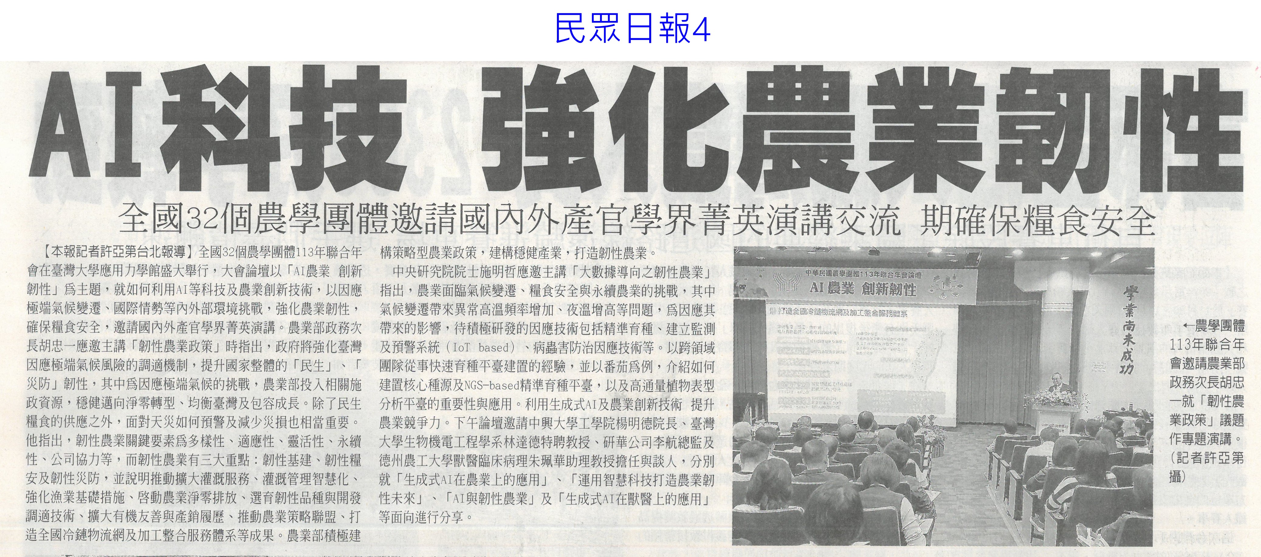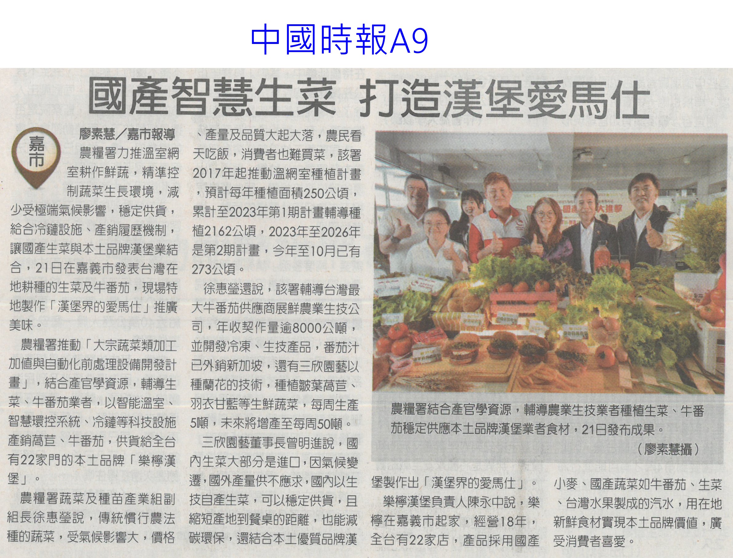 首頁萵苣觀新聞 萵苣觀新聞 排序 發布日期 更新日期 序號 發布日期 標題 461. 113/12/04 有機世界大會在台舉辦(台灣新生報6) 462. 113/12/04 陳昱初接掌台南農改場(中華日報B2) 463. 113/12/04 十大神農獎 雲林居全國之冠(臺灣時報18) 464. 113/12/04 菜價又飆破60元 農業部:過年前價格回穩 465. 113/12/02 國產智慧生菜 打造漢堡愛馬仕(中國時報AA9) 466. 113/12/02 農業生產追不上人口(聯合報A2) 467. 113/12/02 農藥殘留放寬 草莓依日本標準(中國時報A4) 468. 113/12/02 憂損權益 雲林擬減農1增農2(中國時報A8) 469. 113/12/02 國產蔬菜體驗路線評選 10條創意遊程出線(臺灣時報11) 470. 113/12/02 農畜聯合開放日 破萬人逛起來(中華日報B1) 471. 113/12/02 AI科技 強化農業韌性(民眾日報4) 472. 113/11/18 雲林農物館 農會閒置穀倉變身(中國時報A9) 473. 113/11/18 噴藥農損照採收 恐成食安地雷(聯合報A5) 474. 113/11/18 老化又缺工 農村擁抱AI趨勢(聯合報A5) 475. 113/11/15 雲林良品開創新通路 星國新台灣館上架(台灣新生報6) 476. 113/11/15 首座農業資源零廢棄循環場 啓用(民眾日報3) 477. 113/11/14 農糧署輔導 大豆蔬菜溫室栽培提升品質(民眾日報16) 478. 113/11/14 南市農村再生成果發表會 登場(民眾日報12) 479. 113/11/14 雲林良品 上架星國新台灣館(臺灣時報18) 480. 113/11/07 憂農退儲金破產 提繳率僅3成(中國時報A5) 第 24/141 頁,共 2813 筆上一頁到第123456789101112131415161718192021222324252627282930313233343536373839404142434445464748495051525354555657585960616263646566676869707172737475767778798081828384858687888990919293949596979899100101102103104105106107108109110111112113114115116117118119120121122123124125126127128129130131132133134135136137138139140141頁下一頁每頁103070筆資料