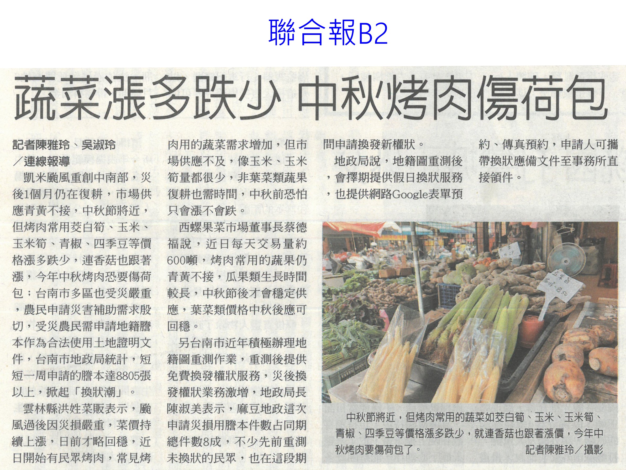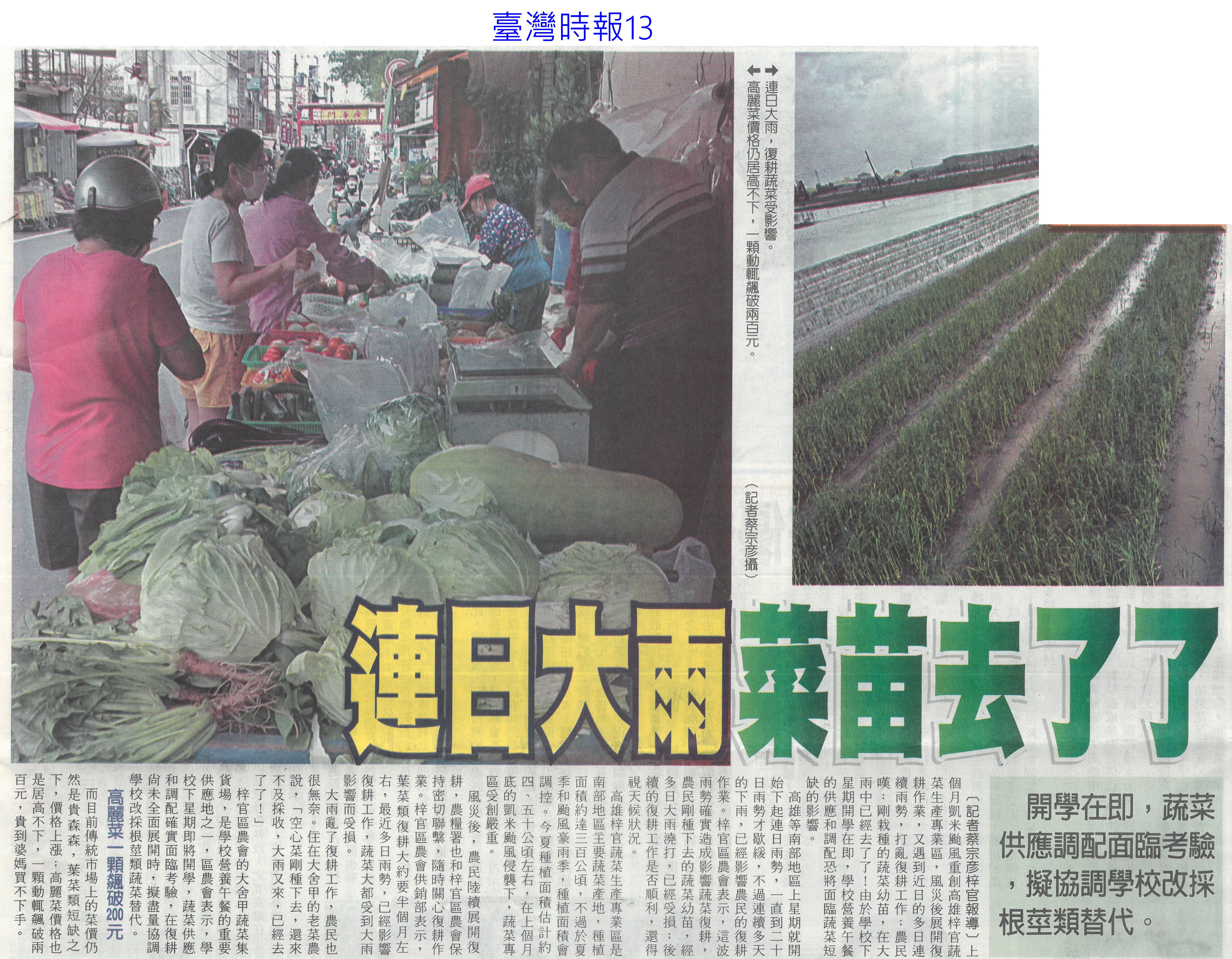 首頁萵苣觀新聞 萵苣觀新聞 排序 發布日期 更新日期 序號 發布日期 標題 601. 113/09/02 農民傷病給付 前2月日領增至680元(自由時報A6) 602. 113/09/02 張麗善與青農交流新生傾聽心聲(台灣新生報6) 603. 113/09/02 百大青農標竿表揚 107人獲獎(民眾日報4) 604. 113/09/02 農改場輔導青農 23人列百大標竿(中華日報B2) 605. 113/08/28 蔬菜漲多跌少 中秋烤肉傷荷包(聯合報B2) 606. 113/08/25 地瓜葉的葉黃素含量超高!專家推1地瓜葉料理防黃斑部病變 607. 113/08/23 胡忠一率團出席APEC糧食安全部長會議(民眾日報2) 608. 113/08/23 國土畫設 雲縣議會要求修正農一比例(中國時報A9) 609. 113/08/23 天牛`猴危害農作物 台東農改場研發空氣灌注 `防猴網罩(中華日報B6) 610. 113/08/22 農漁產品外銷 上半年產值破4億(自由時報A11) 611. 113/08/22 台南農產外銷6國 產值破4億(中國時報A9) 612. 113/08/22 農糧署攜全聯 提升國產米使用量(民眾日報16) 613. 113/08/22 連日大雨 菜苗去了了(臺灣時報13) 614. 113/08/22 農業部結合OK mart 打造全國農產物流網(民眾日報16) 615. 113/08/22 農業部農易送平台 運費省3成(中華日報A4) 616. 113/08/19 雲國土計畫說明會 土庫開講(台灣新生報7) 617. 113/08/14 菜價仍高 本土白花椰菜1台斤350元(聯合報B2) 618. 113/08/14 農民職災保險 月底納入皮膚癌(自由時報A9) 619. 113/08/14 中元物價查核 蔬果漲幅3成(中華日報B8) 620. 113/08/14 極端氣候衝擊大 乾旱+淹水 青農索性離農(聯合報A2) 第 31/142 頁,共 2823 筆上一頁到第123456789101112131415161718192021222324252627282930313233343536373839404142434445464748495051525354555657585960616263646566676869707172737475767778798081828384858687888990919293949596979899100101102103104105106107108109110111112113114115116117118119120121122123124125126127128129130131132133134135136137138139140141142頁下一頁每頁103070筆資料