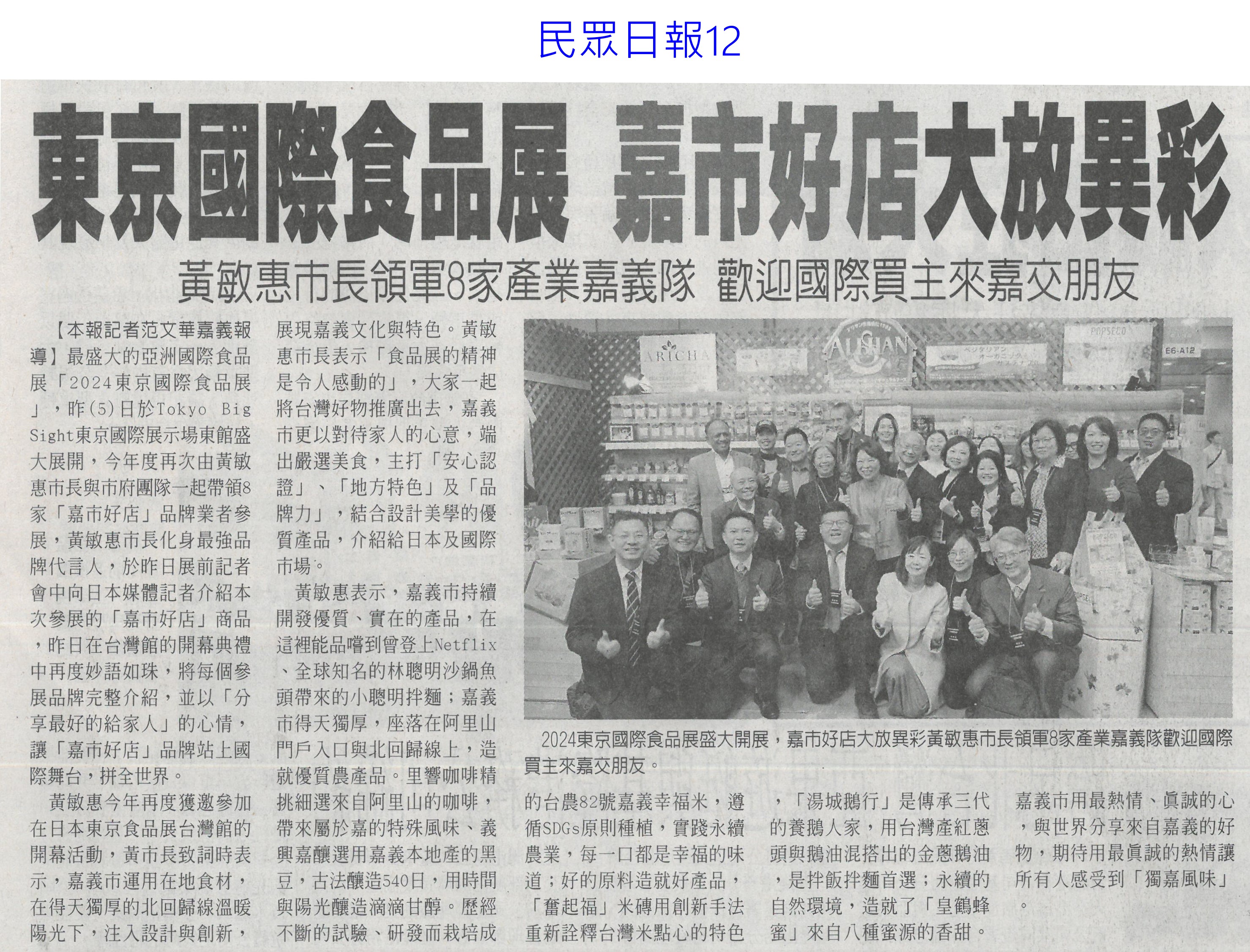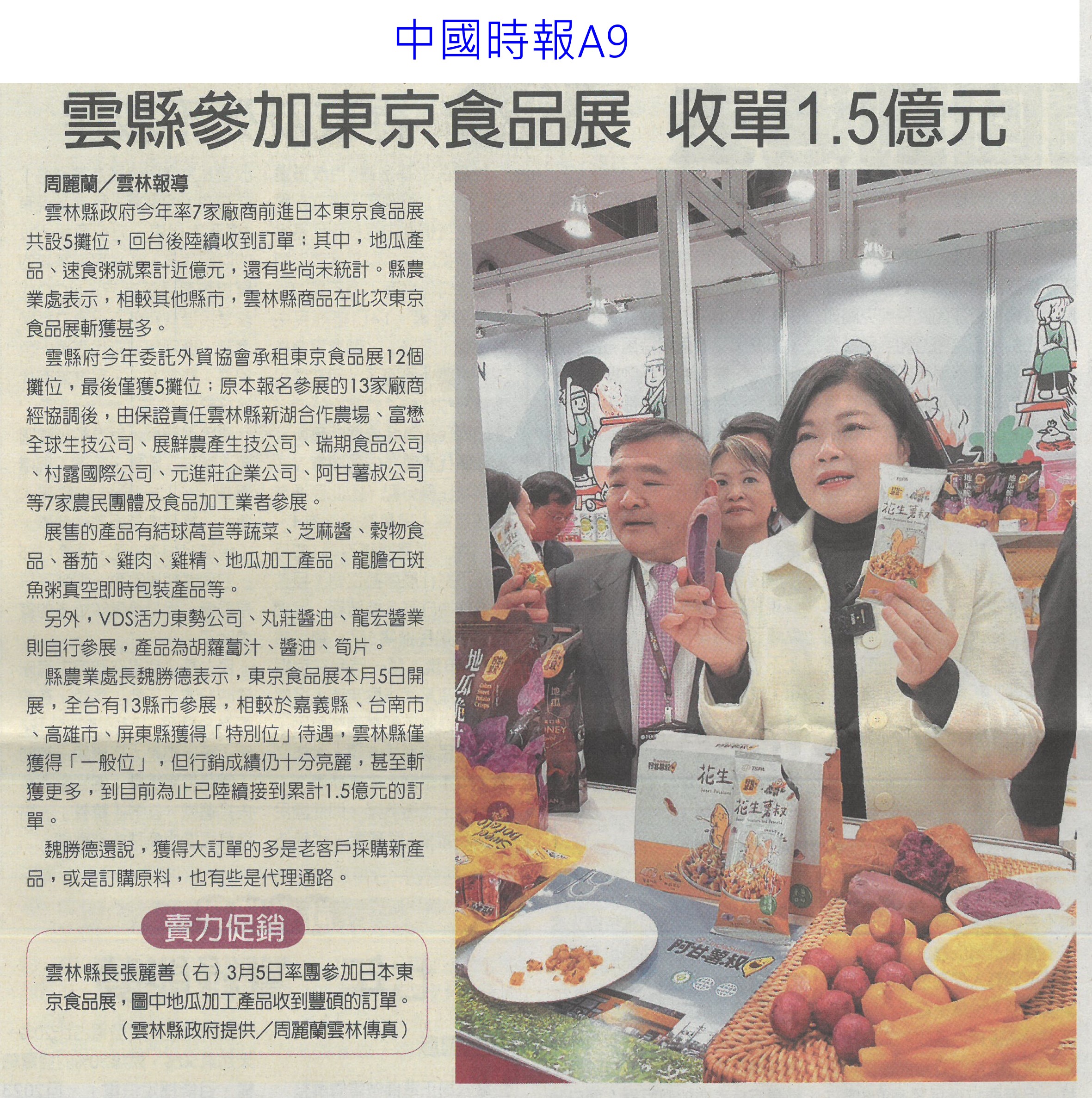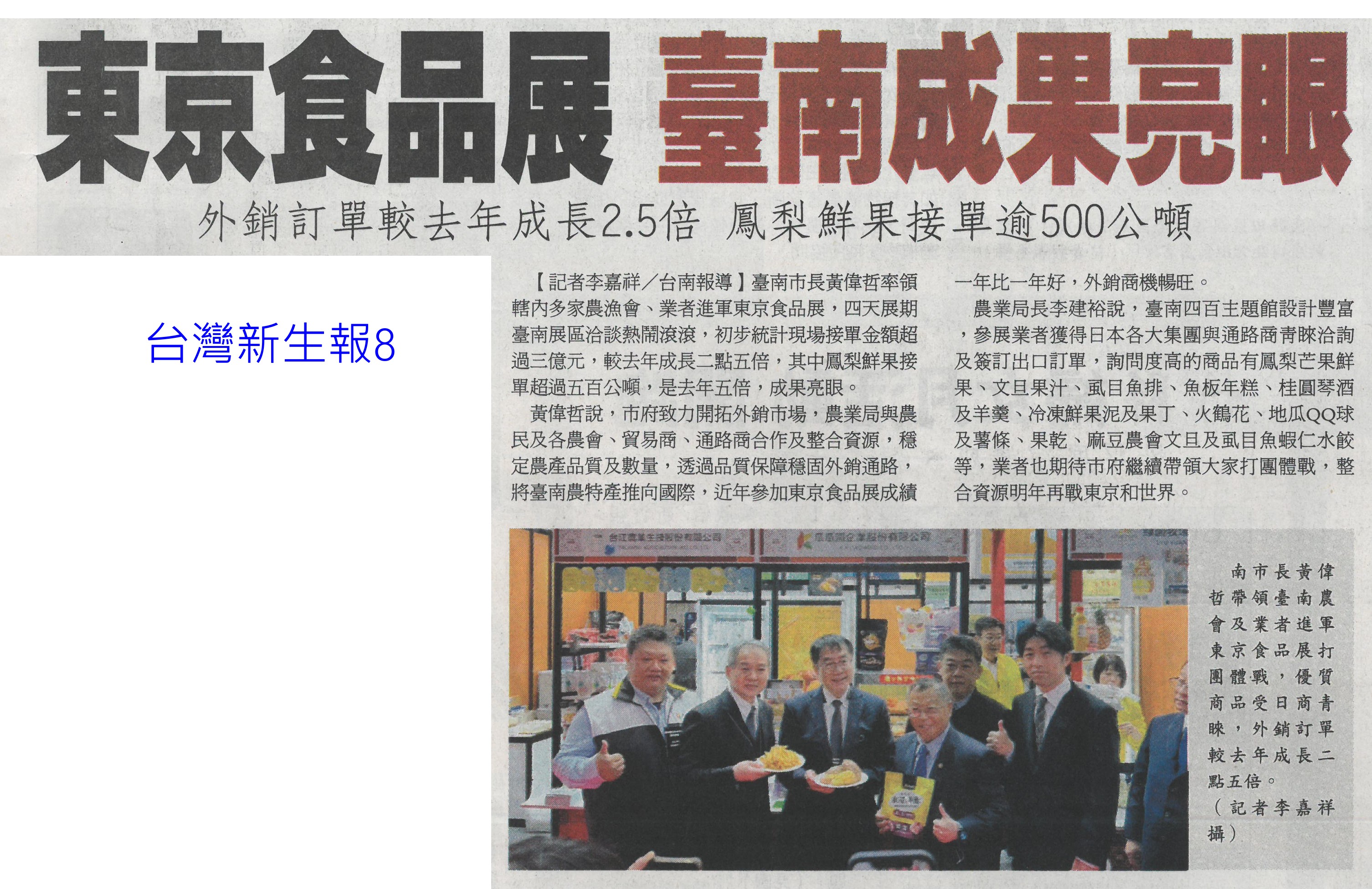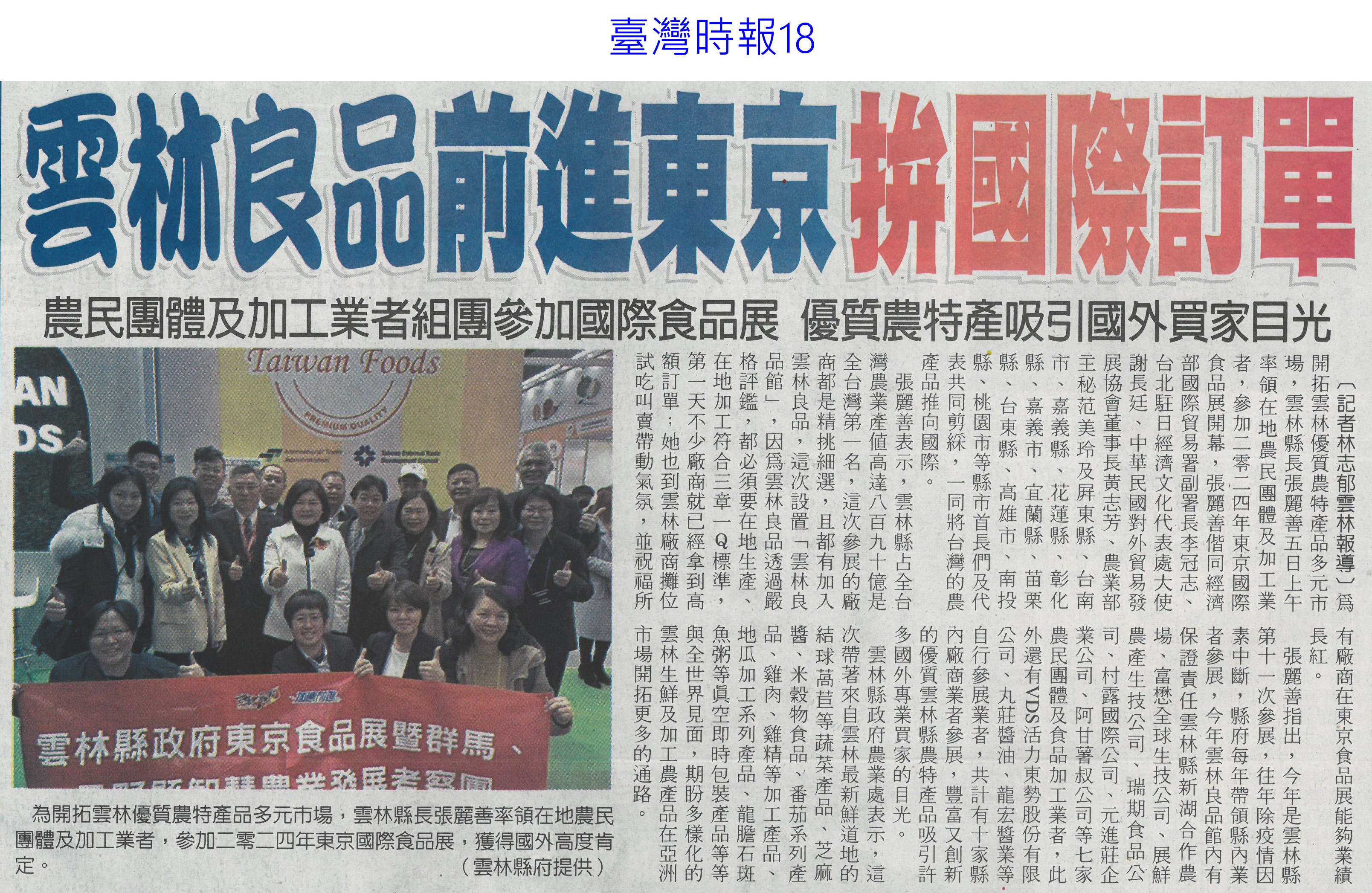 首頁萵苣觀新聞 萵苣觀新聞 排序 發布日期 更新日期 序號 發布日期 標題 841. 113/03/18 農機補助 即起受理申請(台灣新生報7) 842. 113/03/18 雲縣參加東京食品展 收單1.5億(中國時報A9) 843. 113/03/13 陳亭妃爭取 有機質肥料補助恢復(中華日報B2) 844. 113/03/12 農產搶攻東京市場 銷售逾3億(中華日報B2) 845. 113/03/12 張麗善籲落實農電共生一地兩用(中國時報A9) 846. 113/03/12 南農女力 讓台南農業更美麗(民眾日報12) 847. 113/03/12 南市農產義賣 展現女力成果(台灣新生報7) 848. 113/03/12 楠西青農用植保機 遠科大教撇步(中華日報B7) 849. 113/03/11 東京食品展佳績 台南接單逾3億(自由時報A12) 850. 113/03/11 東京食品展 臺南成果亮眼(台灣新生報8) 851. 113/03/08 雲嘉農產品牌化 業者讚有助消售(聯合報B2) 852. 113/03/08 水利署:春耕整田3月中完成供灌(民眾日報14) 853. 113/03/07 黃偉哲率台南號 問鼎東京食品展(民眾日報16) 854. 113/03/07 體驗臺南市食農教育新教具(中華日報C1) 855. 113/03/07 慶台南400 12件農產品換新裝(中華日報B8) 856. 113/03/07 台南號 進軍東京食品展(中華日報B1) 857. 113/03/07 東京國際食品展 嘉市好店大放異彩(民眾日報12) 858. 113/03/07 嘉義優鮮館 行銷阿里山好滋味(臺灣時報18) 859. 113/03/07 雲林良品前進東京 拚國際訂單(臺灣時報18) 860. 113/03/07 農機補助啟動 增汰舊換新獎勵措施(臺灣時報11) 第 43/142 頁,共 2828 筆上一頁到第123456789101112131415161718192021222324252627282930313233343536373839404142434445464748495051525354555657585960616263646566676869707172737475767778798081828384858687888990919293949596979899100101102103104105106107108109110111112113114115116117118119120121122123124125126127128129130131132133134135136137138139140141142頁下一頁每頁103070筆資料