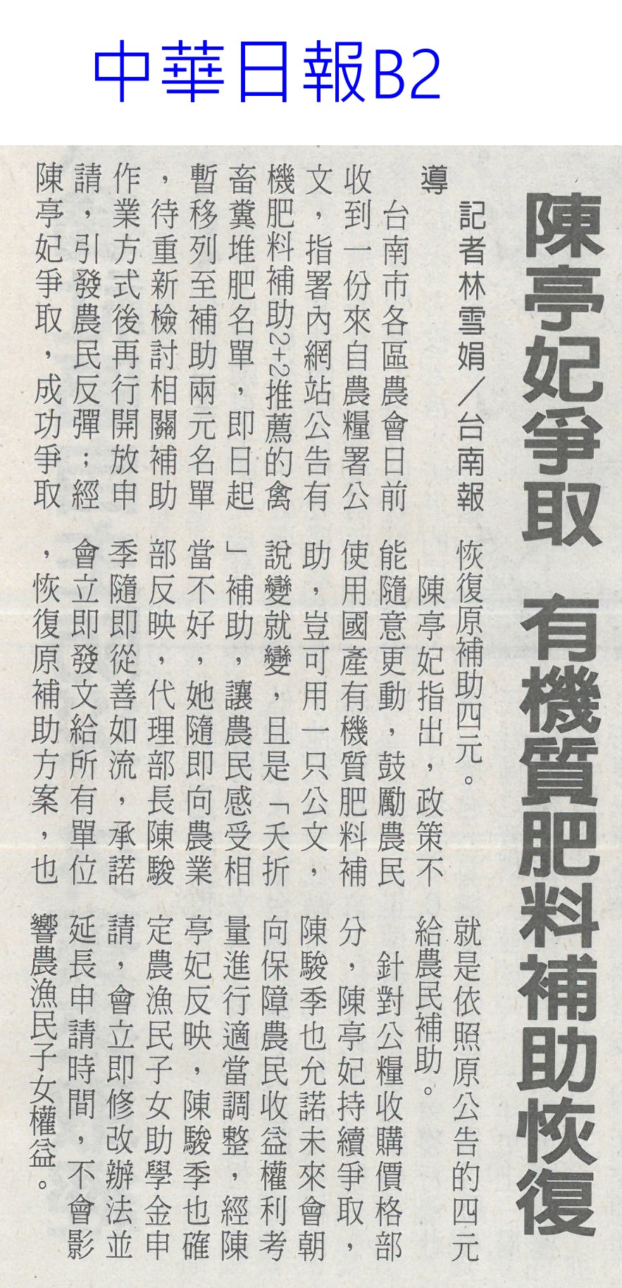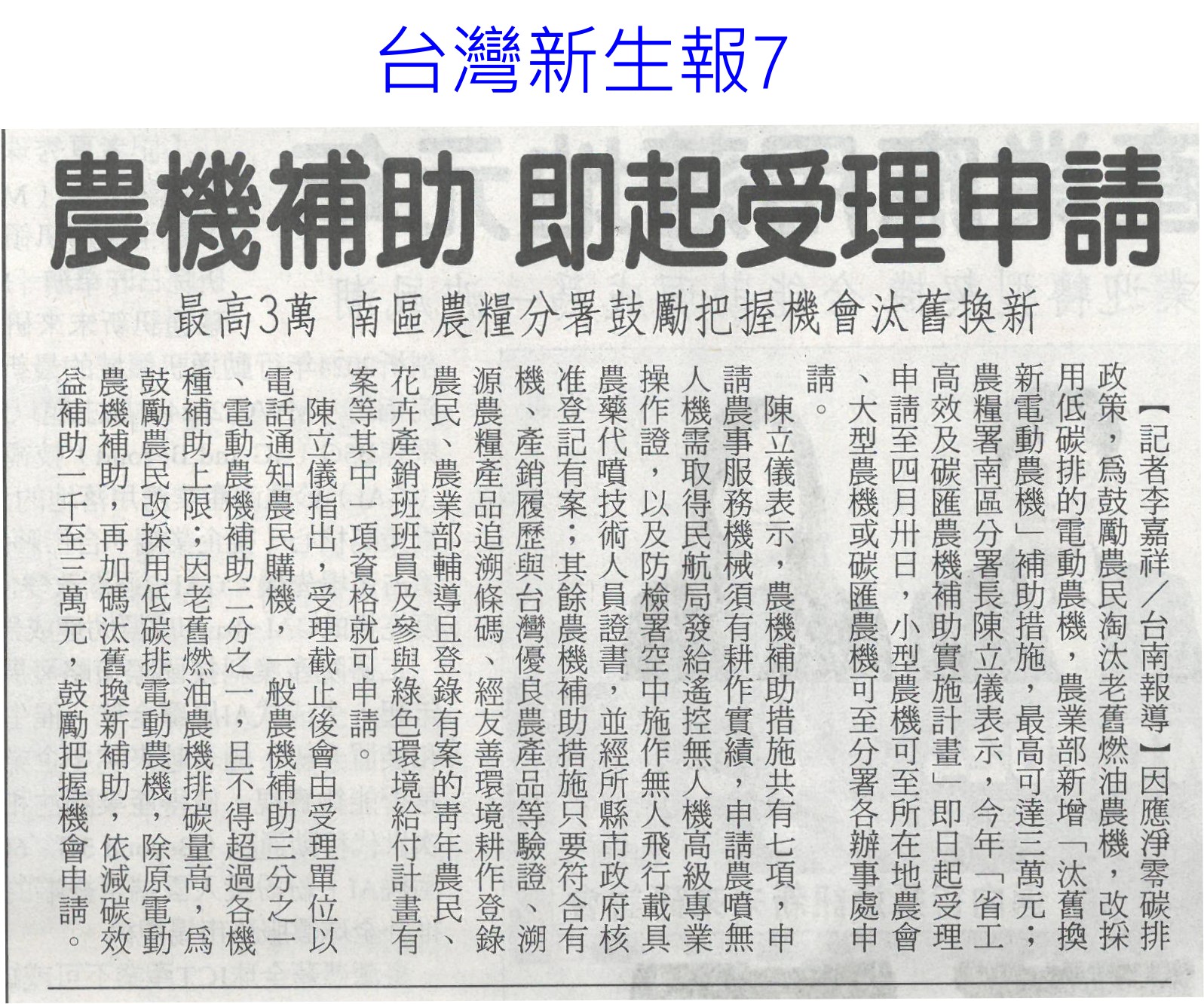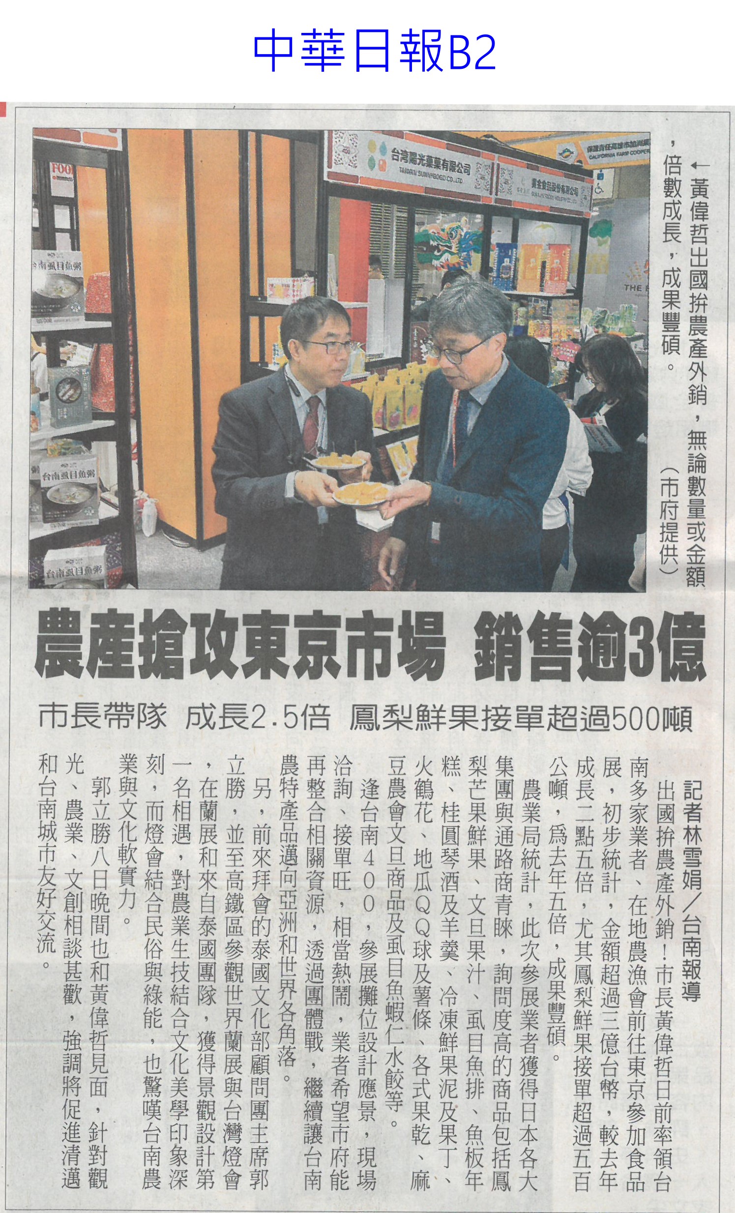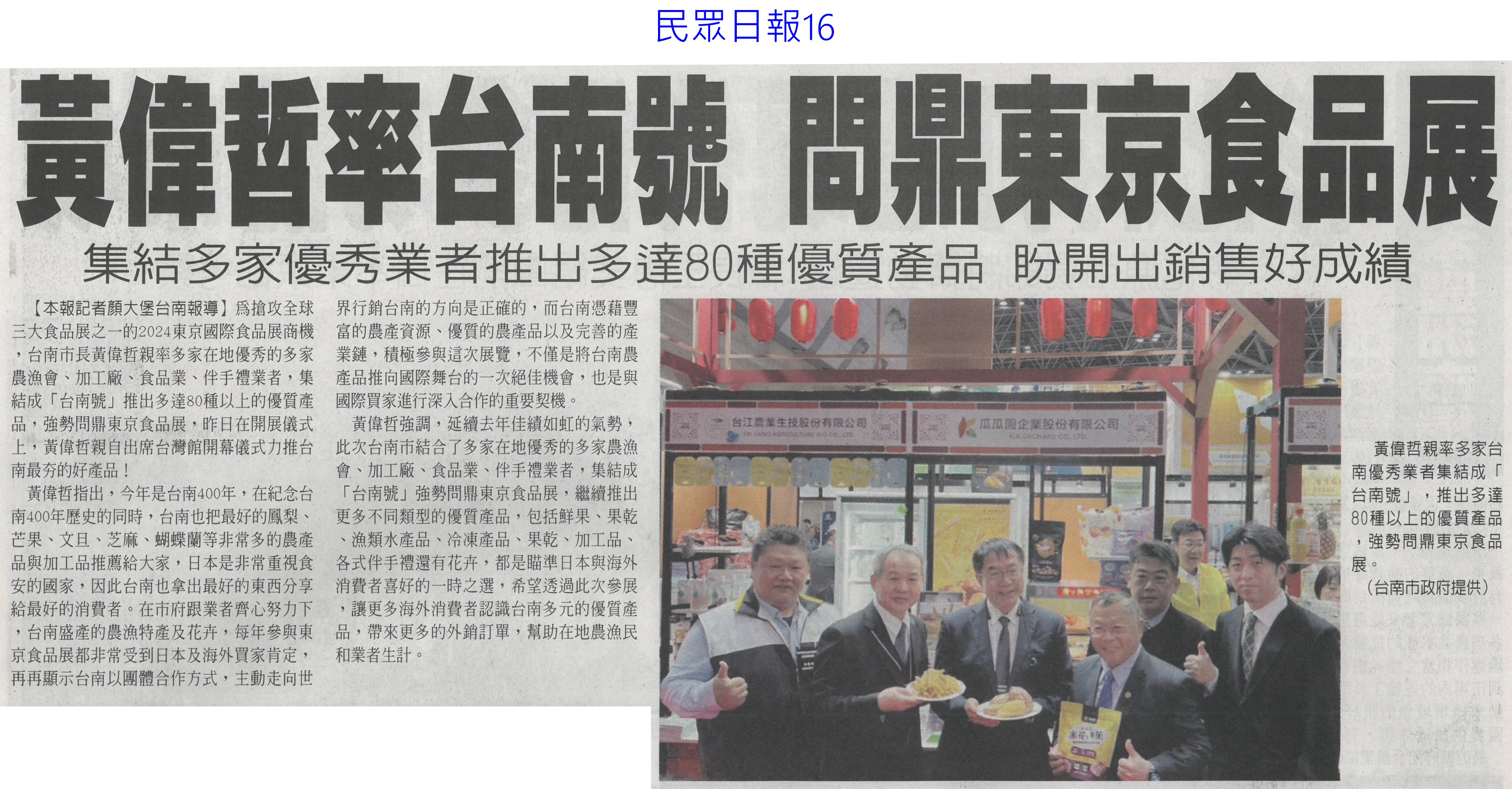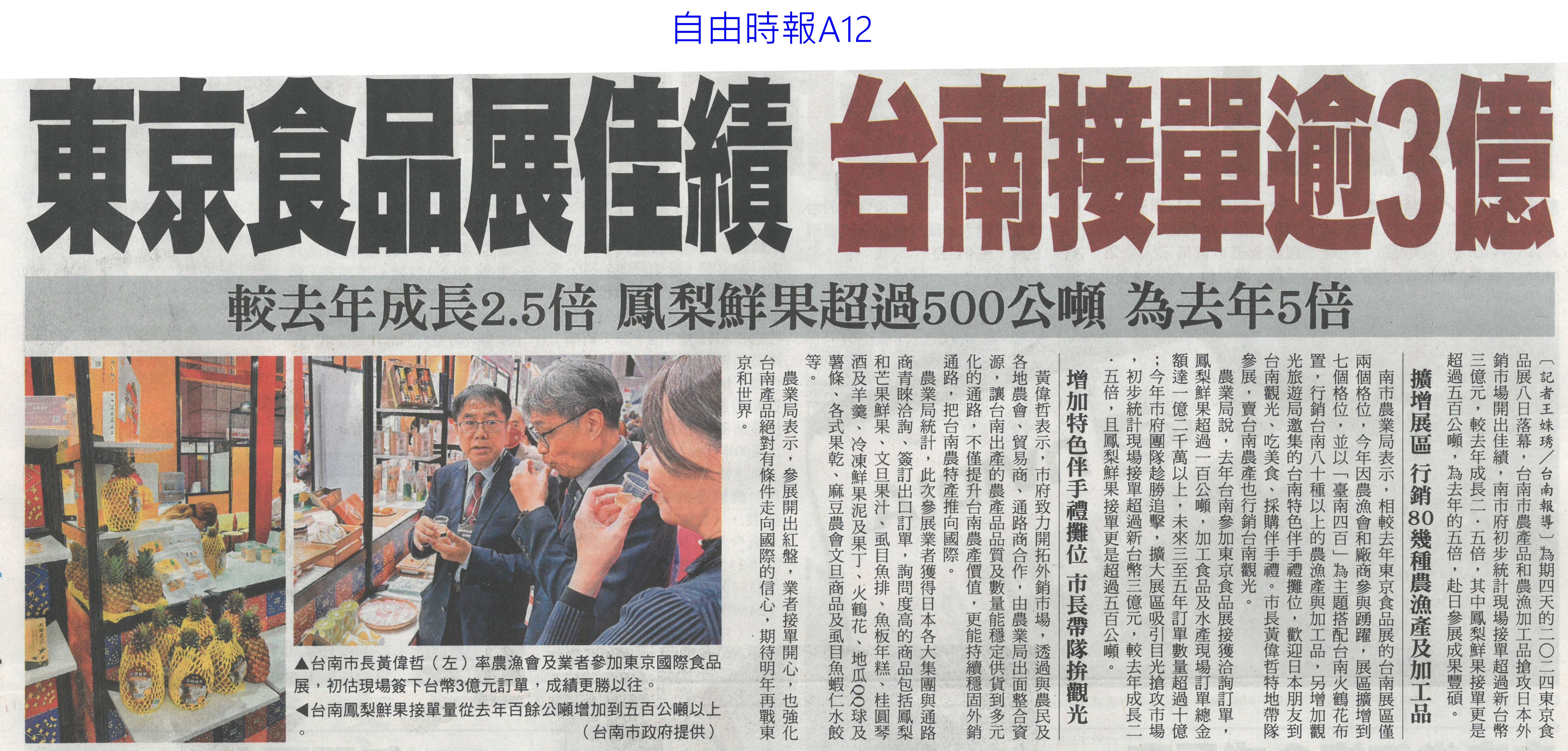 首頁萵苣觀新聞 萵苣觀新聞 排序 發布日期 更新日期 序號 發布日期 標題 841. 113/03/18 農機補助 即起受理申請(台灣新生報7) 842. 113/03/18 雲縣參加東京食品展 收單1.5億(中國時報A9) 843. 113/03/13 陳亭妃爭取 有機質肥料補助恢復(中華日報B2) 844. 113/03/12 農產搶攻東京市場 銷售逾3億(中華日報B2) 845. 113/03/12 張麗善籲落實農電共生一地兩用(中國時報A9) 846. 113/03/12 南農女力 讓台南農業更美麗(民眾日報12) 847. 113/03/12 南市農產義賣 展現女力成果(台灣新生報7) 848. 113/03/12 楠西青農用植保機 遠科大教撇步(中華日報B7) 849. 113/03/11 東京食品展佳績 台南接單逾3億(自由時報A12) 850. 113/03/11 東京食品展 臺南成果亮眼(台灣新生報8) 851. 113/03/08 雲嘉農產品牌化 業者讚有助消售(聯合報B2) 852. 113/03/08 水利署:春耕整田3月中完成供灌(民眾日報14) 853. 113/03/07 黃偉哲率台南號 問鼎東京食品展(民眾日報16) 854. 113/03/07 體驗臺南市食農教育新教具(中華日報C1) 855. 113/03/07 慶台南400 12件農產品換新裝(中華日報B8) 856. 113/03/07 台南號 進軍東京食品展(中華日報B1) 857. 113/03/07 東京國際食品展 嘉市好店大放異彩(民眾日報12) 858. 113/03/07 嘉義優鮮館 行銷阿里山好滋味(臺灣時報18) 859. 113/03/07 雲林良品前進東京 拚國際訂單(臺灣時報18) 860. 113/03/07 農機補助啟動 增汰舊換新獎勵措施(臺灣時報11) 第 43/142 頁,共 2828 筆上一頁到第123456789101112131415161718192021222324252627282930313233343536373839404142434445464748495051525354555657585960616263646566676869707172737475767778798081828384858687888990919293949596979899100101102103104105106107108109110111112113114115116117118119120121122123124125126127128129130131132133134135136137138139140141142頁下一頁每頁103070筆資料