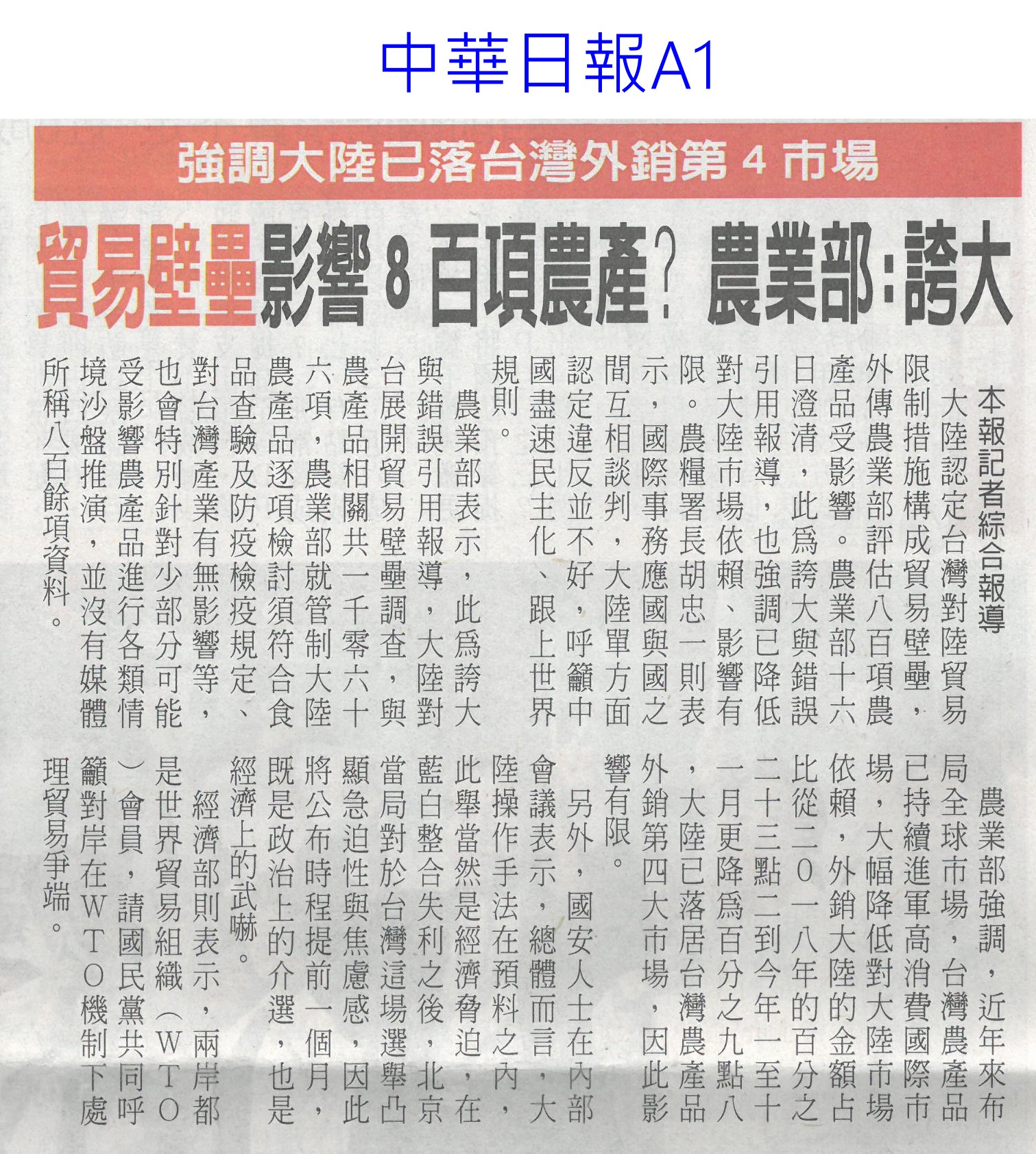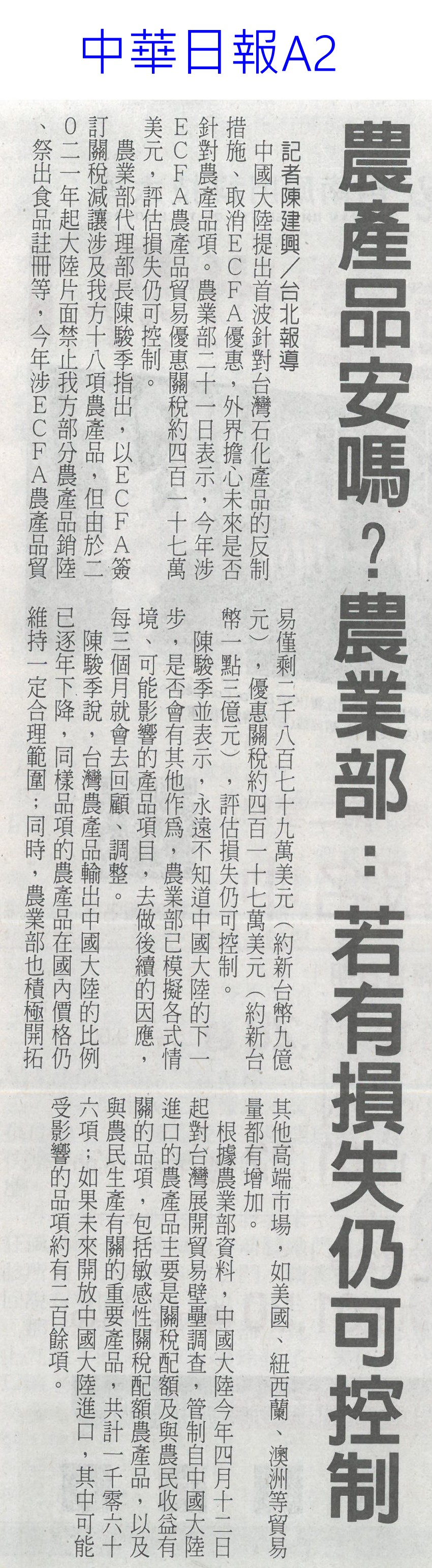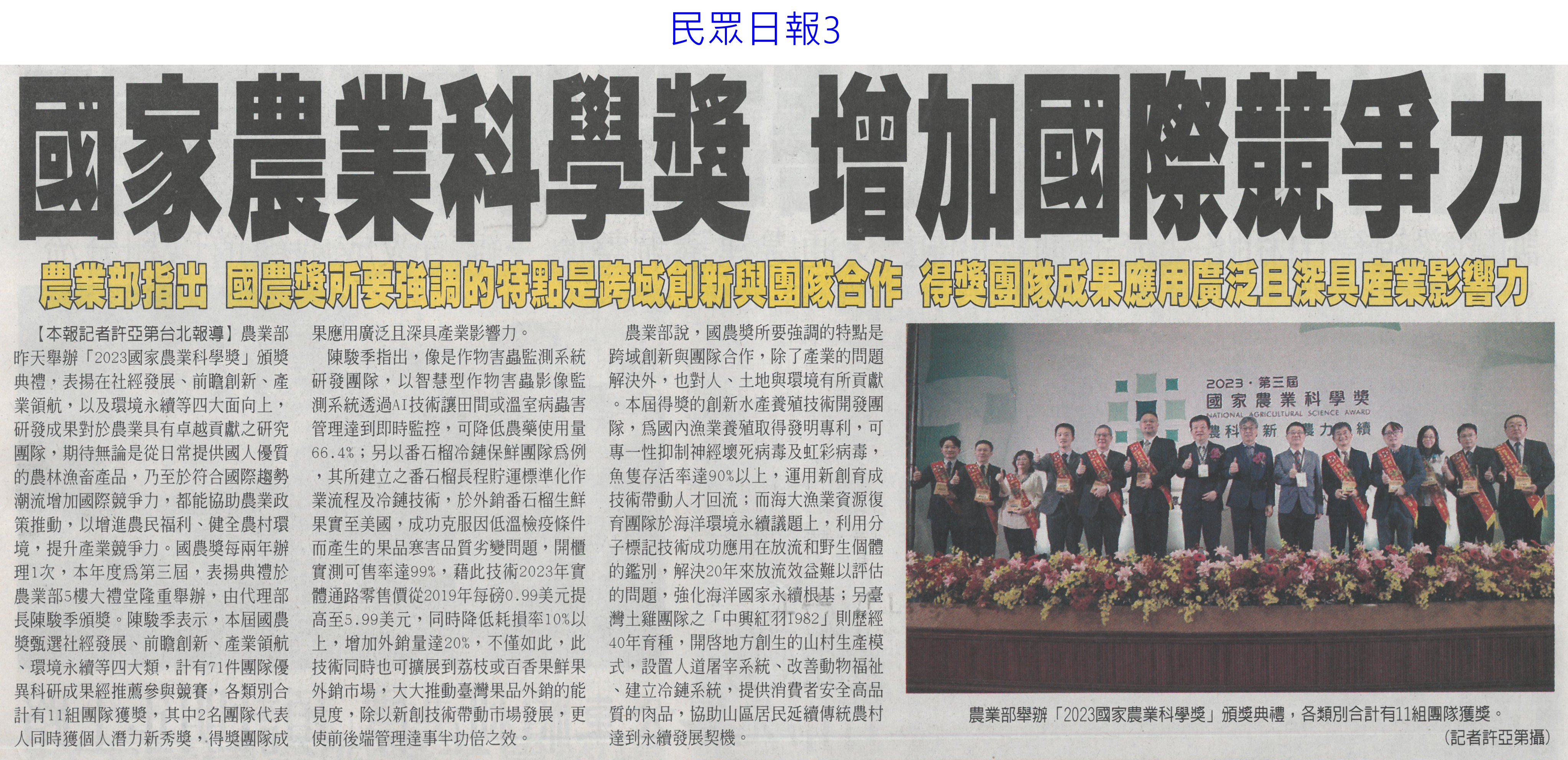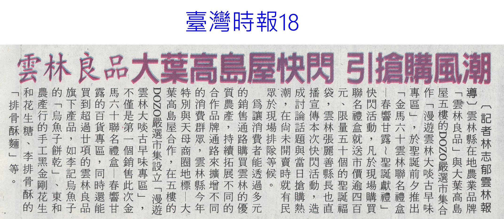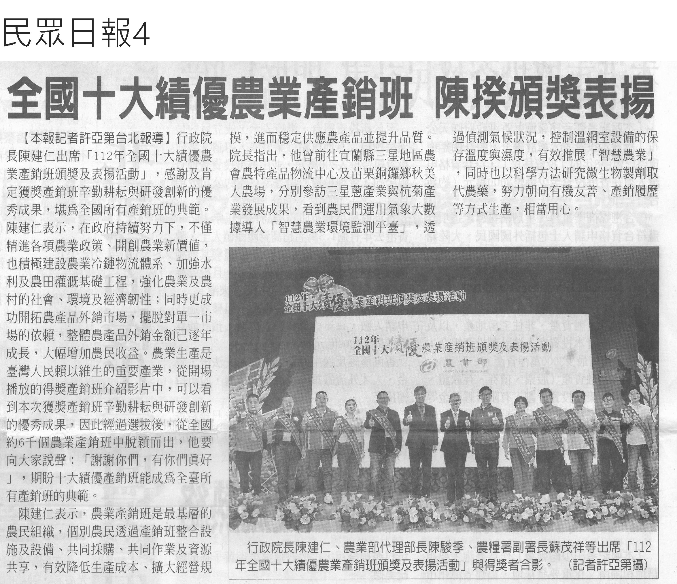 首頁萵苣觀新聞 萵苣觀新聞 排序 發布日期 更新日期 序號 發布日期 標題 921. 113/01/02 雲縣府與量販店行銷農村好物(中華日報B6) 922. 113/01/02 企業CSR採購 挺國產優質農產品(民眾日報4) 923. 112/12/26 雲林良品大葉高島屋快閃 引搶購風潮(臺灣時報18) 924. 112/12/25 洗菜去毒三步驟 先浸泡、後沖洗、再切除 925. 112/12/22 台南冬季農漁選品大賞出爐(台灣新生報6) 926. 112/12/22 雲林良品偕全家超商 推聯名鮮食(臺灣時報18) 927. 112/12/22 全國十大績優農業產銷班 陳揆頒獎表揚(民眾日報4) 928. 112/12/22 農業局 建置農漁冷鏈雙核心 拓商機(中華日報B8) 929. 112/12/22 農產品安嗎?農業部:若有損失仍可控制(中華日報A2) 930. 112/12/20 南得極品再添87項生力軍(中華日報B8) 931. 112/12/20 台南市府行銷南得極品(中國時報A9) 932. 112/12/20 雲縣府聯手超商 推雲林良品鮮食(中國時報A9) 933. 112/12/18 中認台貿易壁壘 農糧署籲跟上世界規則(臺灣時報2) 934. 112/12/18 貿易壁壘影響8百項農產? 農業部:誇大(中華日報A1) 935. 112/12/14 台南農村青年產品創新包裝 吸睛(民眾日報16) 936. 112/12/14 農村再生+青年築夢 秀成果(中華日報B8) 937. 112/12/13 台肥握多管道尿素來源 肥料供應無虞(民眾日報4) 938. 112/12/13 漢光蔬果區域冷鏈物流中心 啟用(民眾日報6) 939. 112/12/13 漢光區域級冷鏈物流中心竣工(臺灣時報18) 940. 112/12/13 國家農業科學獎 增加國際競爭力(民眾日報3) 第 47/142 頁,共 2828 筆上一頁到第123456789101112131415161718192021222324252627282930313233343536373839404142434445464748495051525354555657585960616263646566676869707172737475767778798081828384858687888990919293949596979899100101102103104105106107108109110111112113114115116117118119120121122123124125126127128129130131132133134135136137138139140141142頁下一頁每頁103070筆資料
