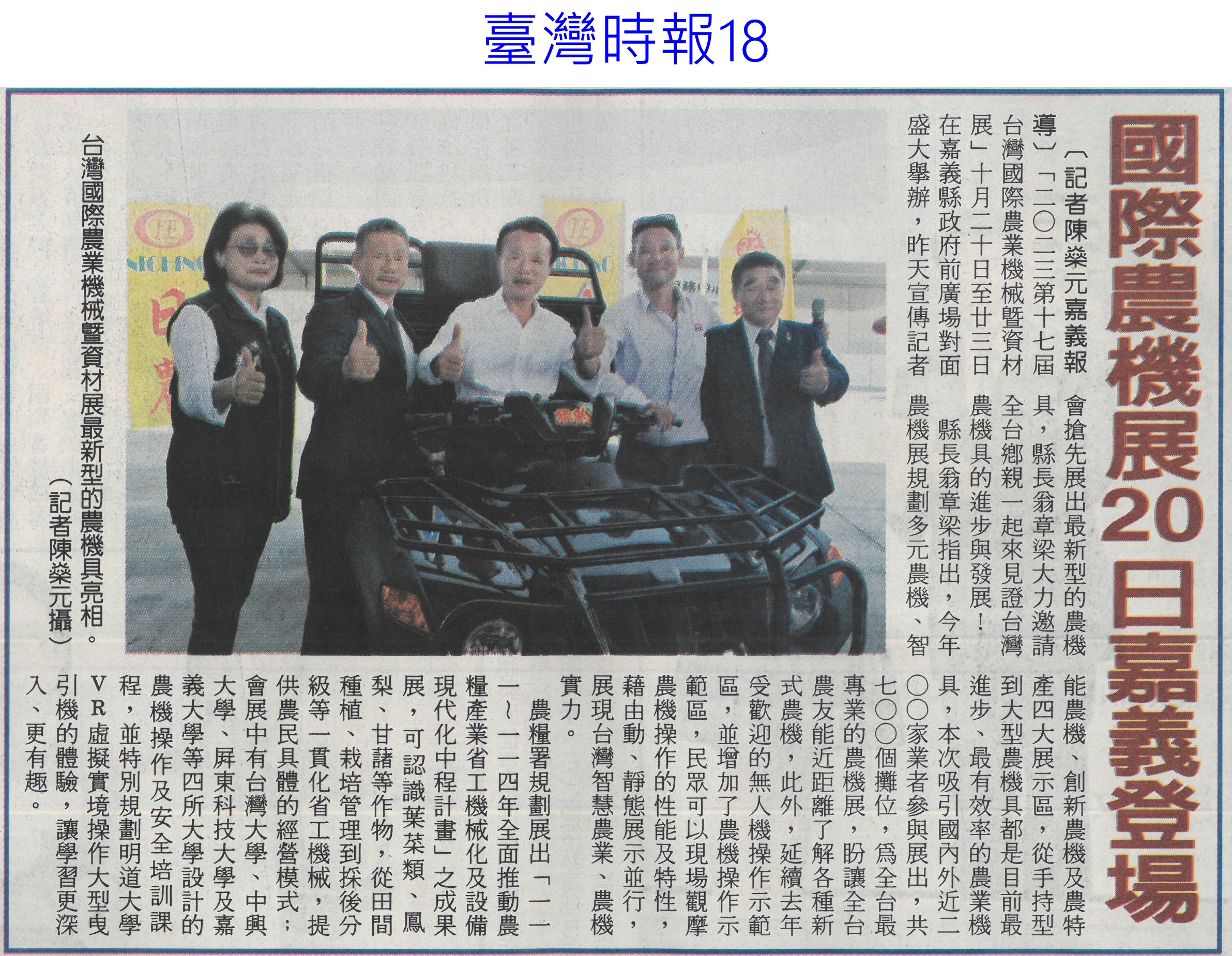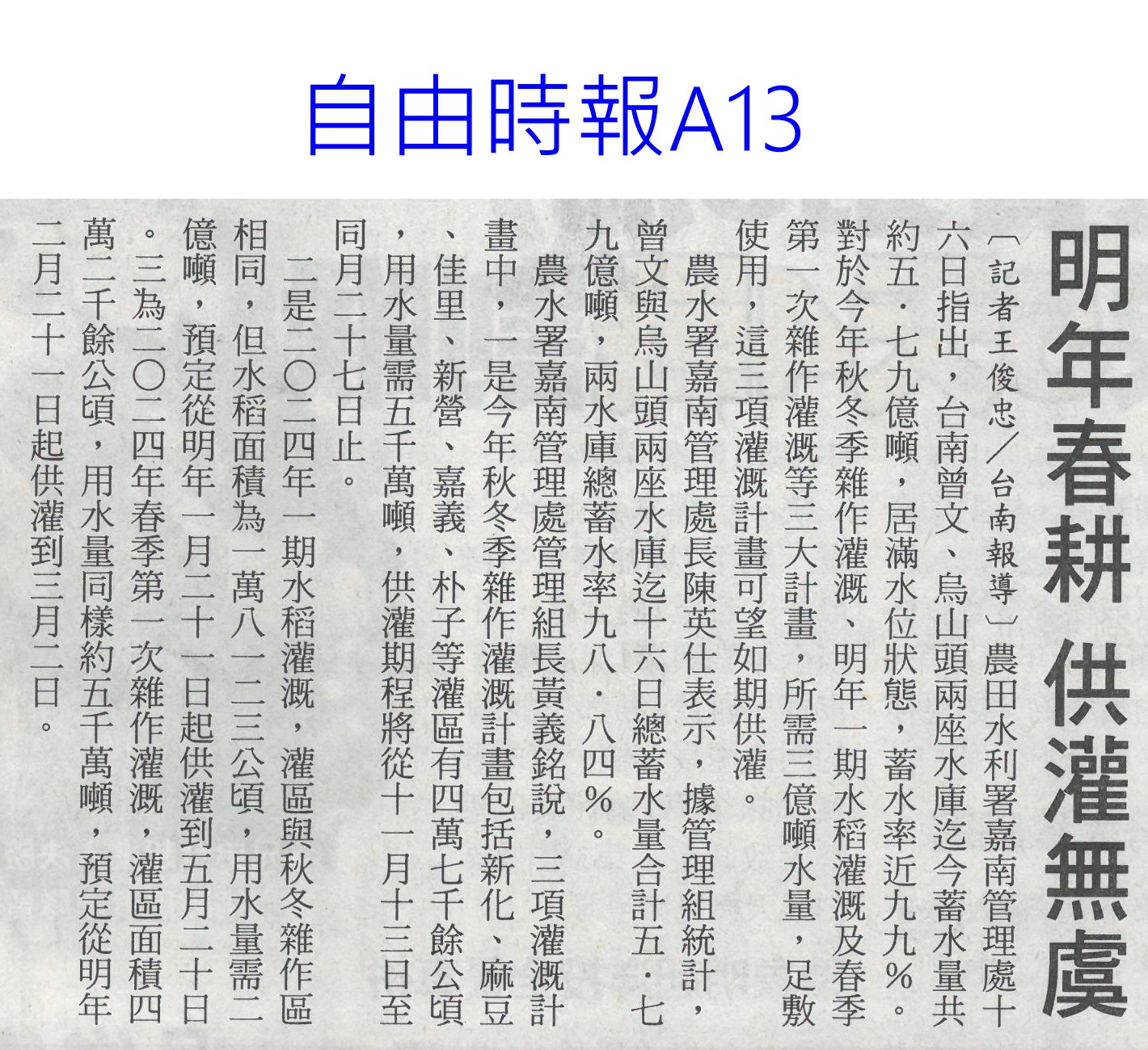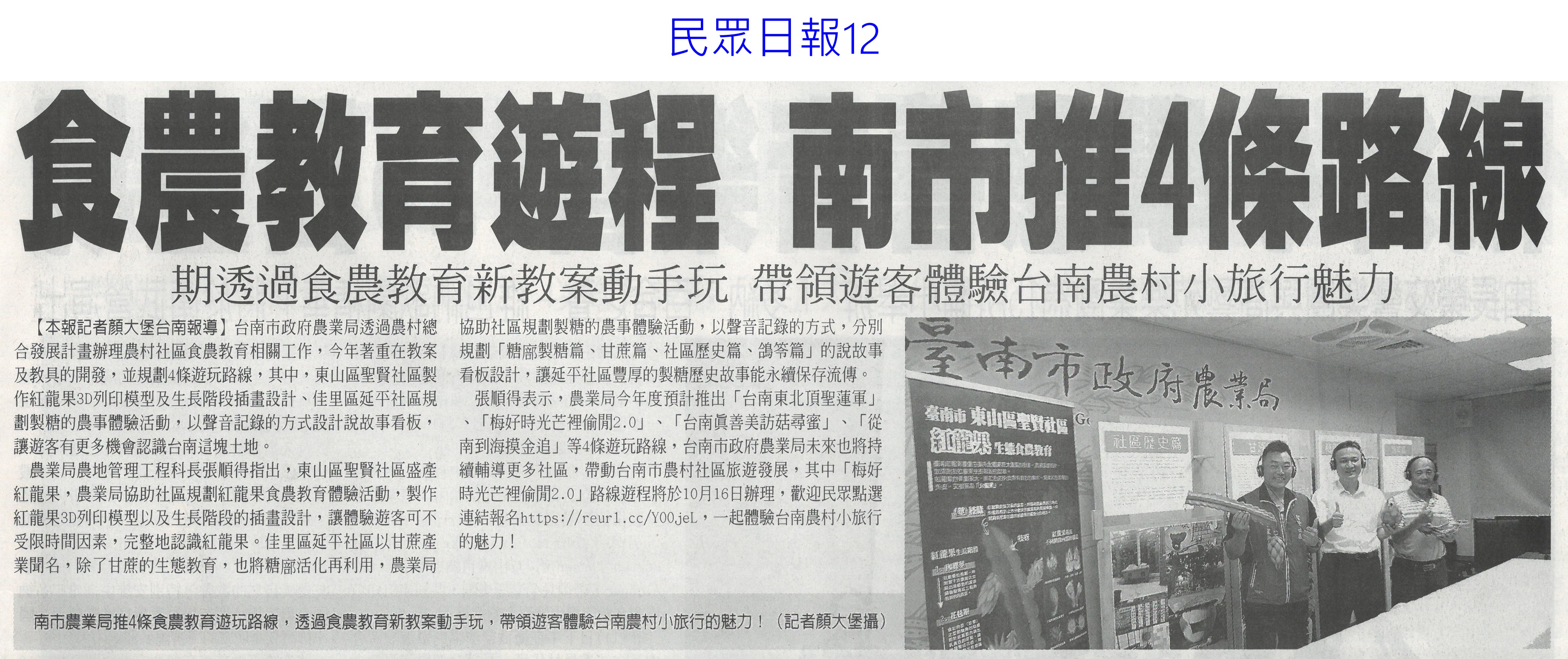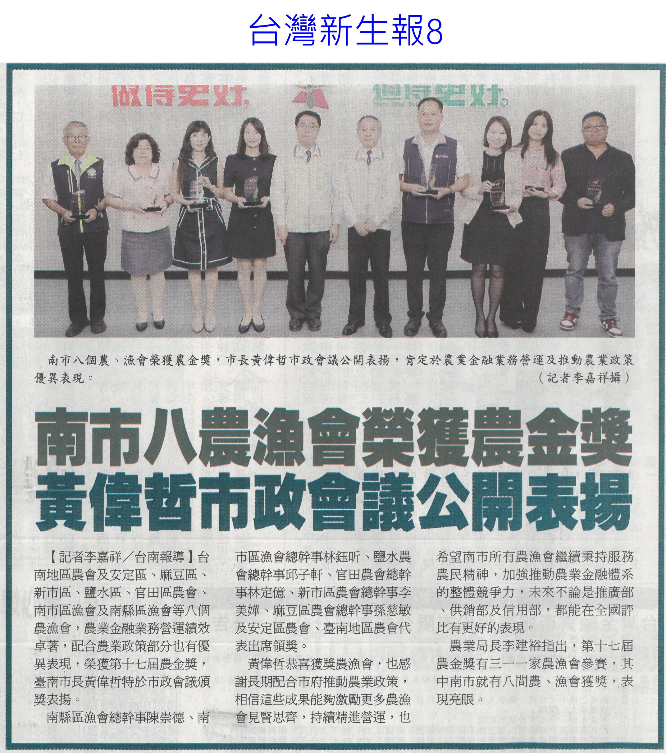 首頁萵苣觀新聞 萵苣觀新聞 排序 發布日期 更新日期 序號 發布日期 標題 1001. 112/10/24 雲林良品專區 擴大行銷優質農產(中國時報A9) 1002. 112/10/24 南高屏山珍海味全體驗 1003. 112/10/23 台灣國際農機資材展 開幕(台灣新生報7) 1004. 112/10/23 嘉縣國際農機展 判商機突破6億(中國時報A9) 1005. 112/10/23 南市八農漁會榮獲農金獎(台灣新生報8) 1006. 112/10/23 112年度產銷履歷達人 頒獎(民眾日報4) 1007. 112/10/20 小犬颱風吹毀溫網室 雲七鄉鎮列現金救助(中華日報B6) 1008. 112/10/20 農業補助 議員認應有未來性(中華日報B2) 1009. 112/10/20 嘉縣廢農膜回收 再造新價值(中國時報A9) 1010. 112/10/19 明年春耕 供灌無虞(自由時報A13) 1011. 112/10/19 水情樂觀 明年梅雨季前用水無虞(中華日報B8) 1012. 112/10/19 雲林十大菁英農民評選出爐(中華日報B6) 1013. 112/10/19 蔬菜批發價每公斤55.4元 逼近史上最高(中華日報A4) 1014. 112/10/19 水庫喝飽 秋冬及明春灌溉沒問題(自由時報A13) 1015. 112/10/16 嘉有好市集復辦(自由時報A12) 1016. 112/10/16 蔬菜批發價距最高點僅差3元(中華日報A4) 1017. 112/10/13 國際農機展20日 嘉義登場(臺灣時報18) 1018. 112/10/13 熱風侵襲雲林農損慘重 農業部同意補助(民眾日報12) 1019. 112/10/12 技術交流 市農會與石日川農業締約(自由時報A13) 1020. 112/10/12 食農教育遊程 南市推4條路線(民眾日報12) 第 51/142 頁,共 2828 筆上一頁到第123456789101112131415161718192021222324252627282930313233343536373839404142434445464748495051525354555657585960616263646566676869707172737475767778798081828384858687888990919293949596979899100101102103104105106107108109110111112113114115116117118119120121122123124125126127128129130131132133134135136137138139140141142頁下一頁每頁103070筆資料
