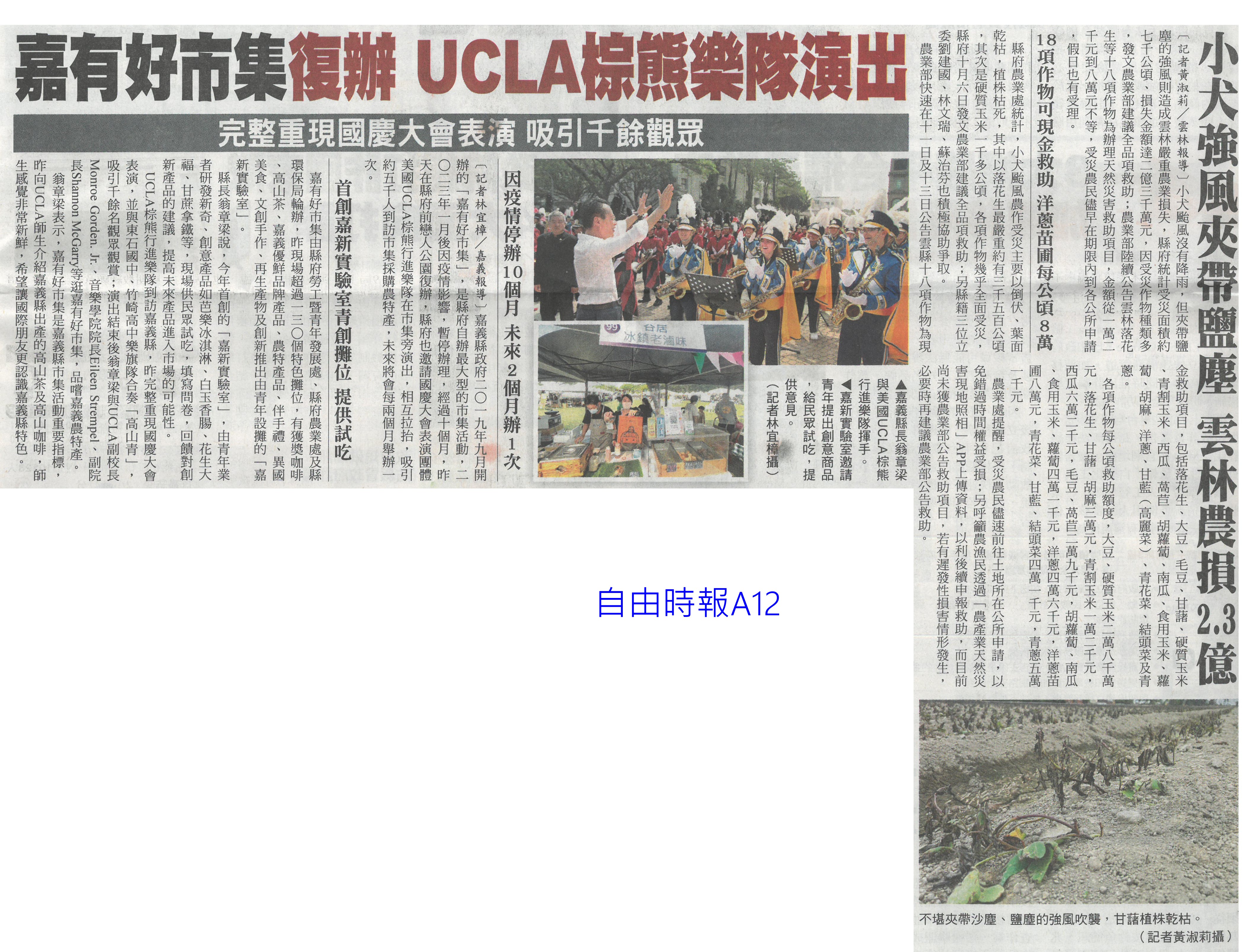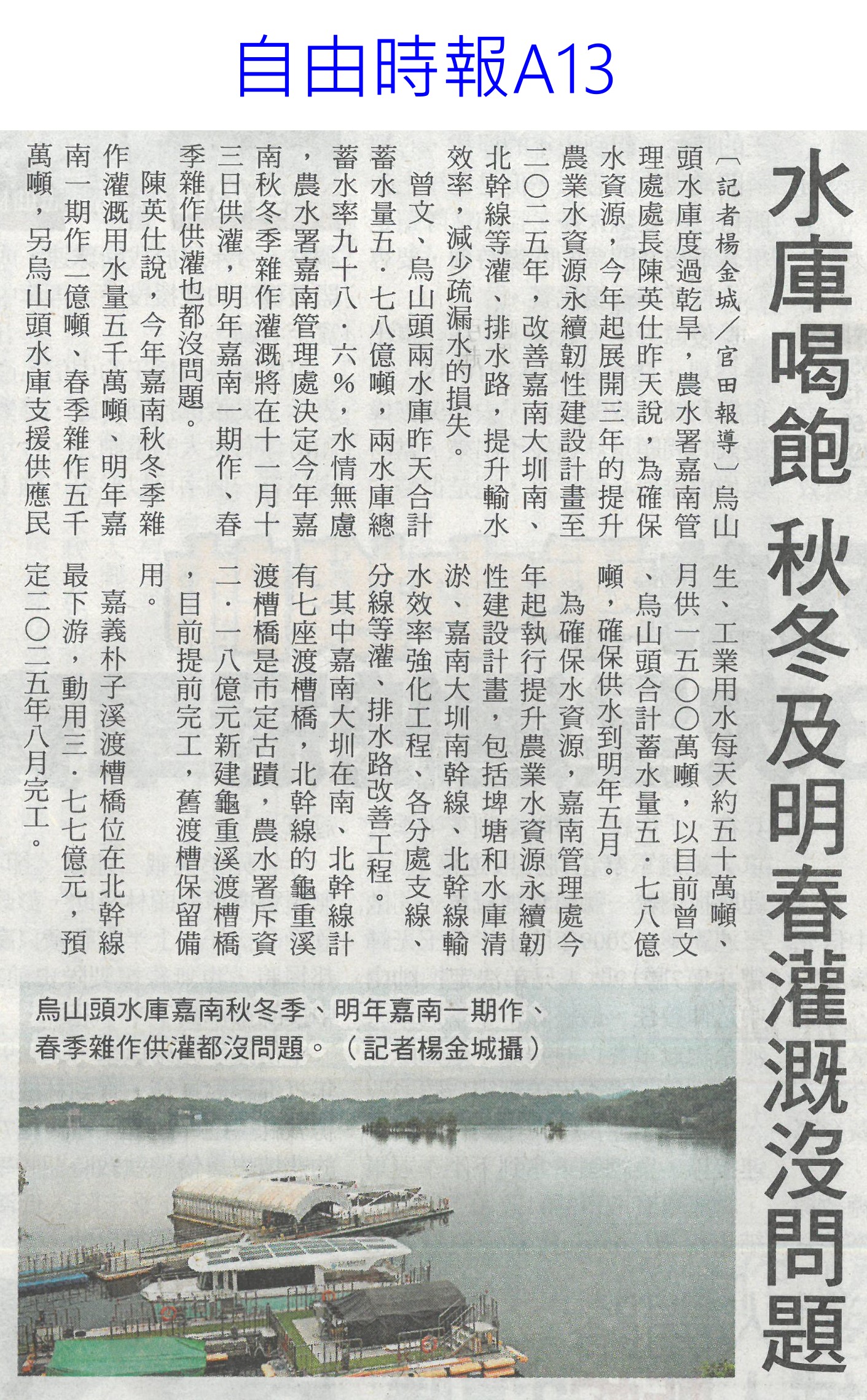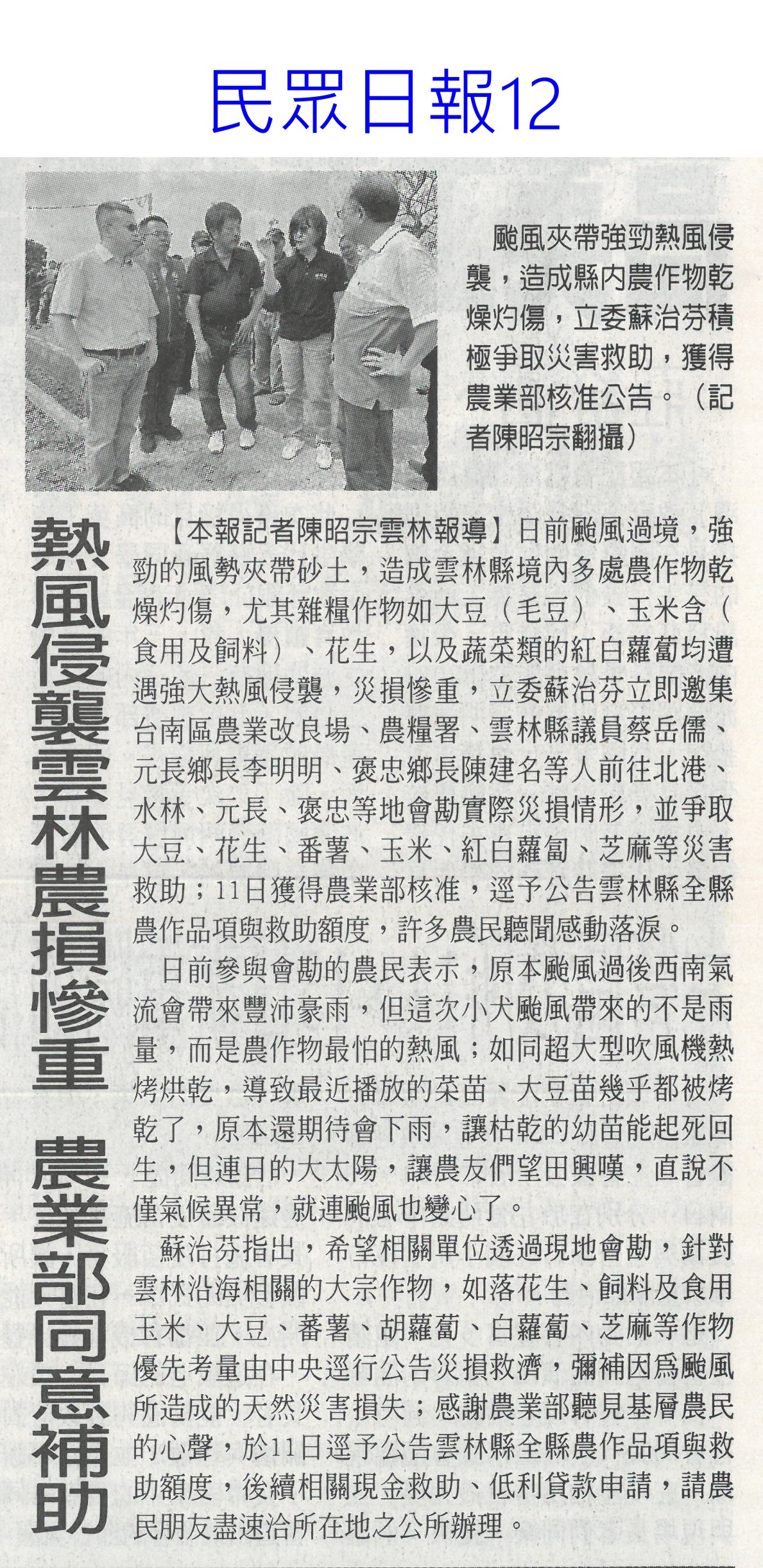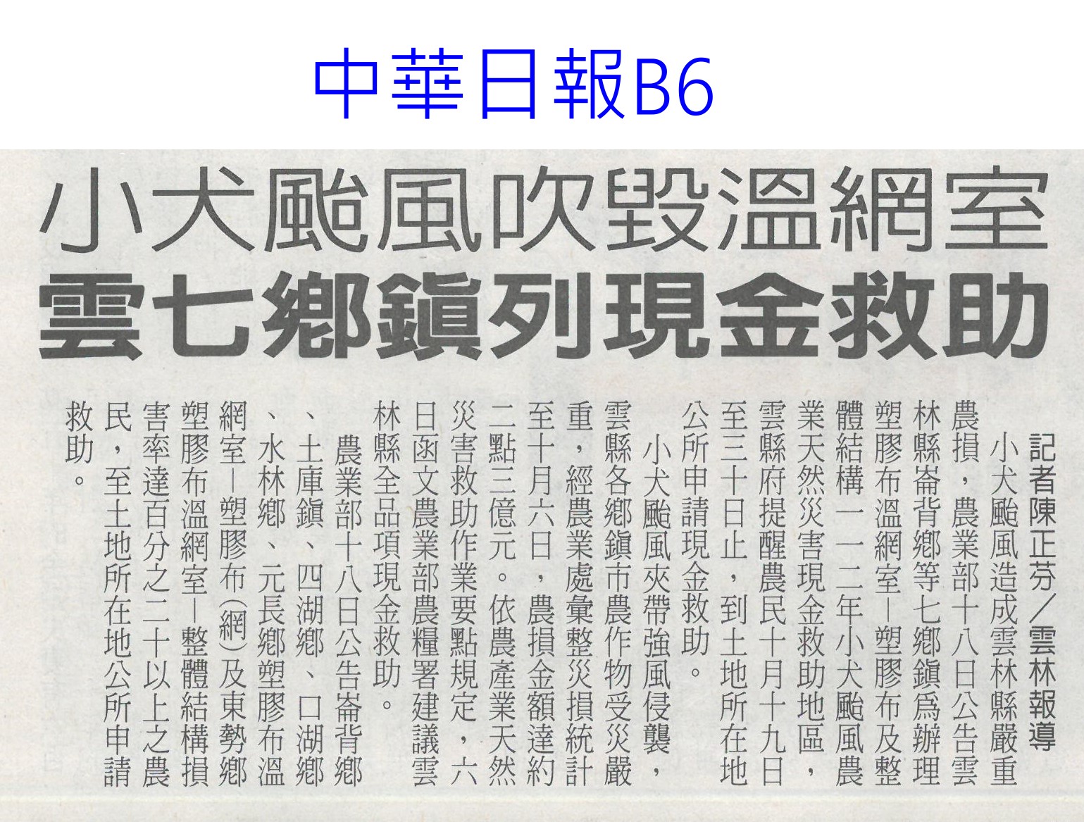 首頁萵苣觀新聞 萵苣觀新聞 排序 發布日期 更新日期 序號 發布日期 標題 1001. 112/10/24 雲林良品專區 擴大行銷優質農產(中國時報A9) 1002. 112/10/24 南高屏山珍海味全體驗 1003. 112/10/23 台灣國際農機資材展 開幕(台灣新生報7) 1004. 112/10/23 嘉縣國際農機展 判商機突破6億(中國時報A9) 1005. 112/10/23 南市八農漁會榮獲農金獎(台灣新生報8) 1006. 112/10/23 112年度產銷履歷達人 頒獎(民眾日報4) 1007. 112/10/20 小犬颱風吹毀溫網室 雲七鄉鎮列現金救助(中華日報B6) 1008. 112/10/20 農業補助 議員認應有未來性(中華日報B2) 1009. 112/10/20 嘉縣廢農膜回收 再造新價值(中國時報A9) 1010. 112/10/19 明年春耕 供灌無虞(自由時報A13) 1011. 112/10/19 水情樂觀 明年梅雨季前用水無虞(中華日報B8) 1012. 112/10/19 雲林十大菁英農民評選出爐(中華日報B6) 1013. 112/10/19 蔬菜批發價每公斤55.4元 逼近史上最高(中華日報A4) 1014. 112/10/19 水庫喝飽 秋冬及明春灌溉沒問題(自由時報A13) 1015. 112/10/16 嘉有好市集復辦(自由時報A12) 1016. 112/10/16 蔬菜批發價距最高點僅差3元(中華日報A4) 1017. 112/10/13 國際農機展20日 嘉義登場(臺灣時報18) 1018. 112/10/13 熱風侵襲雲林農損慘重 農業部同意補助(民眾日報12) 1019. 112/10/12 技術交流 市農會與石日川農業締約(自由時報A13) 1020. 112/10/12 食農教育遊程 南市推4條路線(民眾日報12) 第 51/142 頁,共 2828 筆上一頁到第123456789101112131415161718192021222324252627282930313233343536373839404142434445464748495051525354555657585960616263646566676869707172737475767778798081828384858687888990919293949596979899100101102103104105106107108109110111112113114115116117118119120121122123124125126127128129130131132133134135136137138139140141142頁下一頁每頁103070筆資料